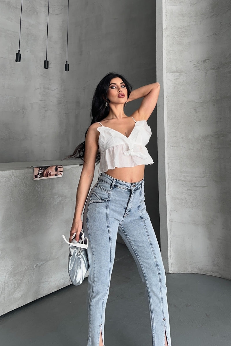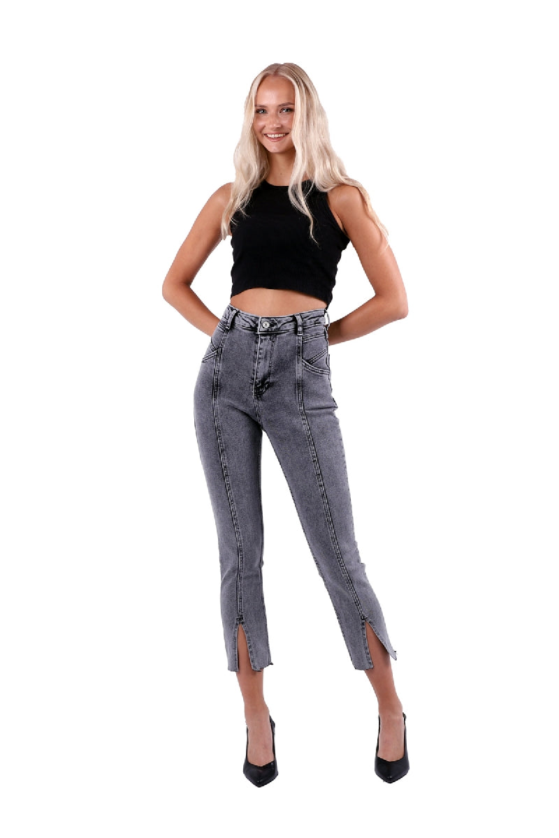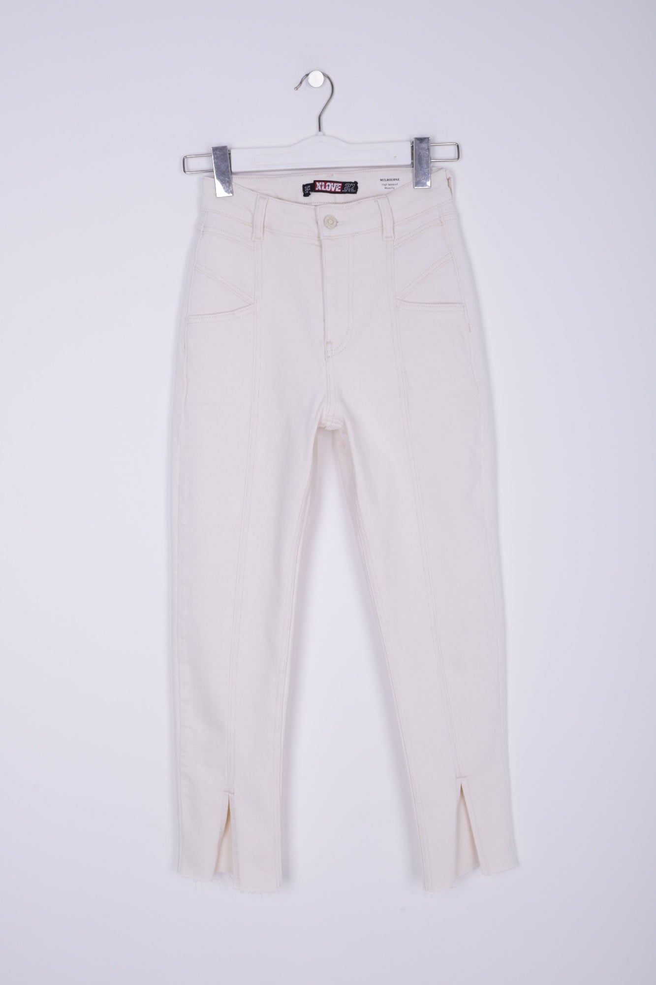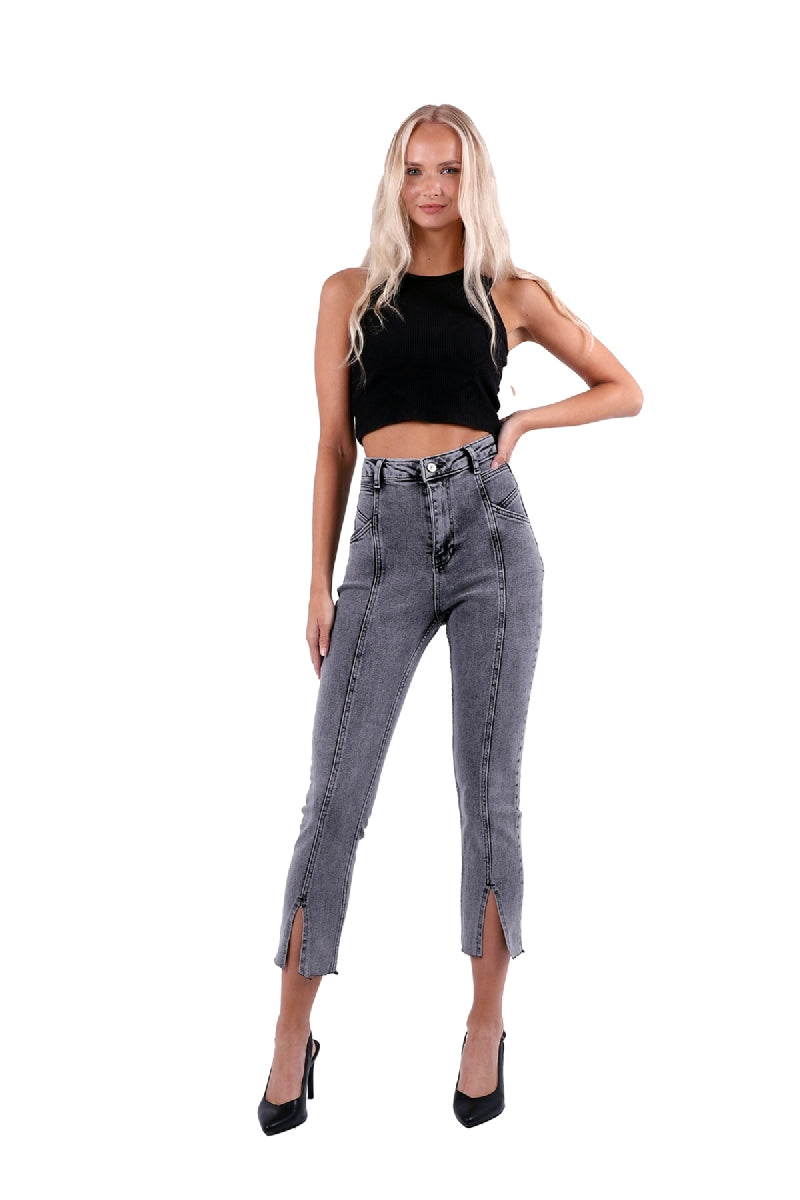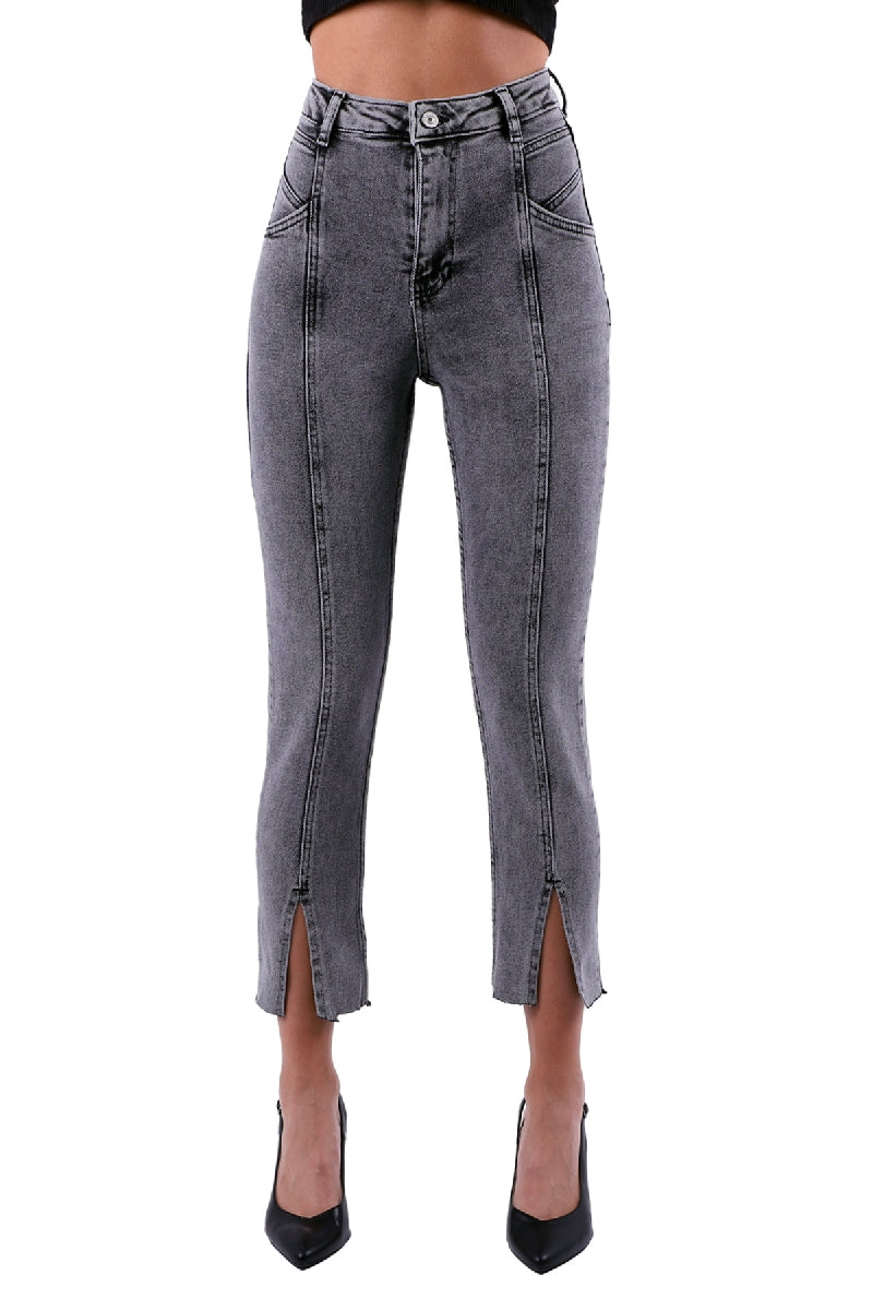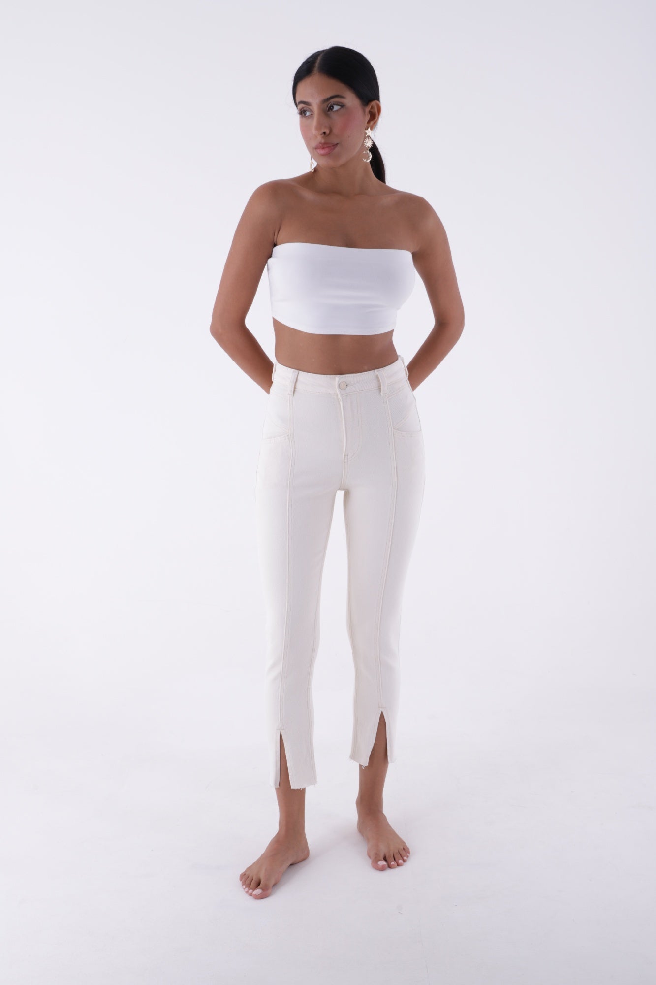 Parçalı Önü Yırtmaçlı Dikişsiz Paça Pantolon