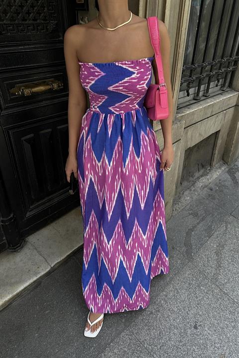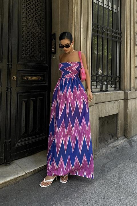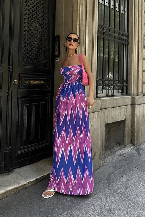 Leomie Straplez Desenli Elbise 2625-08
