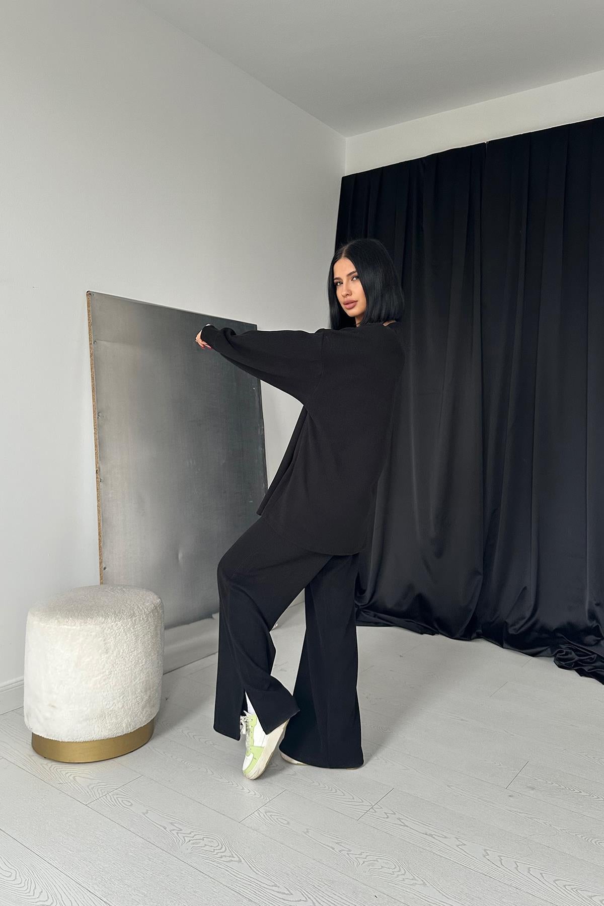 Toptan Siyah Klasik Fitilli Kazak Ve Pantolon Takım