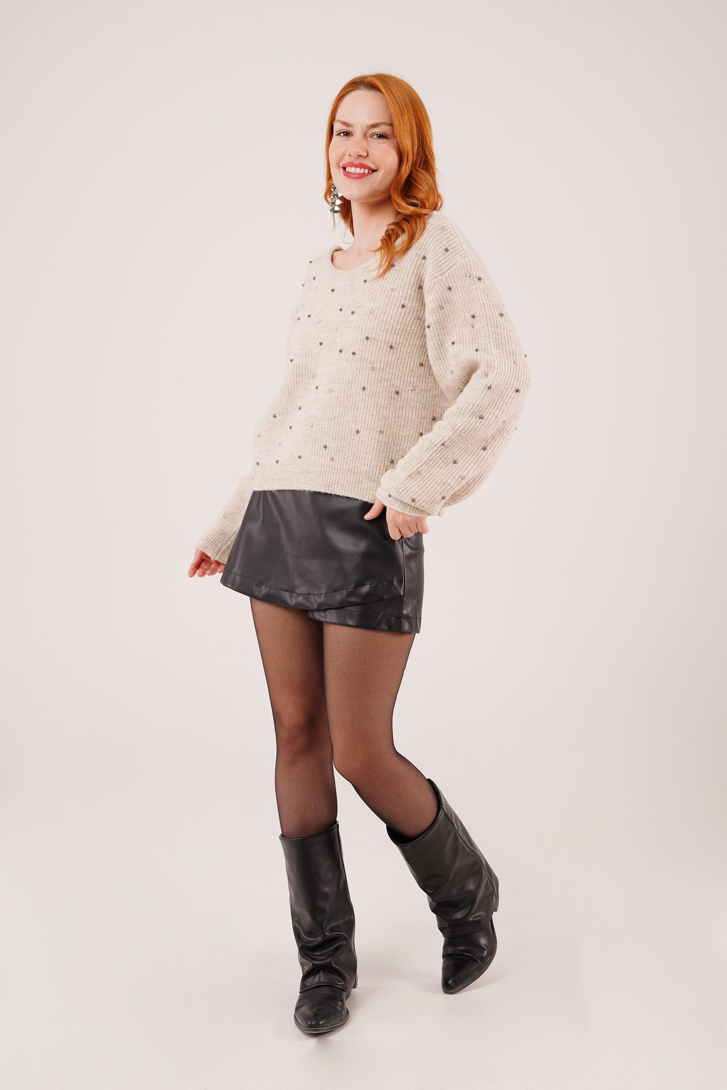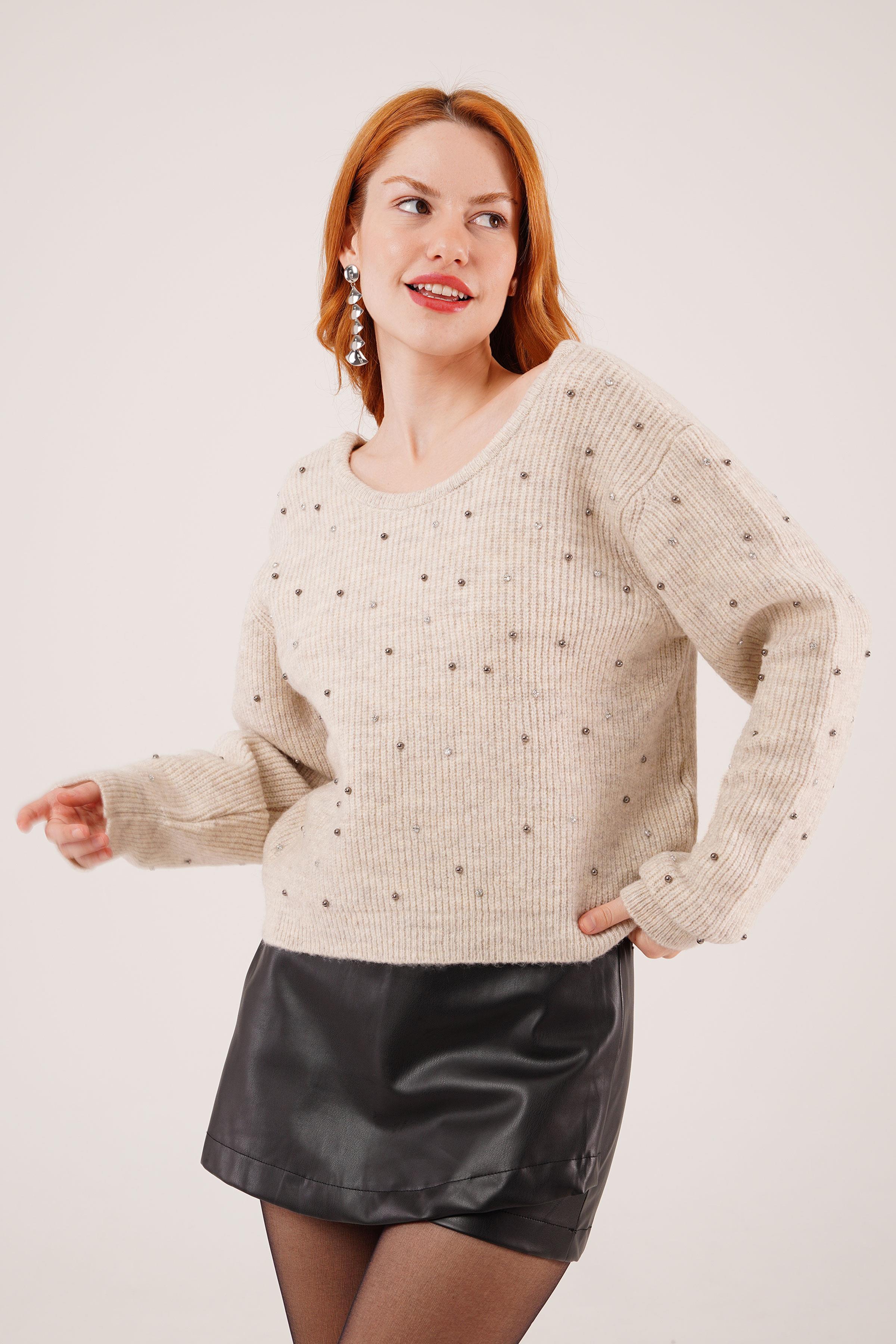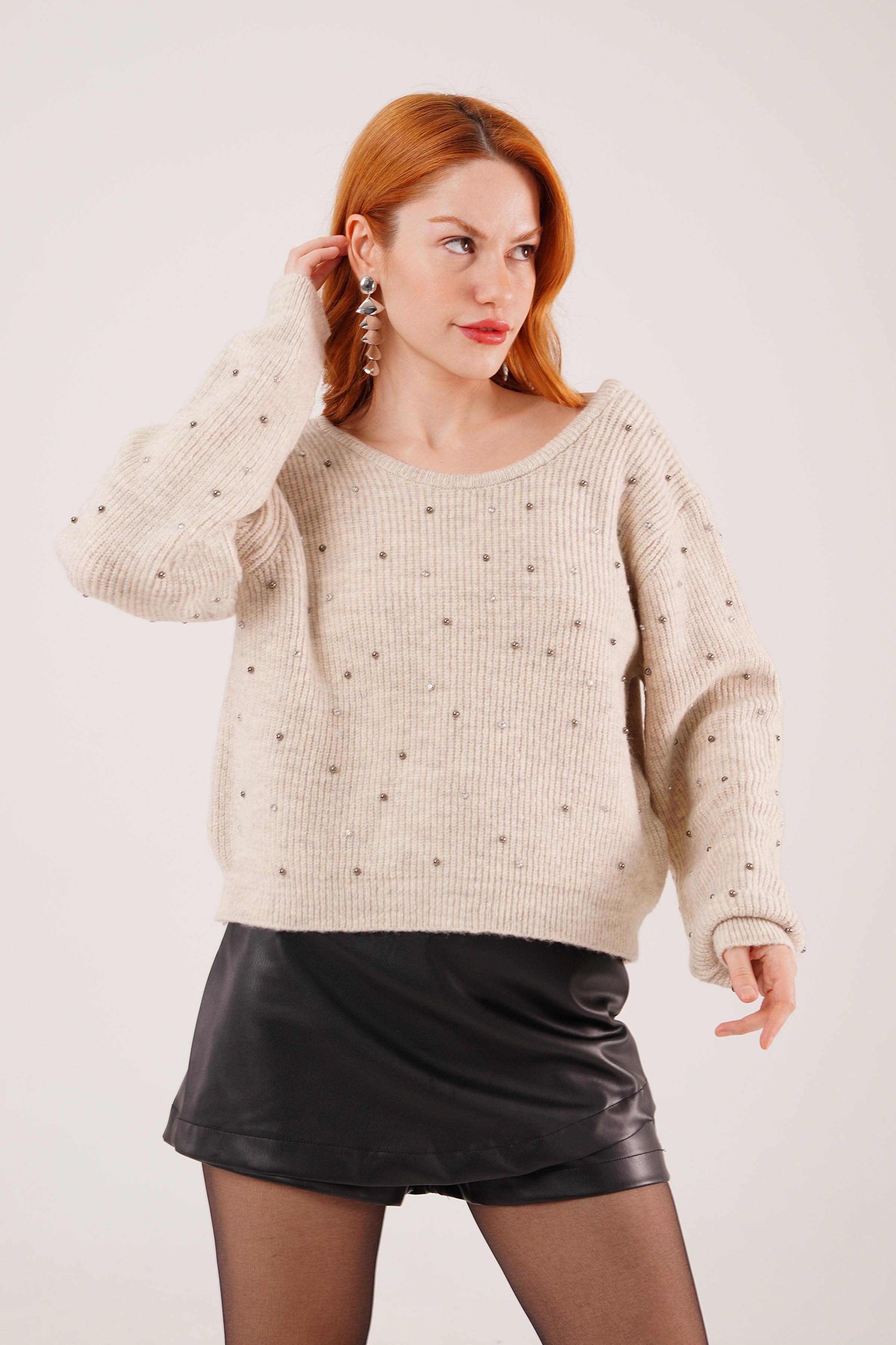 Taşlı Ve Sırt Dekolteli Taş Toptan Kazak