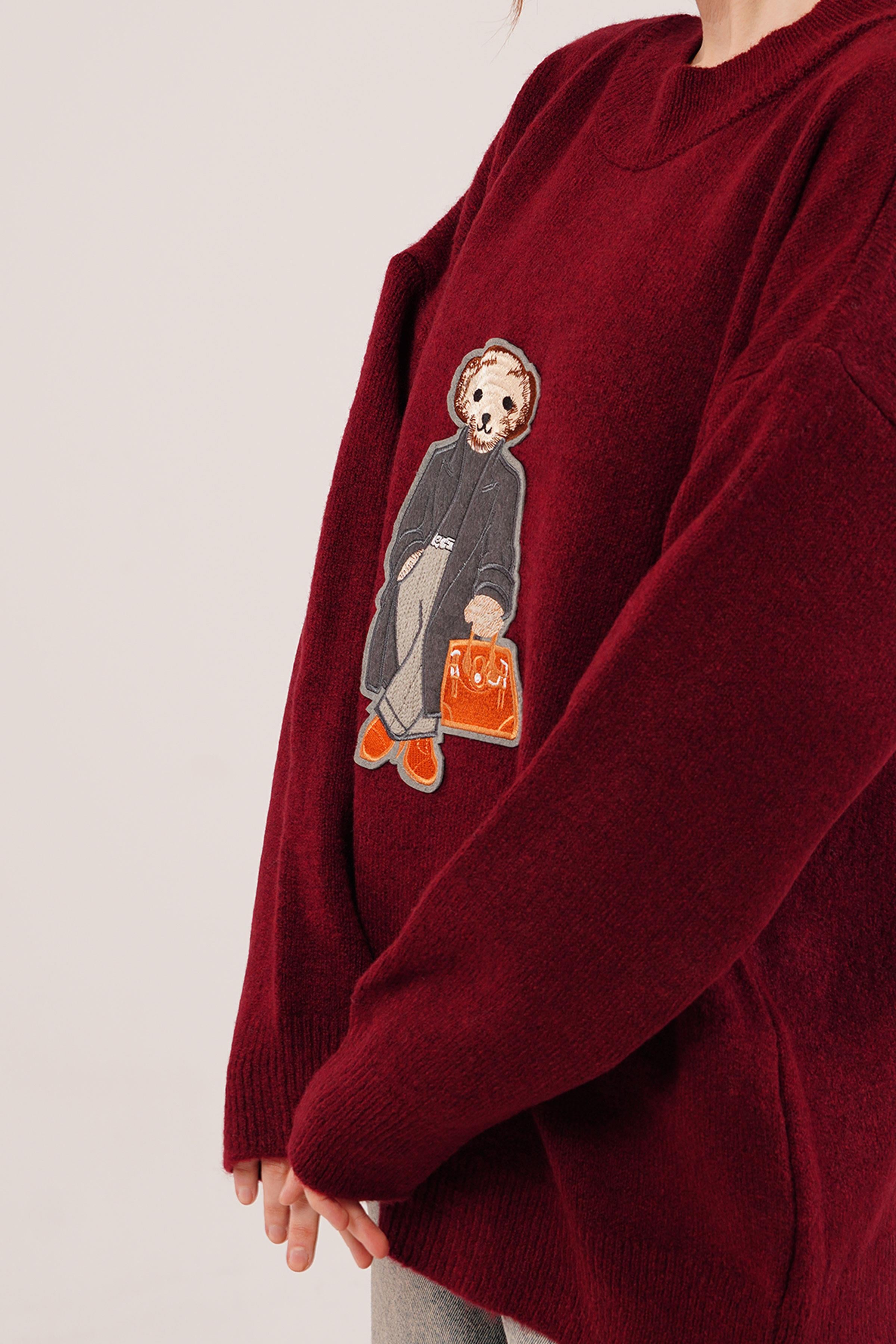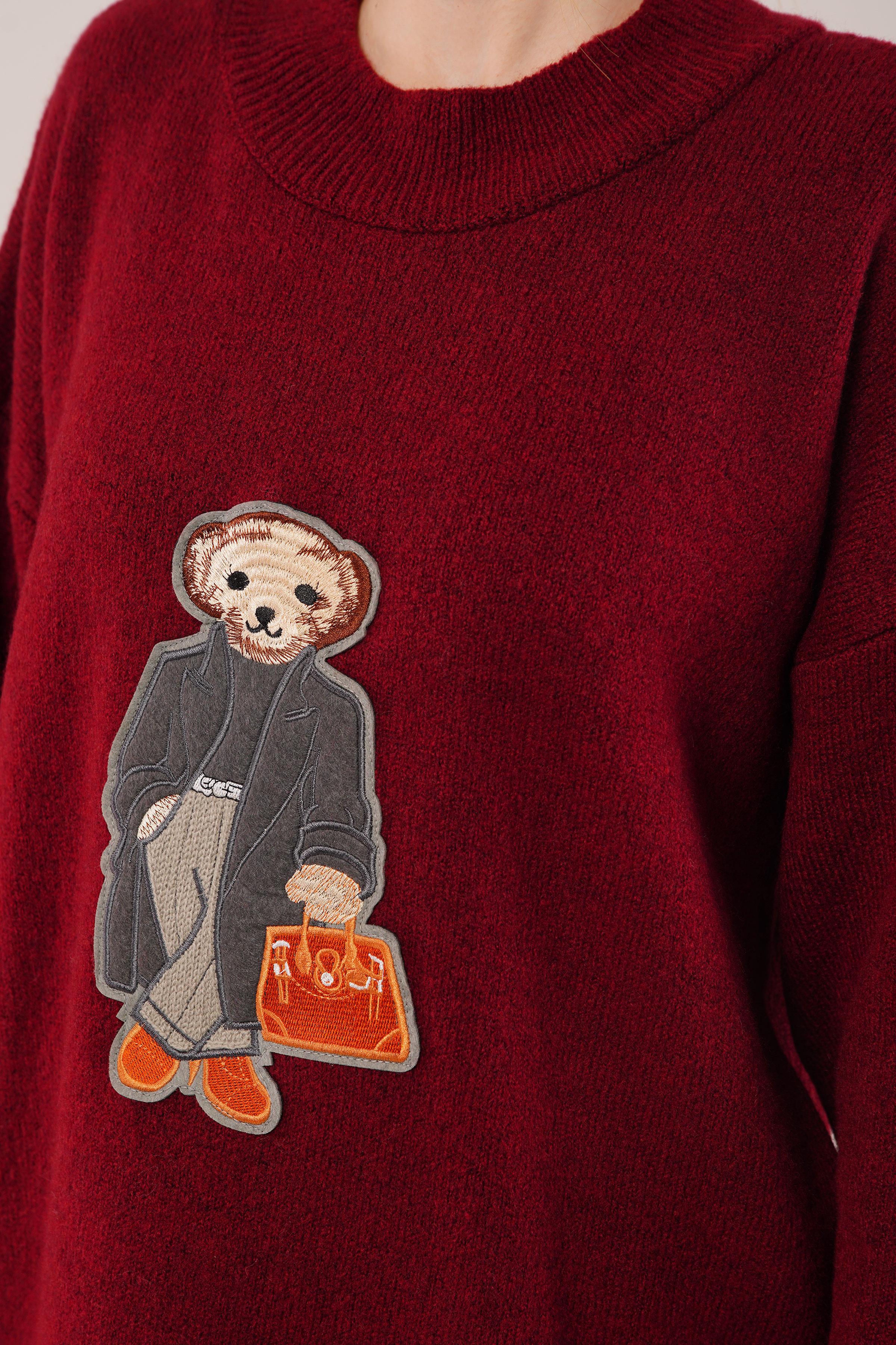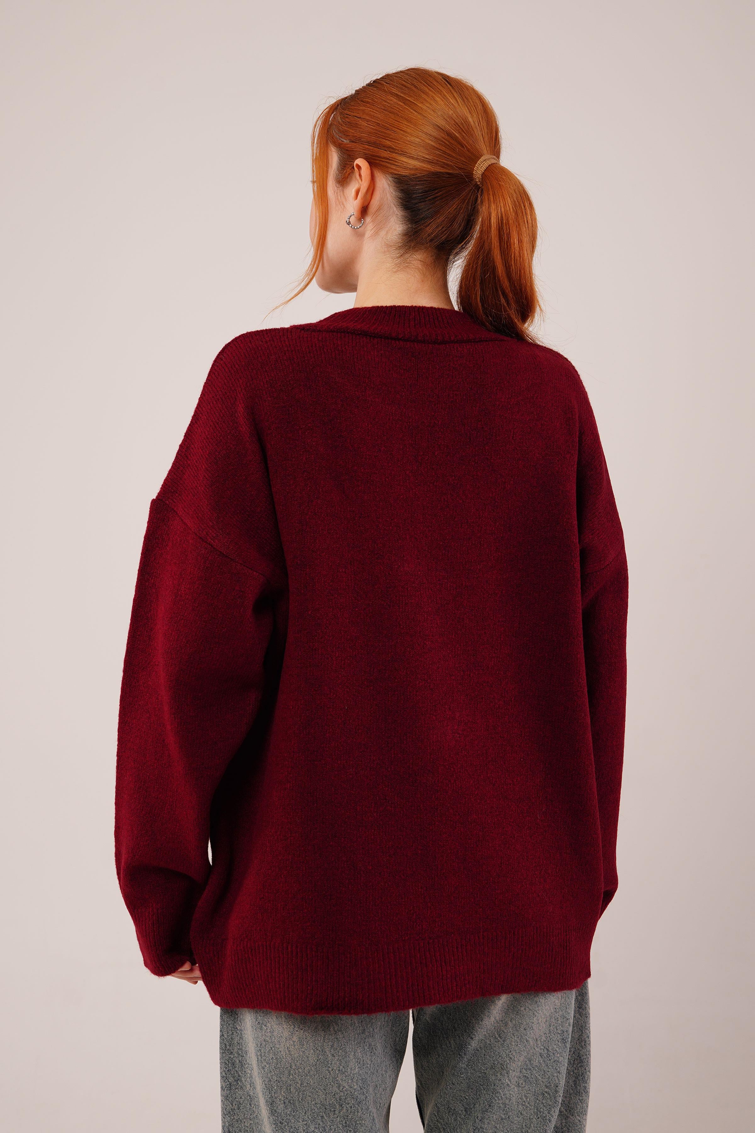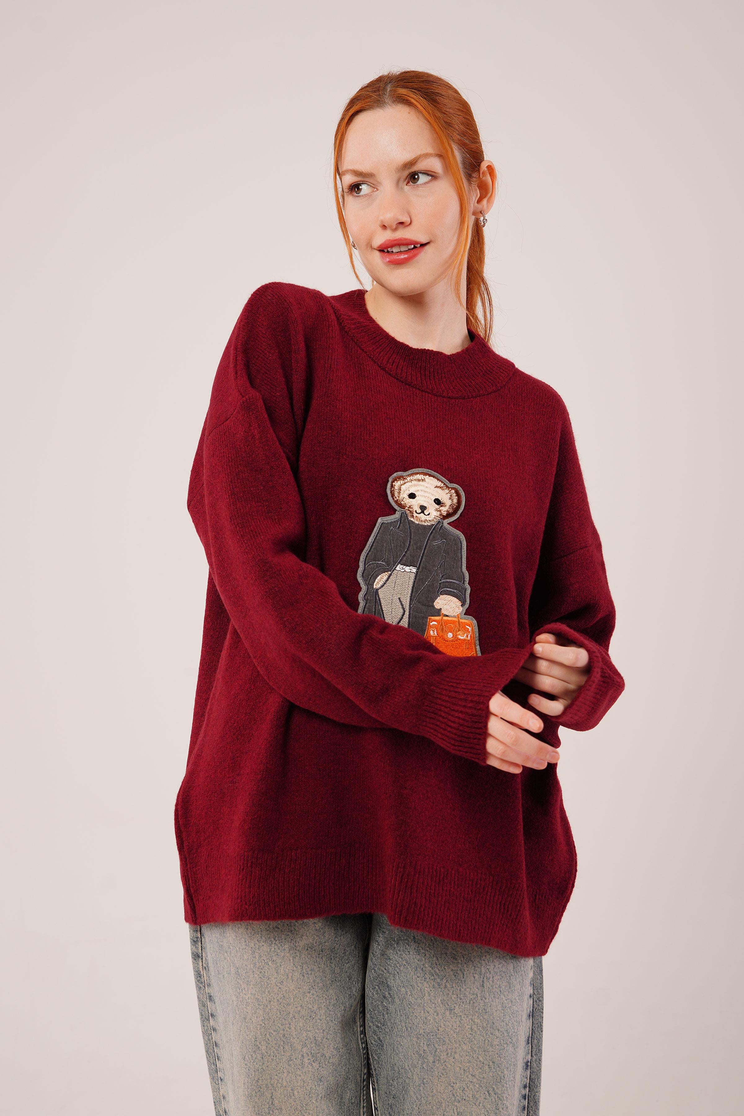 Nakış Detaylı Toptan Bordo Triko Kazak