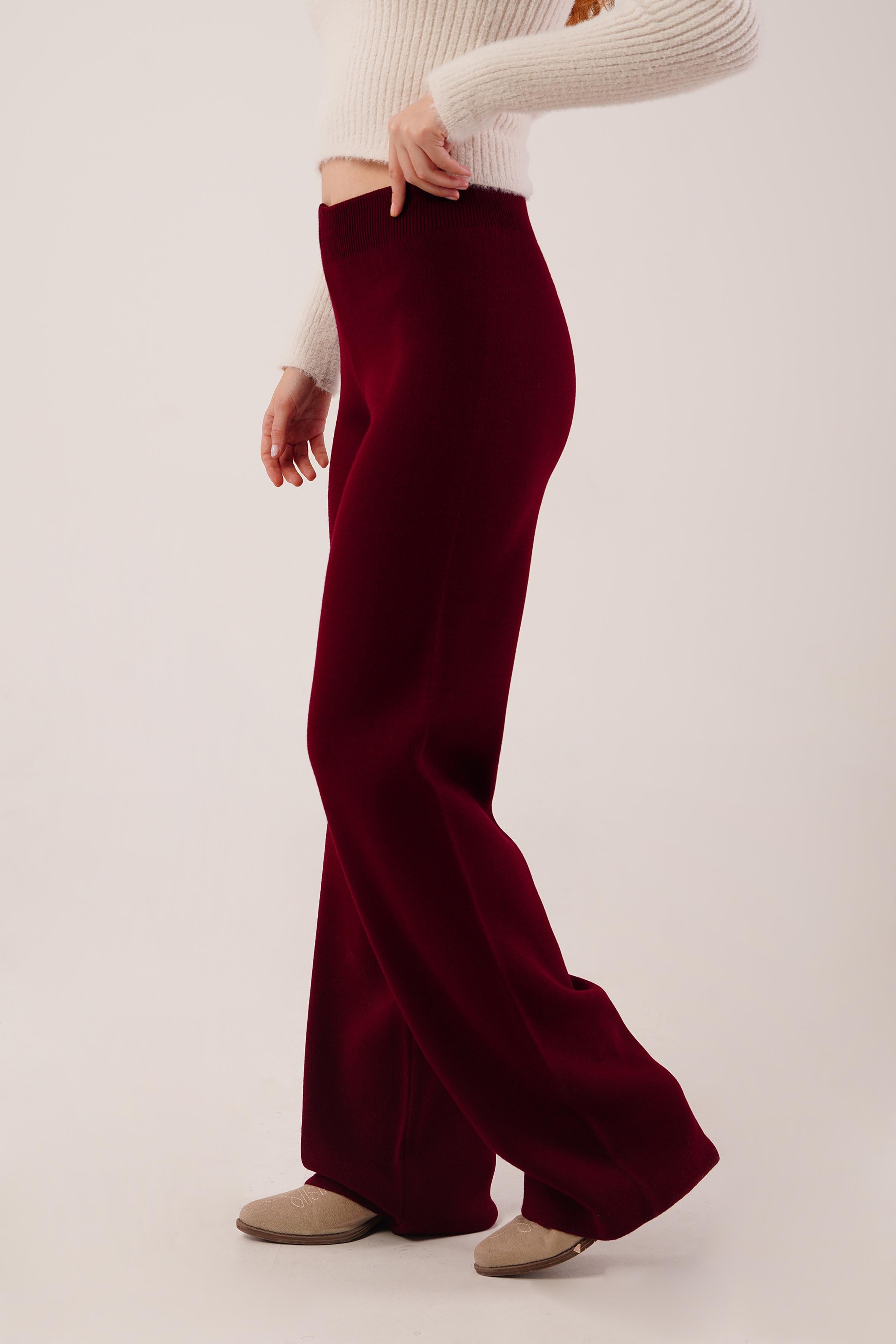 Yüksek Bel Bol Paça Bordo Toptan Triko Pantolon