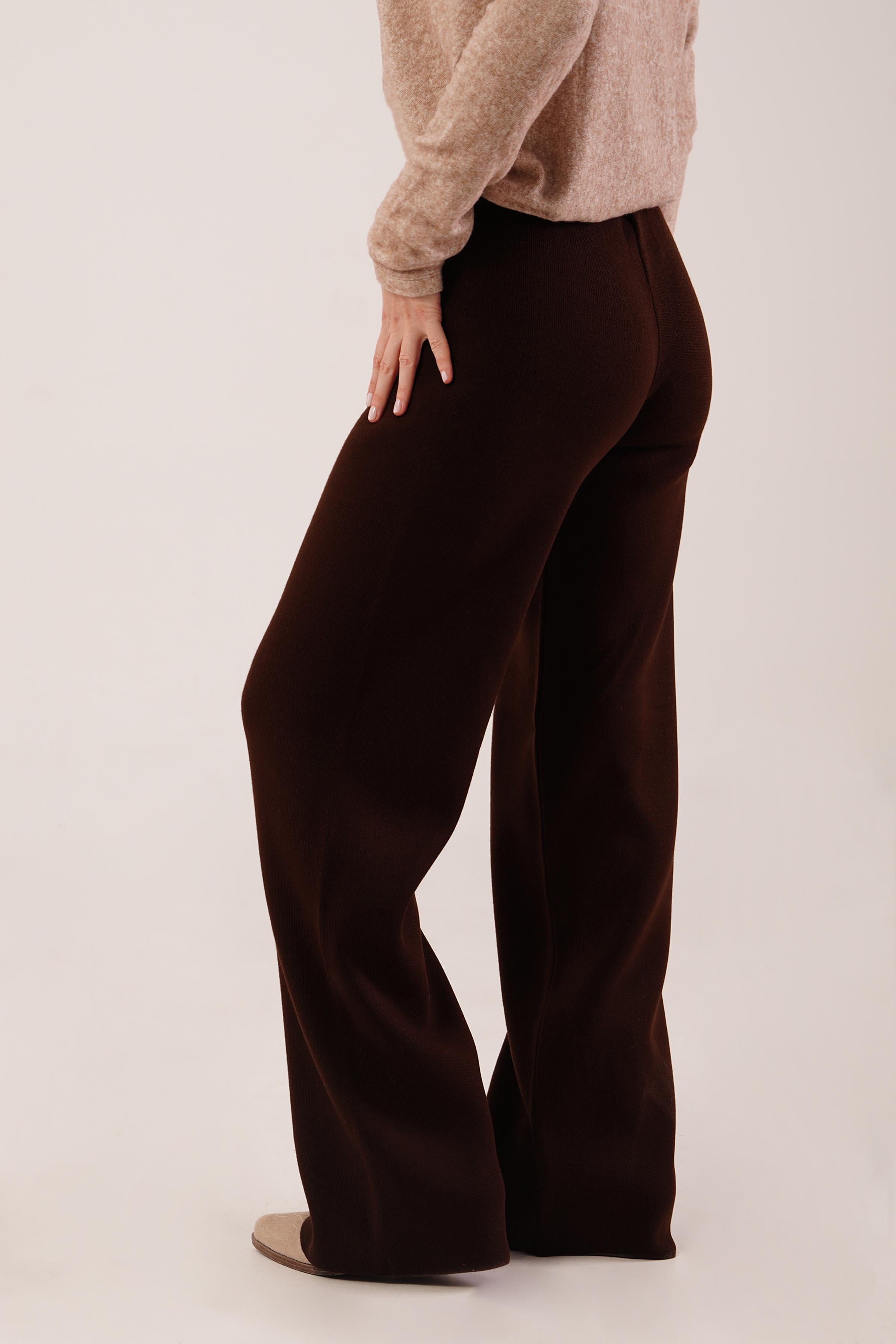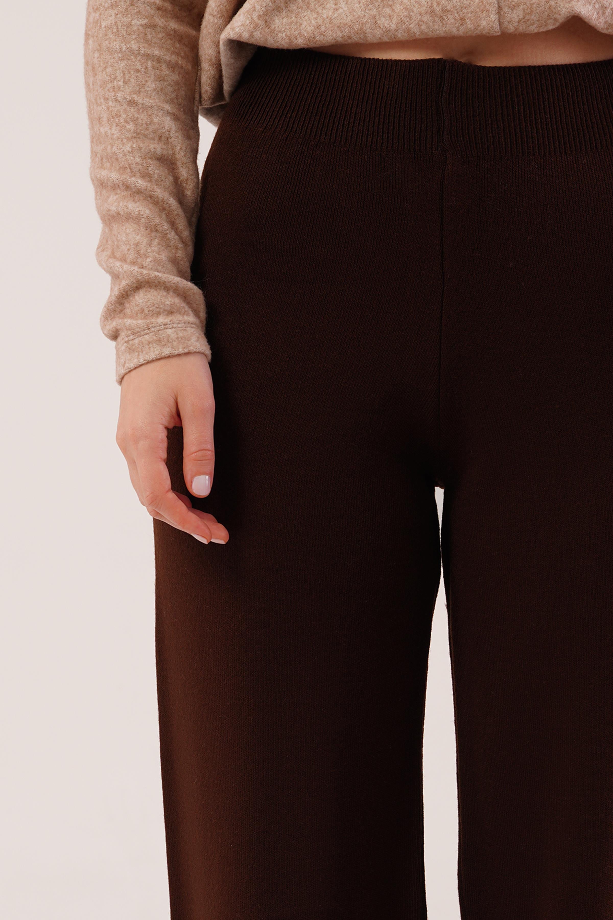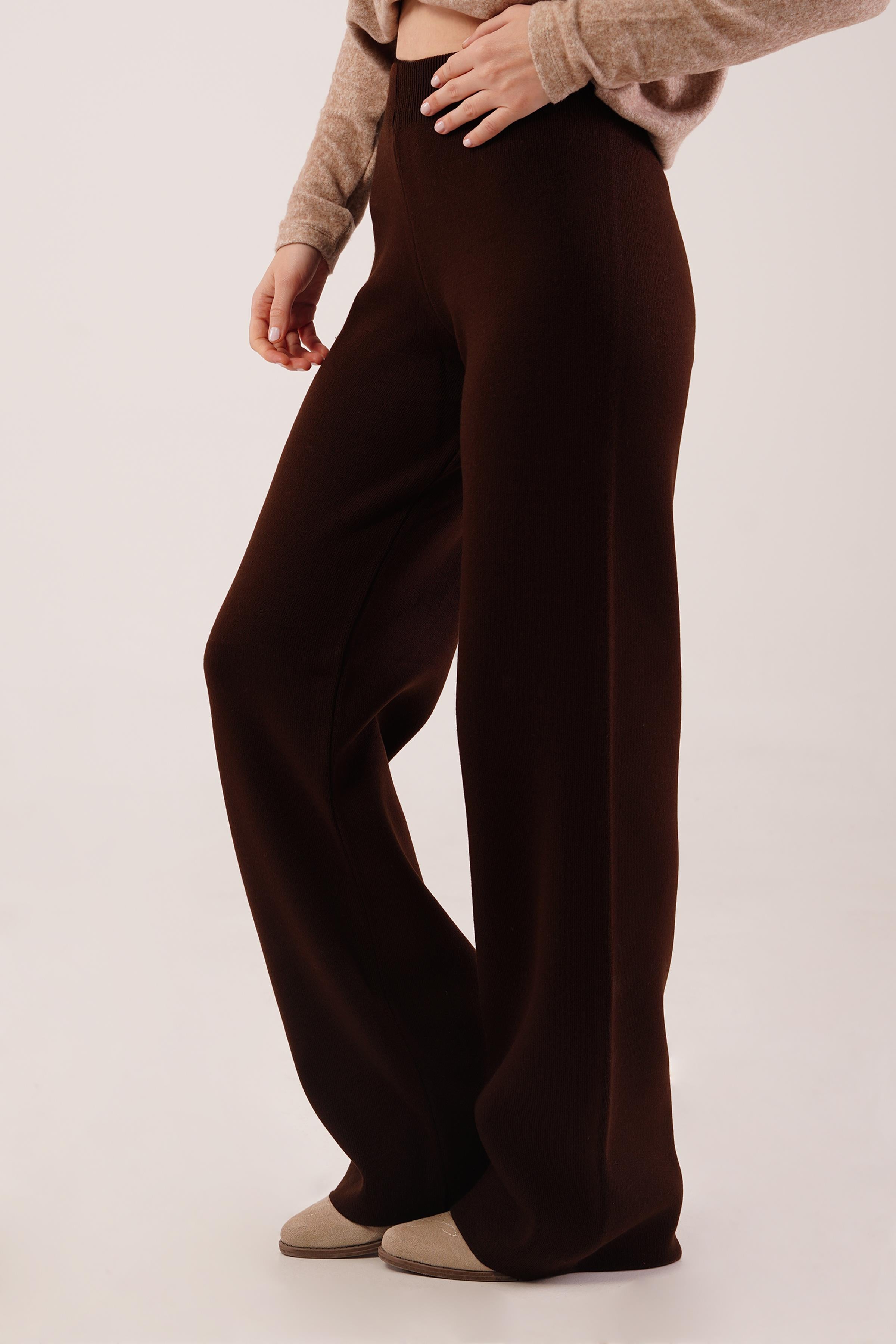 Yüksek Bel Bol Paça Kahverengi Toptan Triko Pantolon