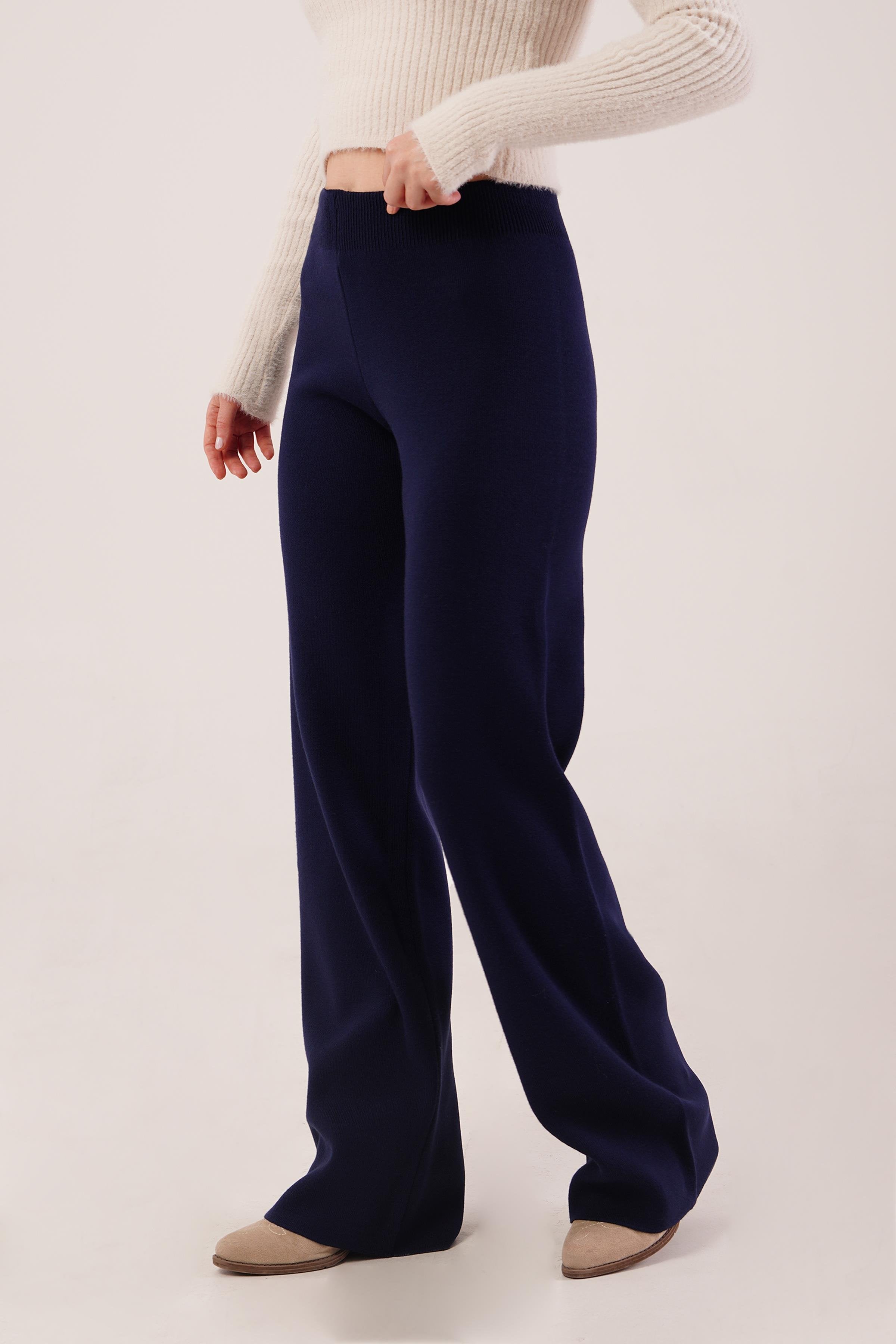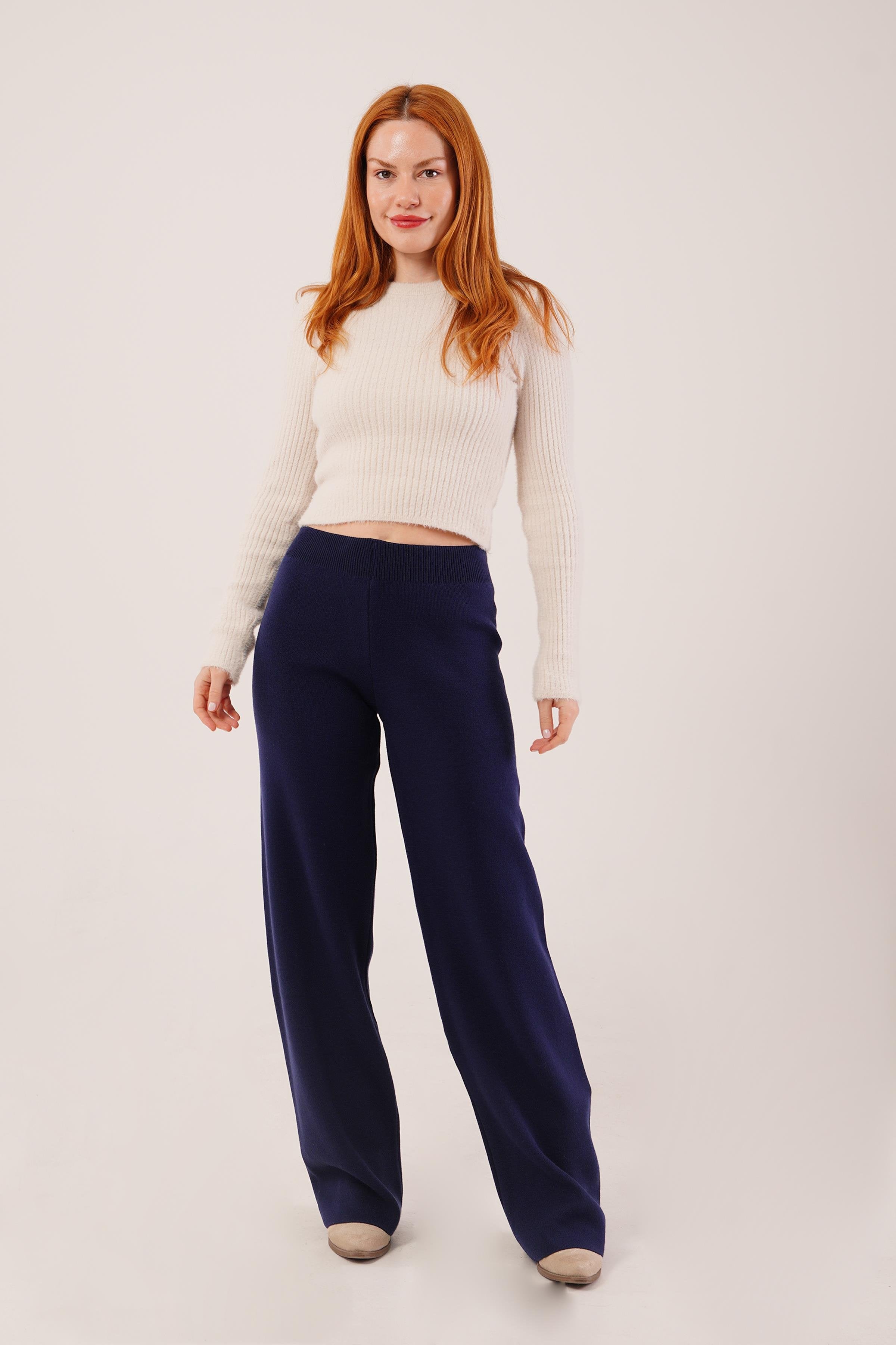 Yüksek Bel Bol Paça Lacivert Toptan Triko Pantolon