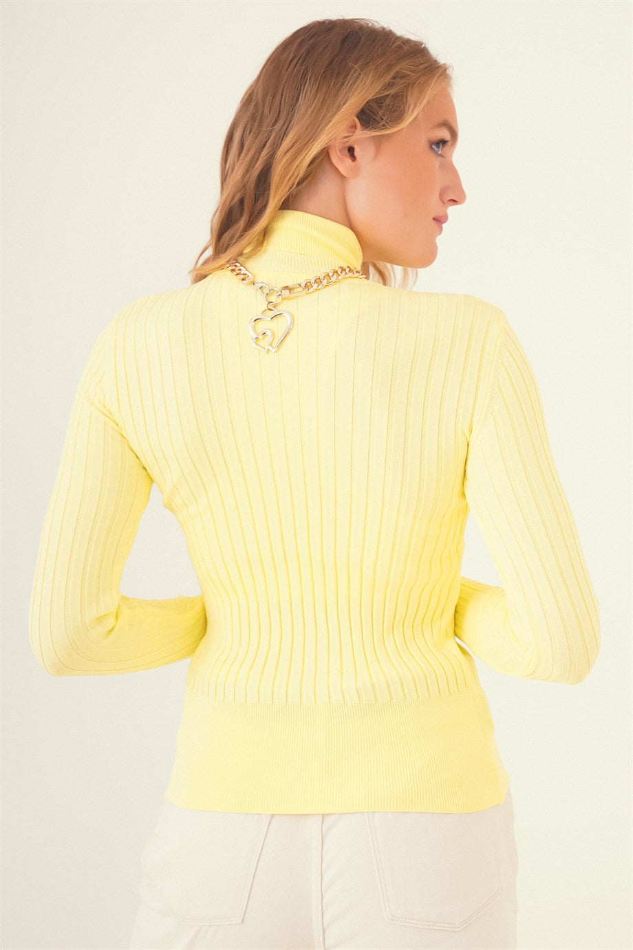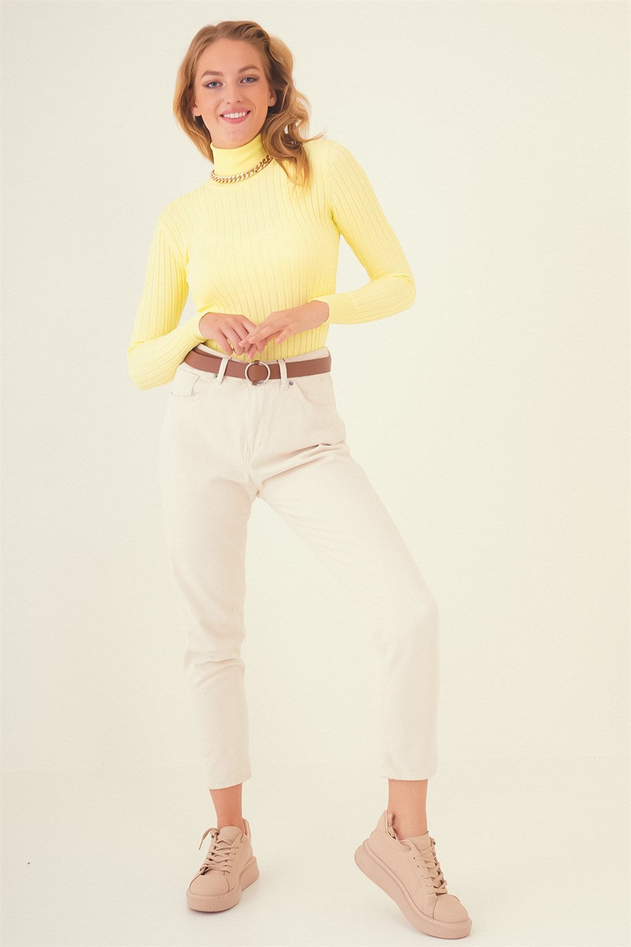 Boğazlı Mega Fitilli Triko Sarı Kazak