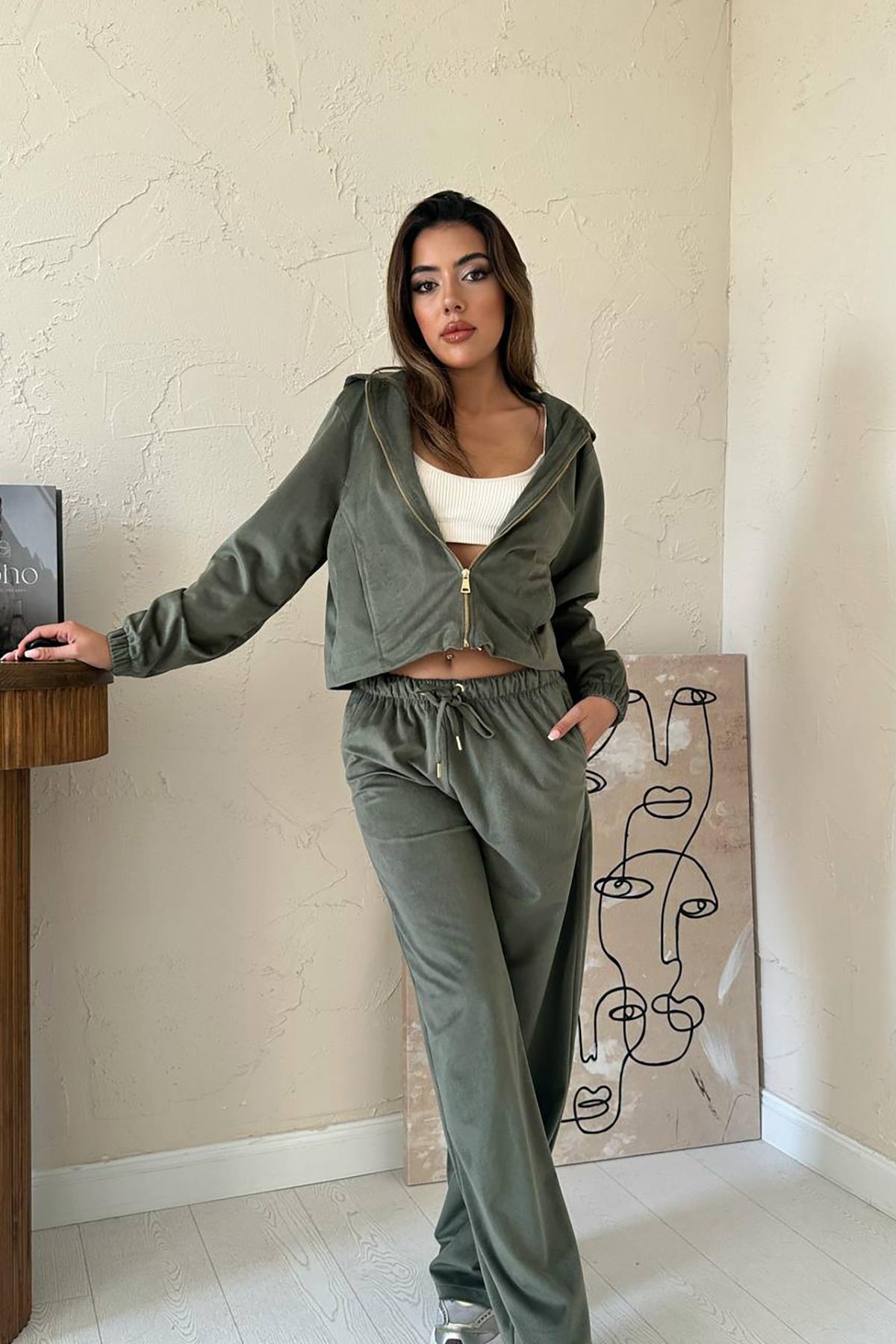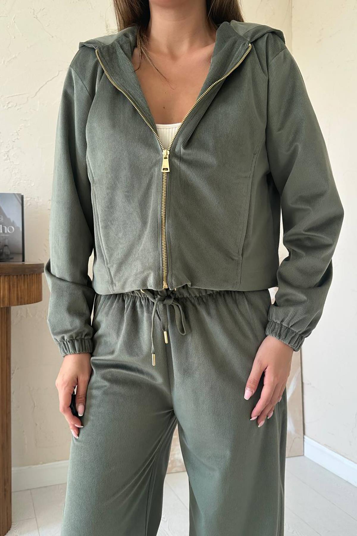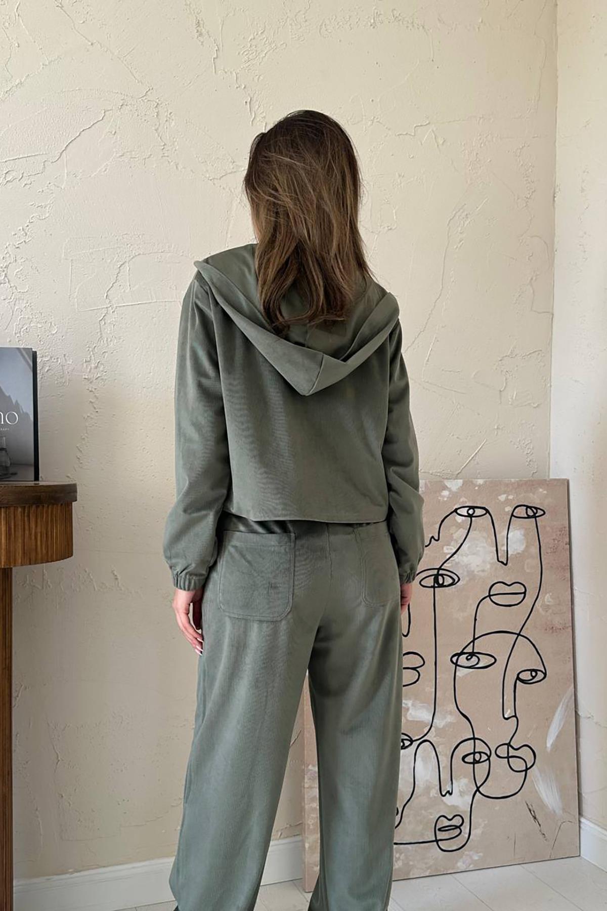 Toptan Haki İnce Kadife Takım