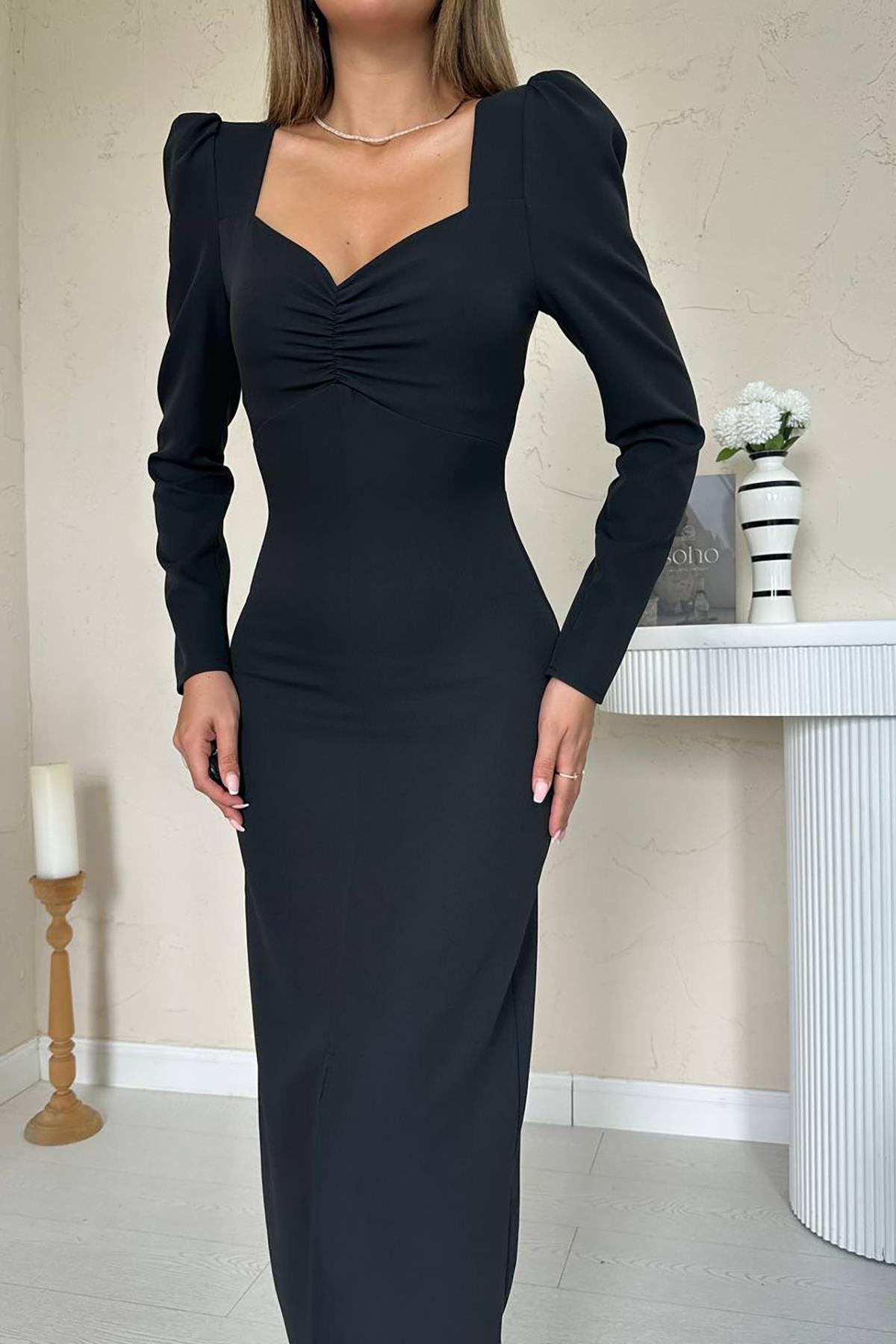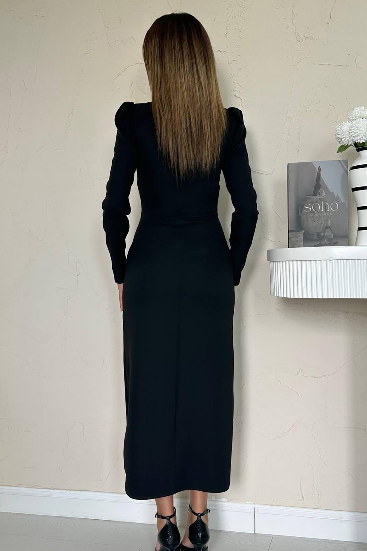 Toptan Siyah Karpuz Kollu Atlas Elbise