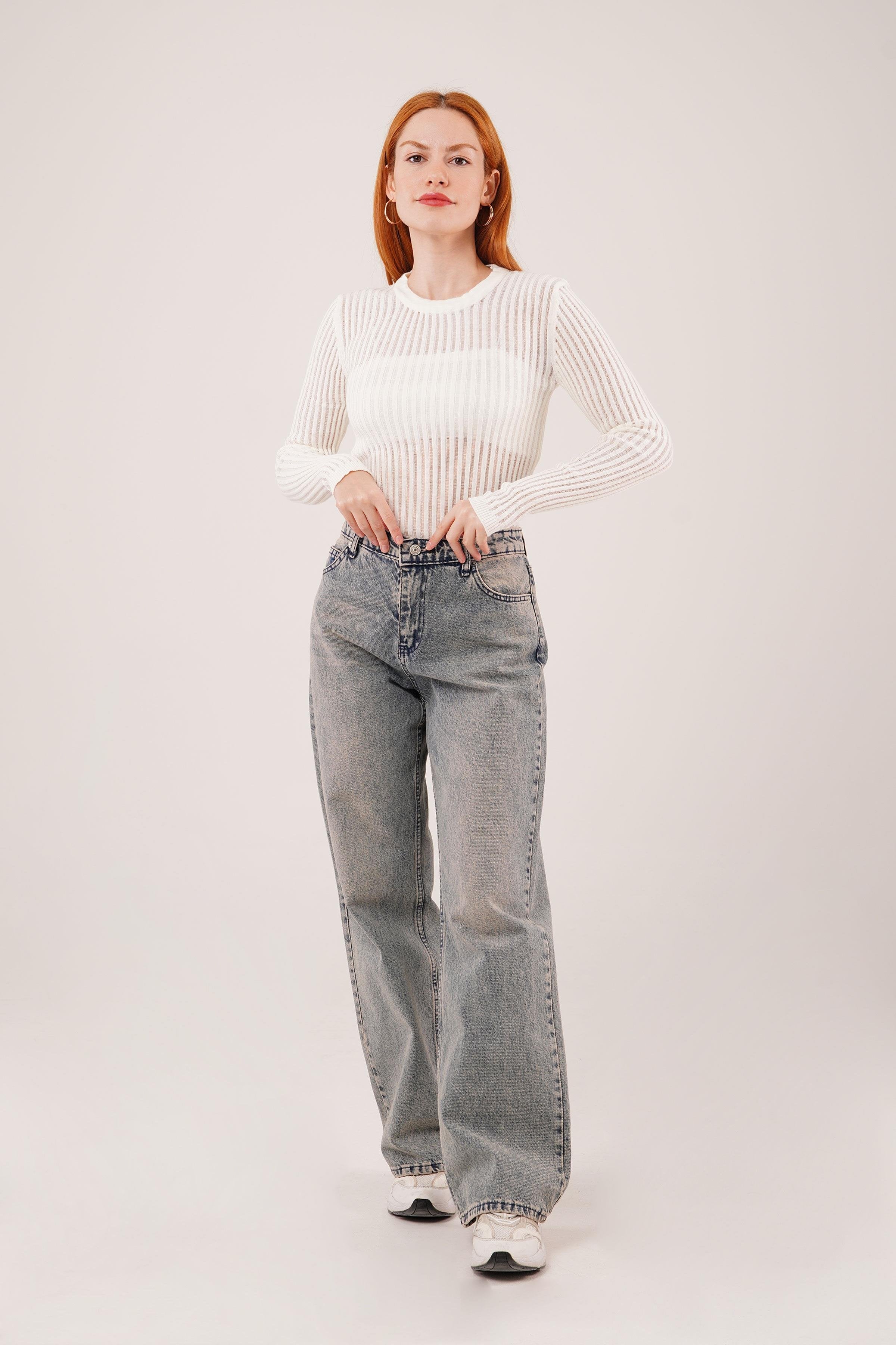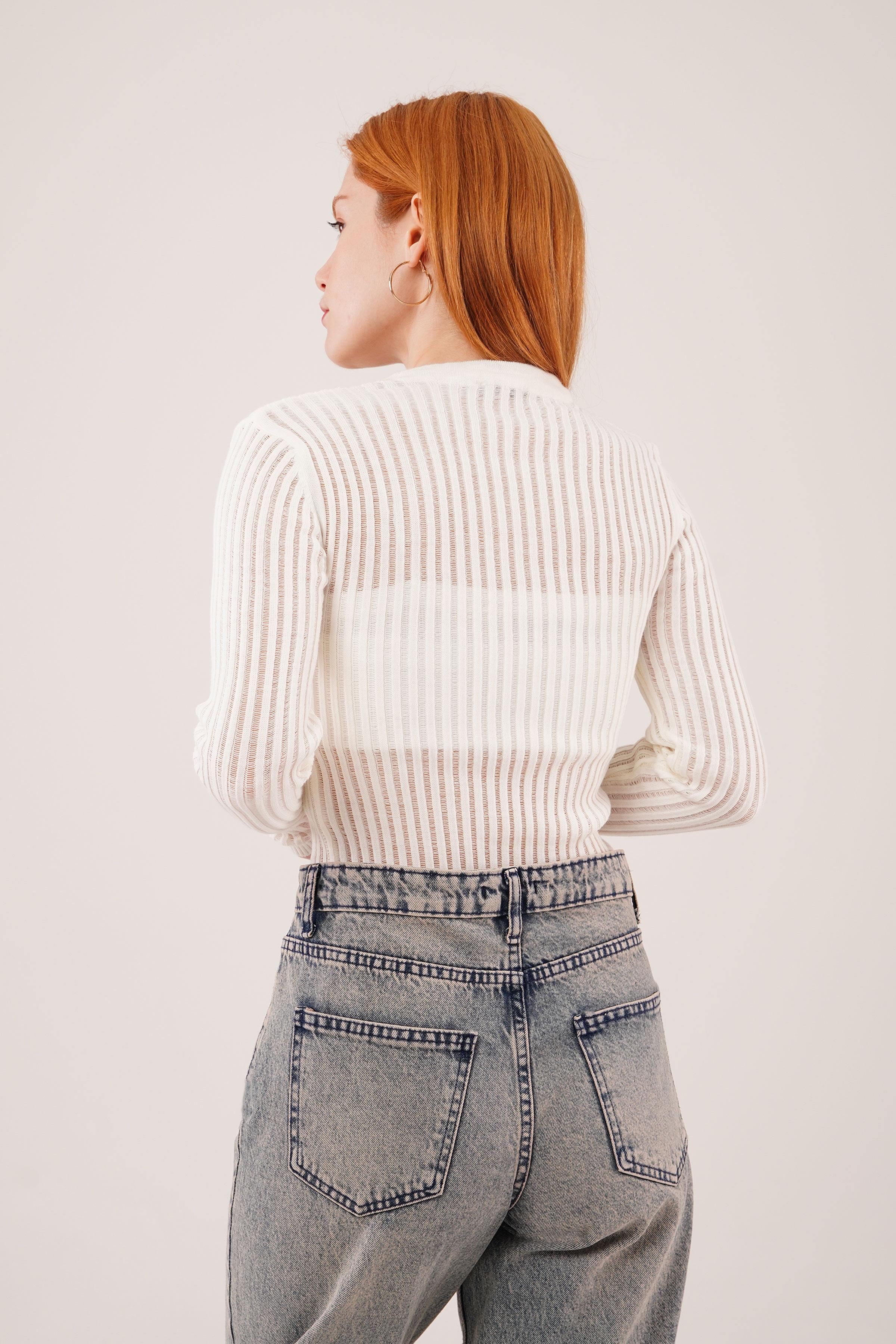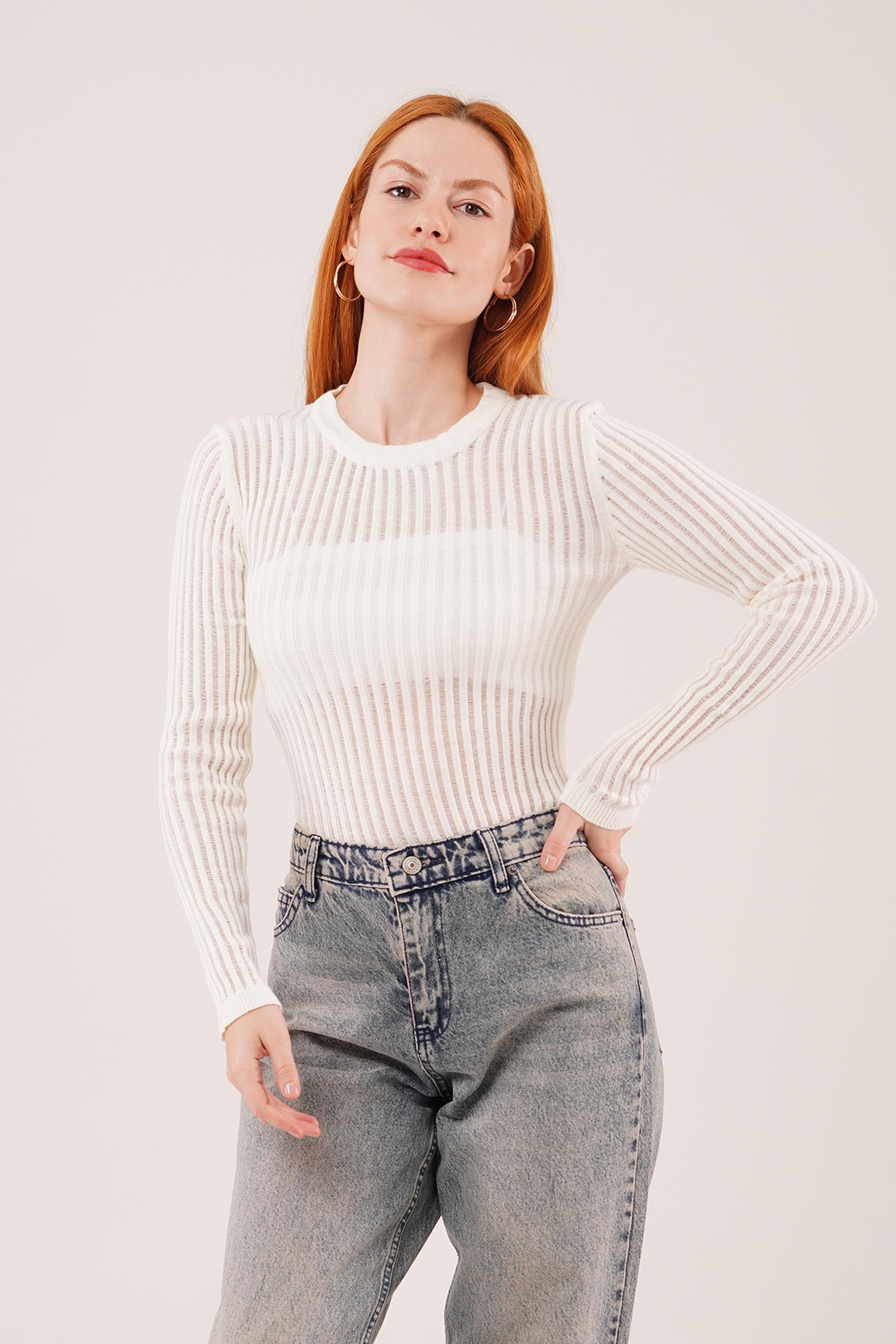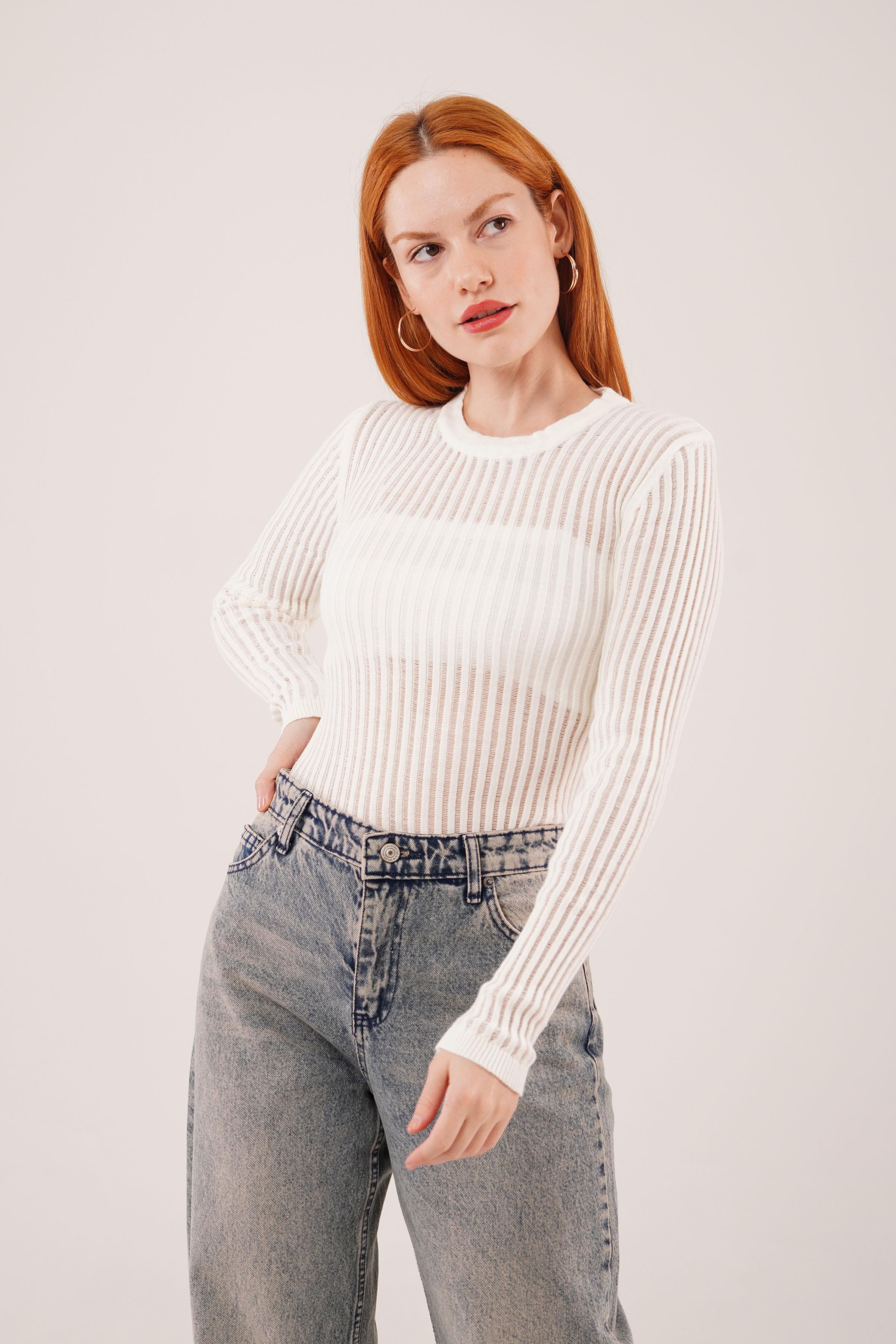 Transparan Uzun Kol Toptan Beyaz Bluz