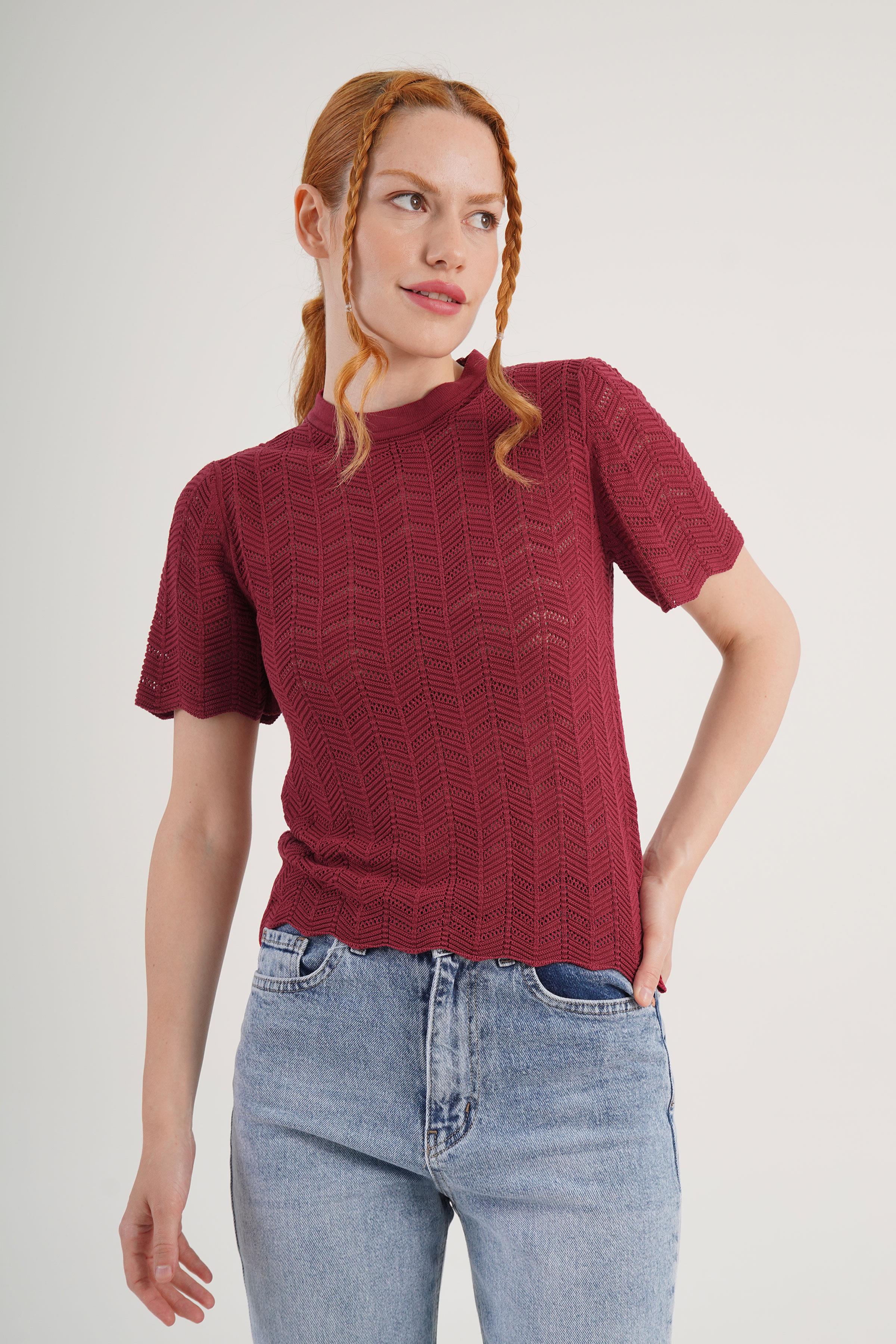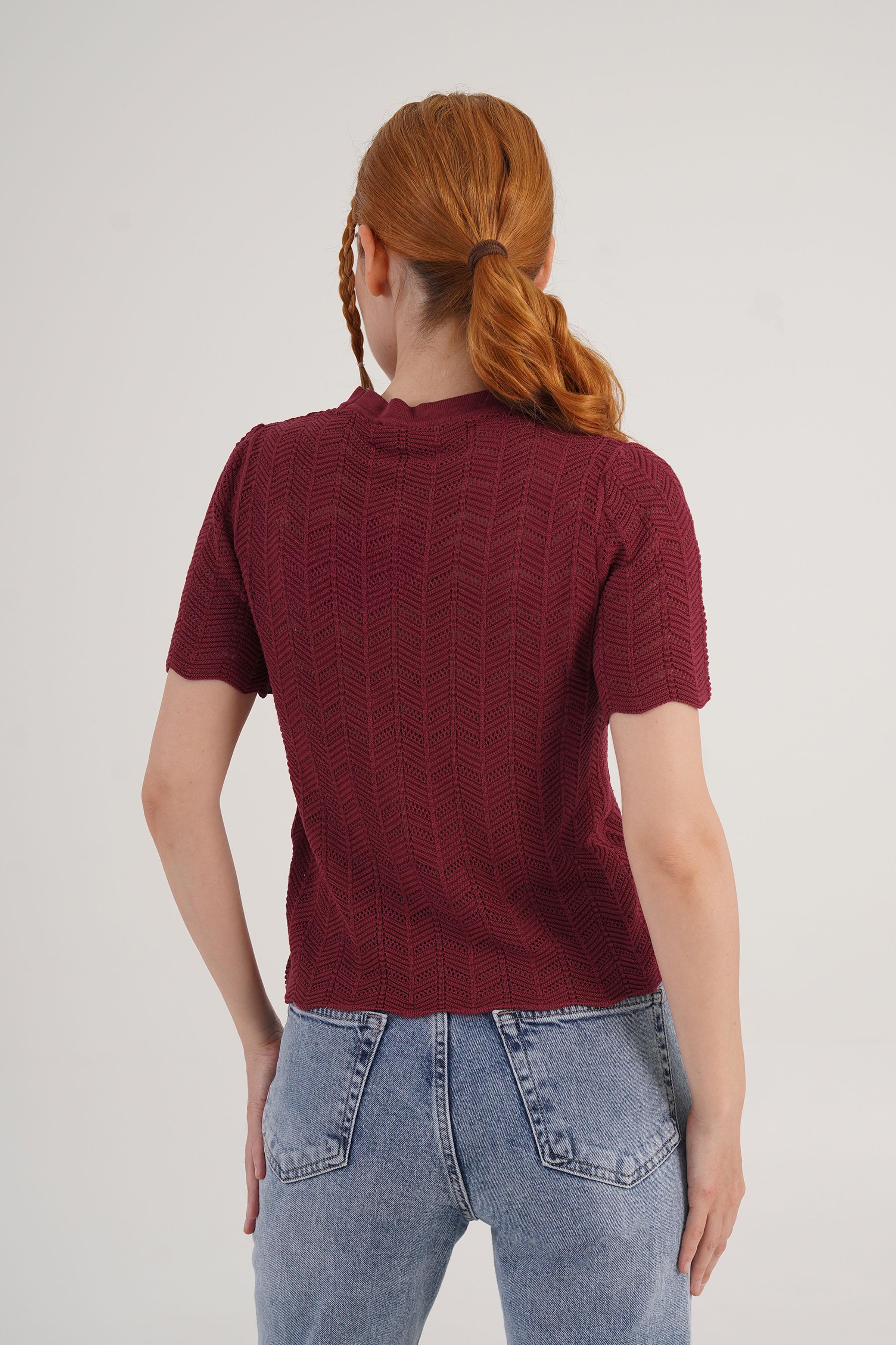 Örgü Model Kısa Kol Toptan Bordo Triko Bluz