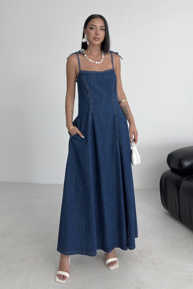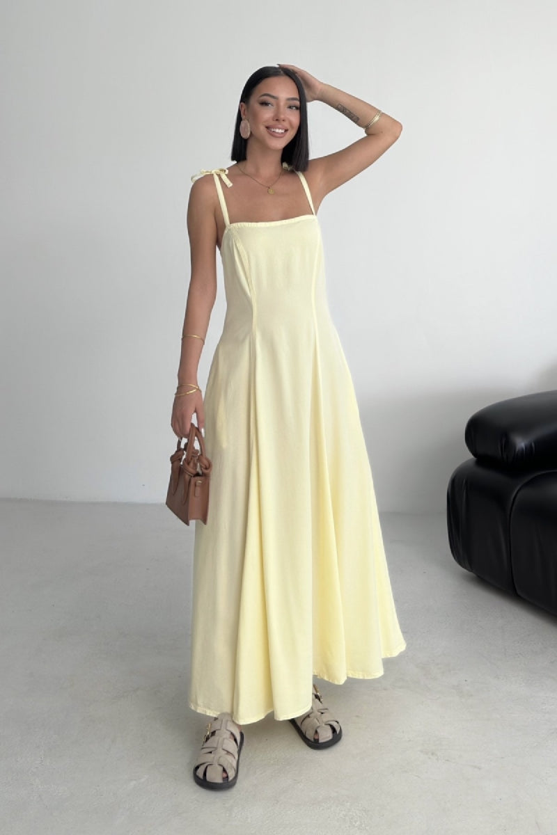 Bağcık Detaylı Volanlı Elbise