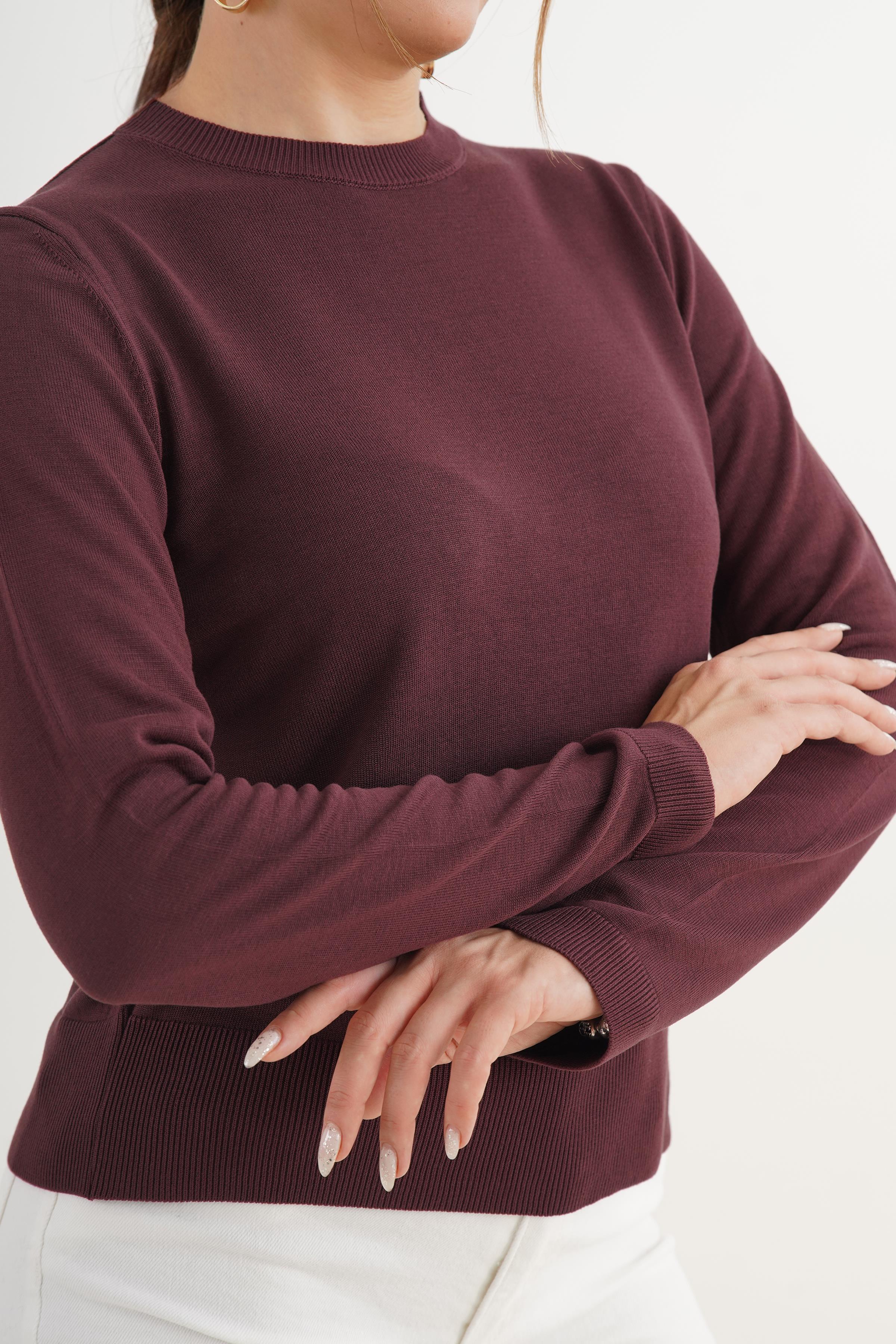 Yuvarlak Yaka İnce Triko Bordo Toptan Kazak
