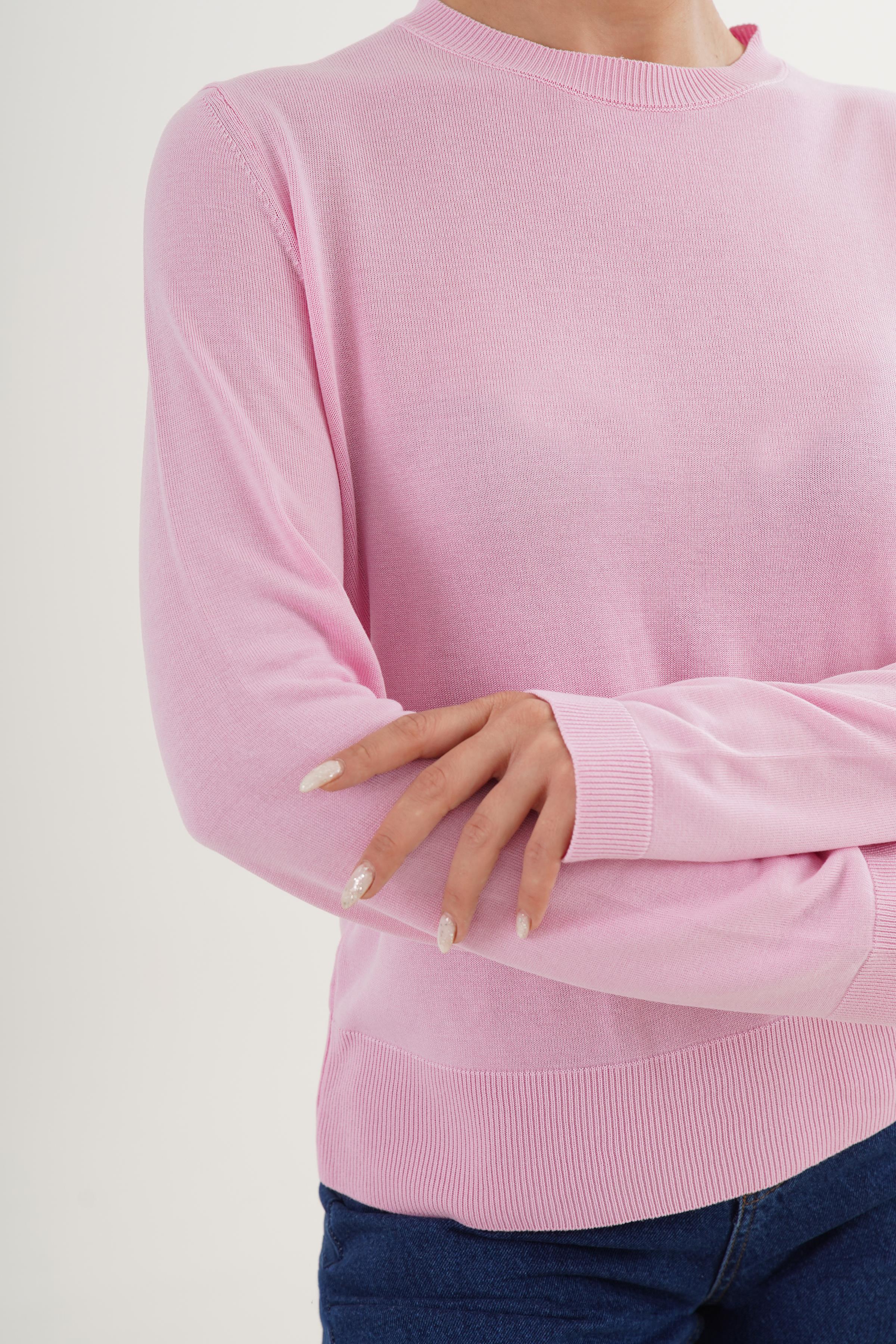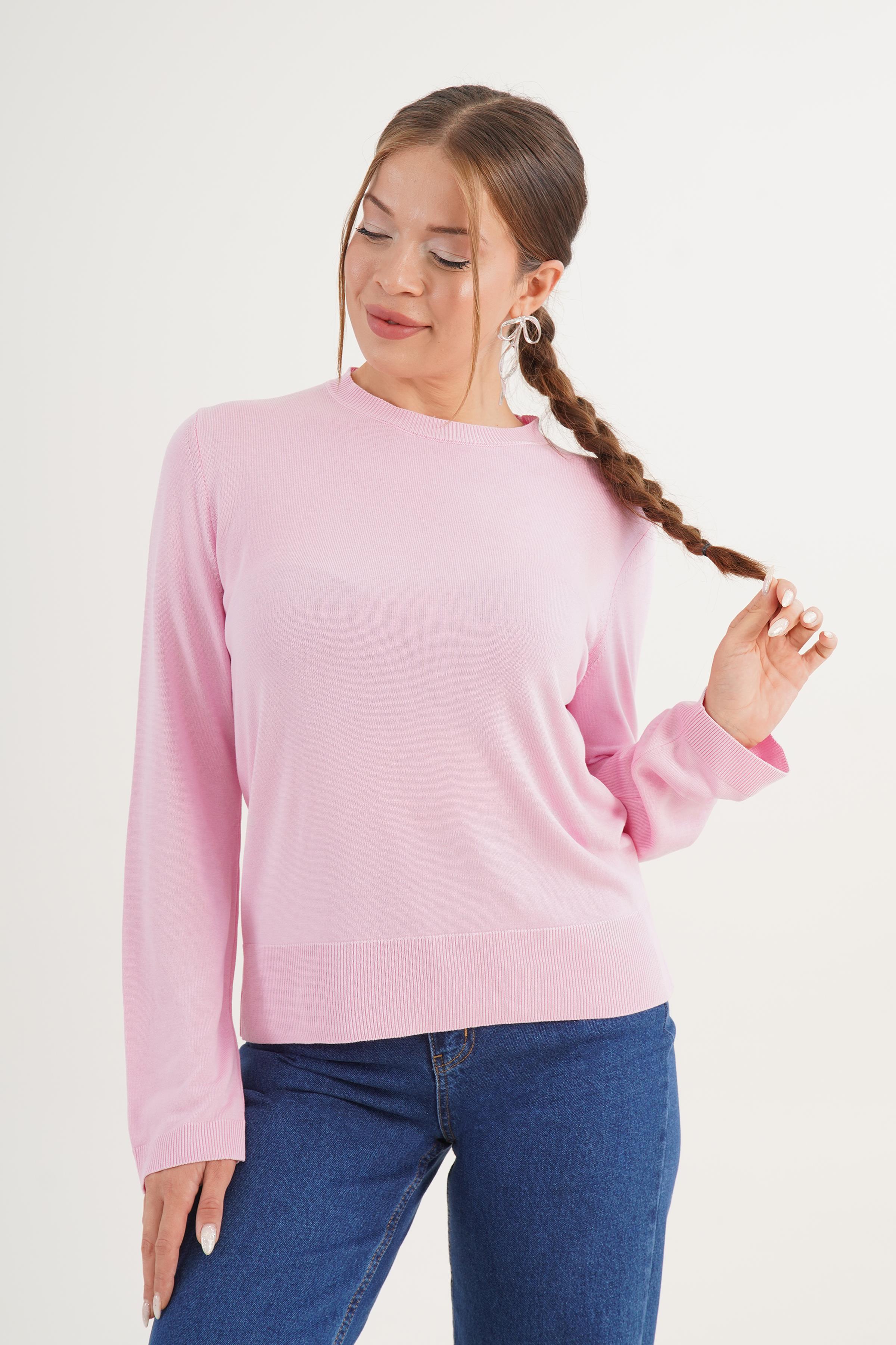 Yuvarlak Yaka İnce Triko Pembe Toptan Kazak