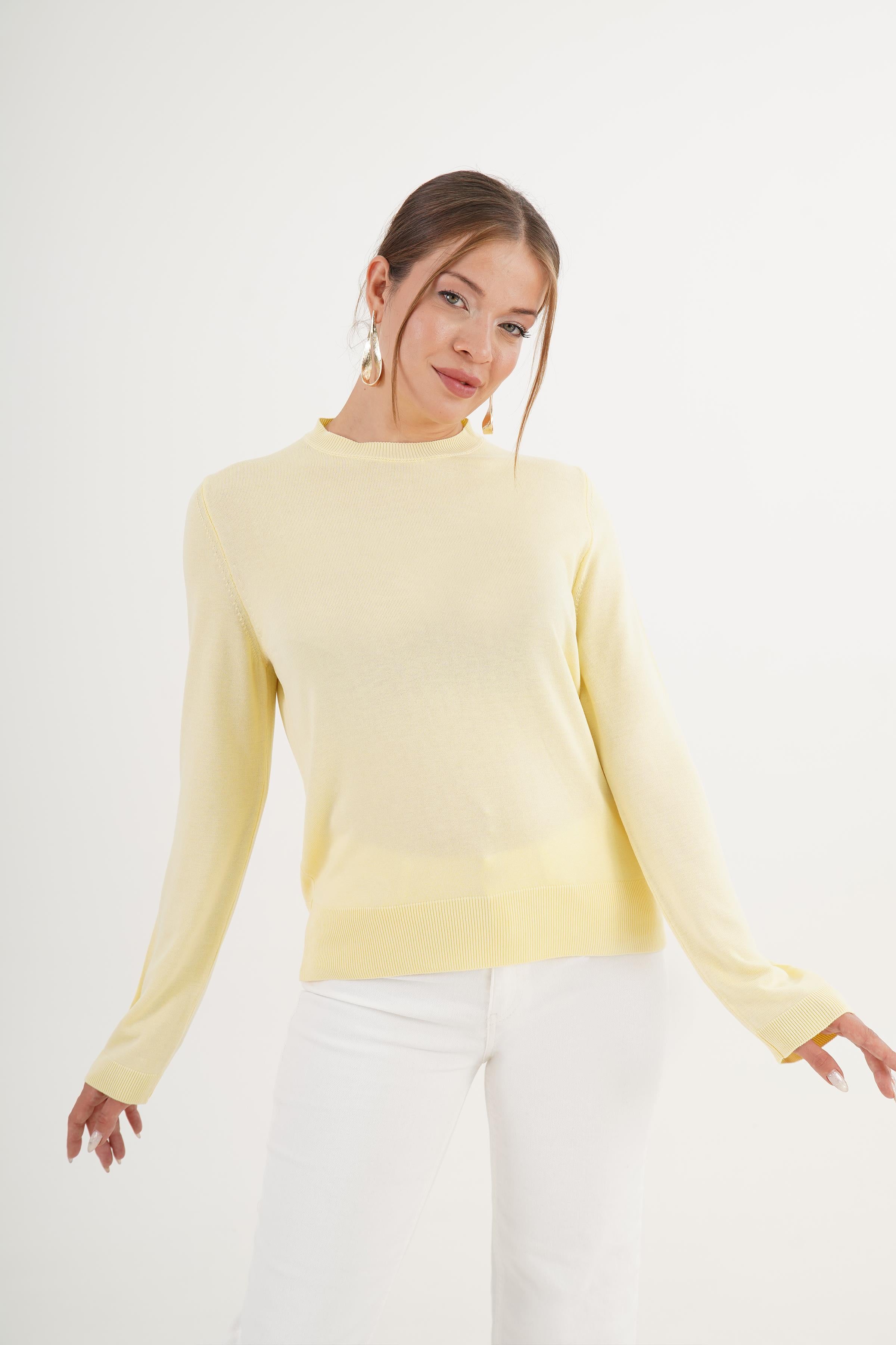 Yuvarlak Yaka İnce Triko Sarı Toptan Kazak