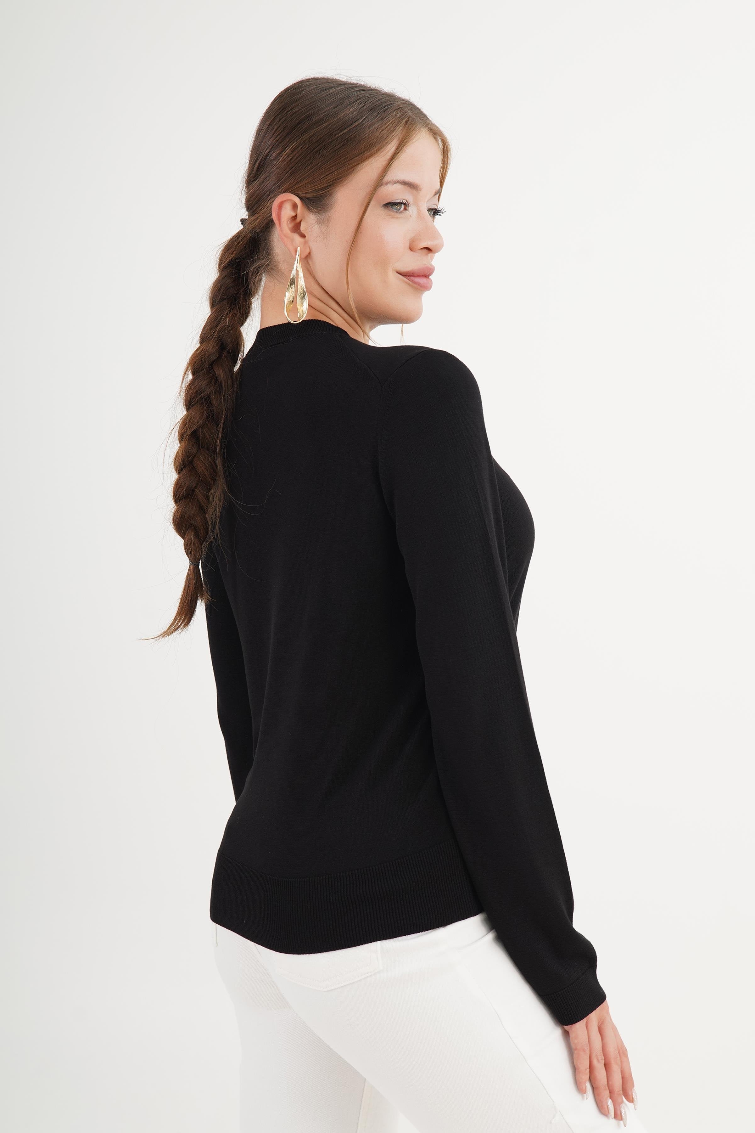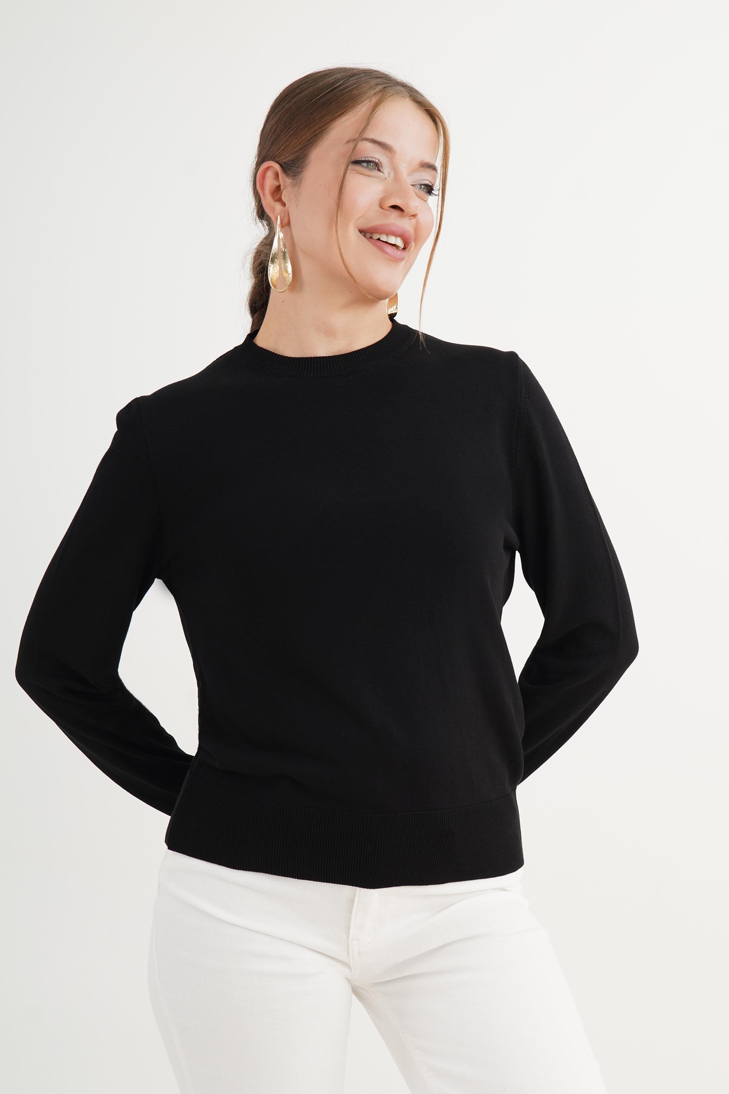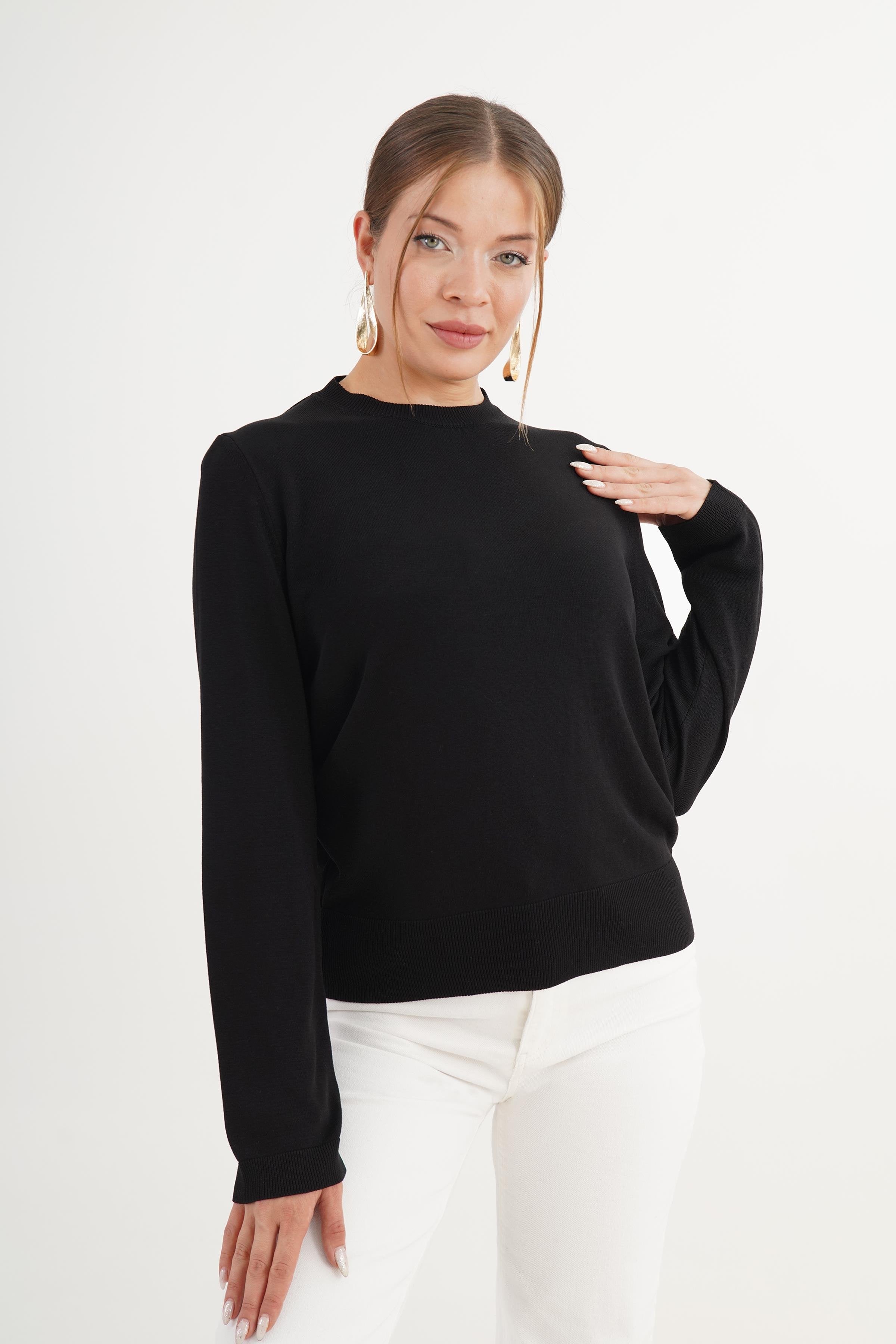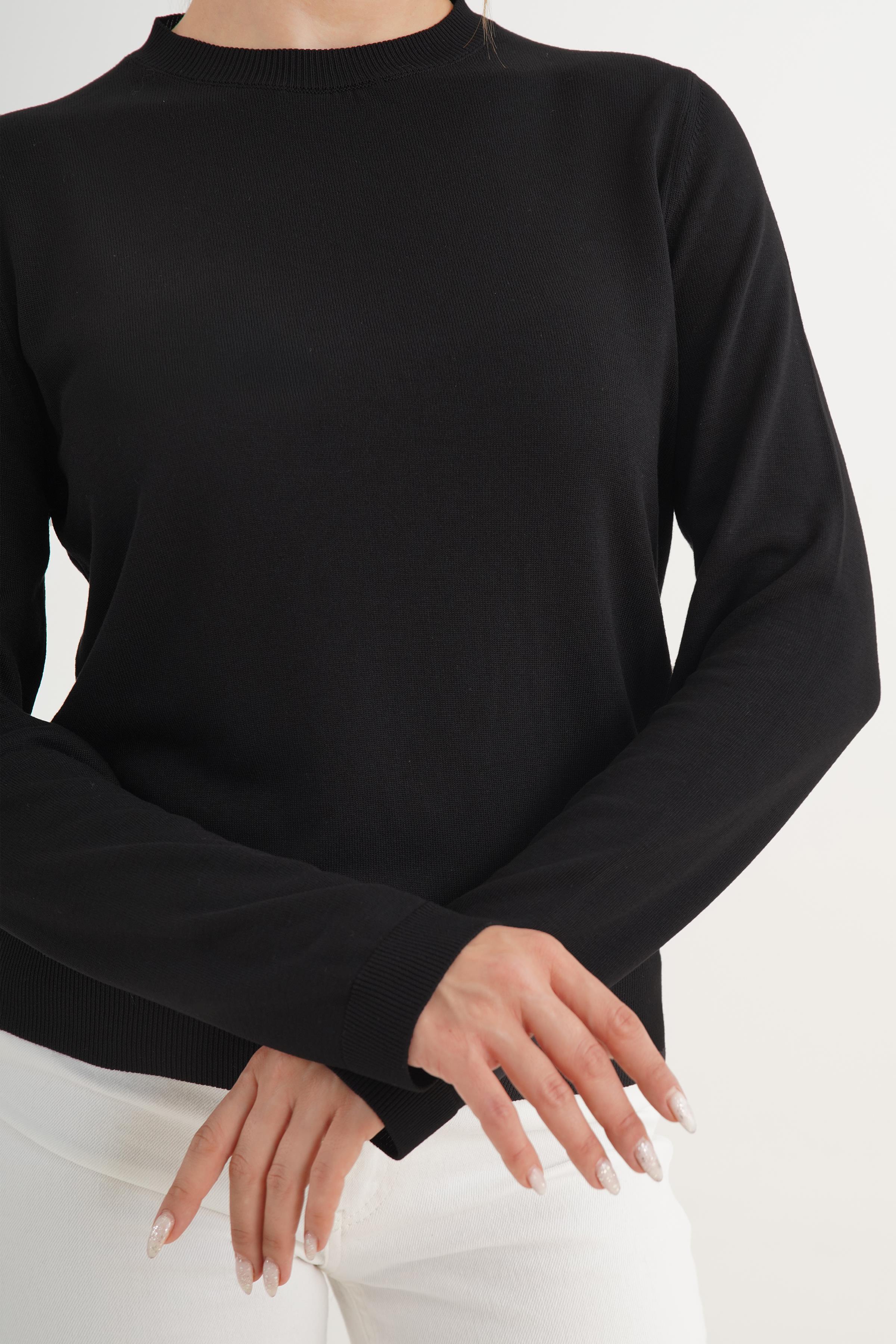 Yuvarlak Yaka İnce Triko Siyah Toptan Kazak