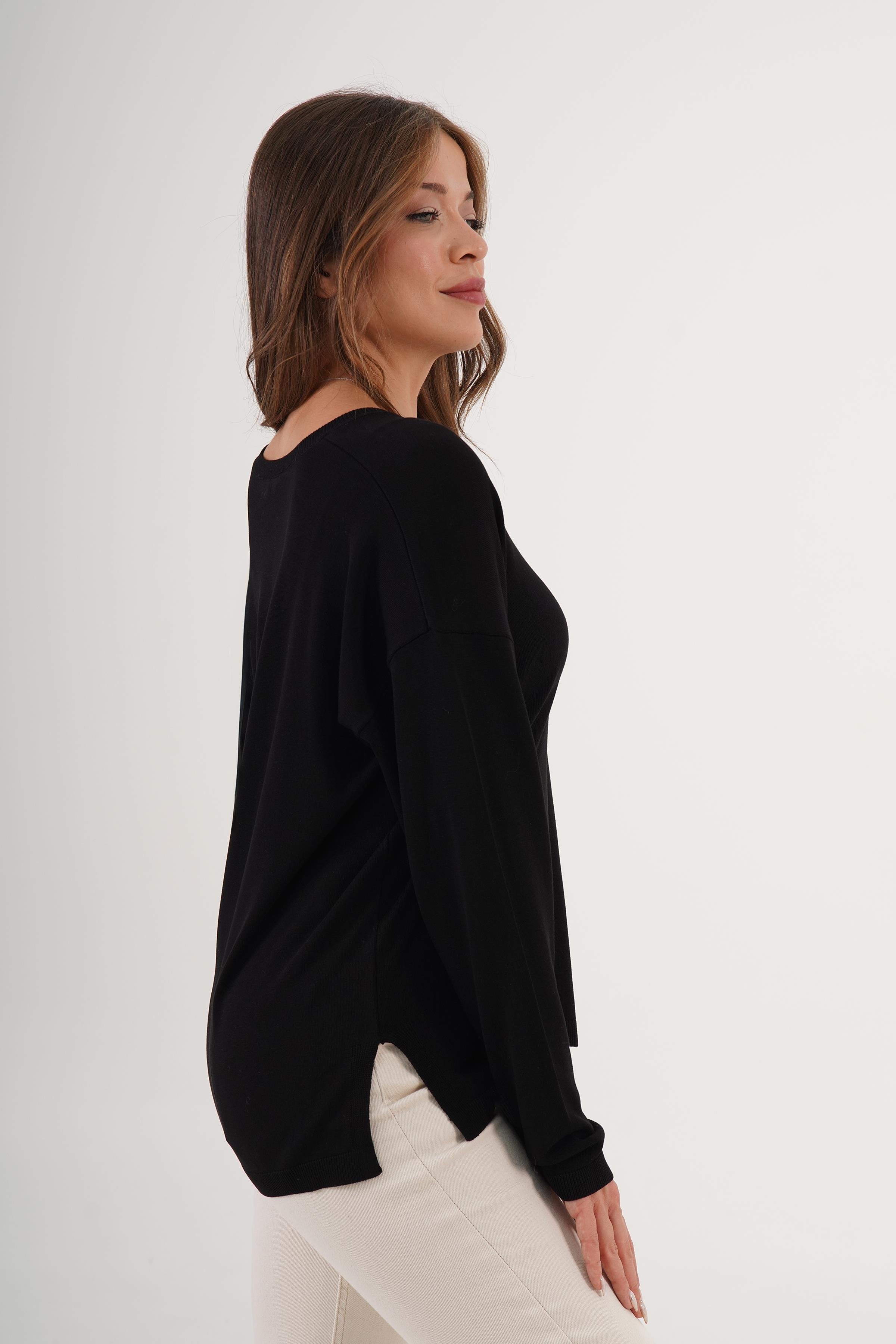 V Yaka Yan Yırtmaçlı Toptan Siyah Triko Kazak
