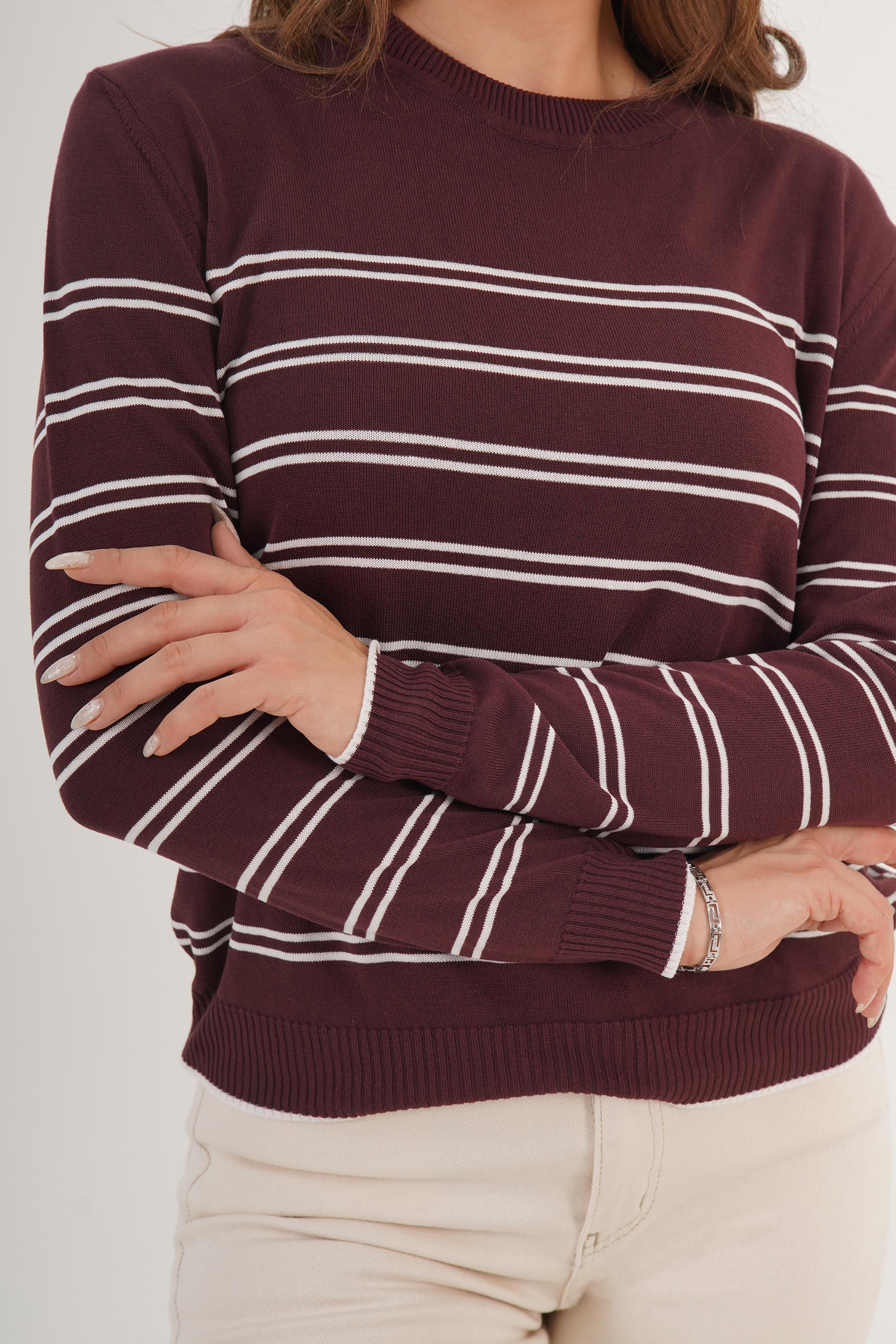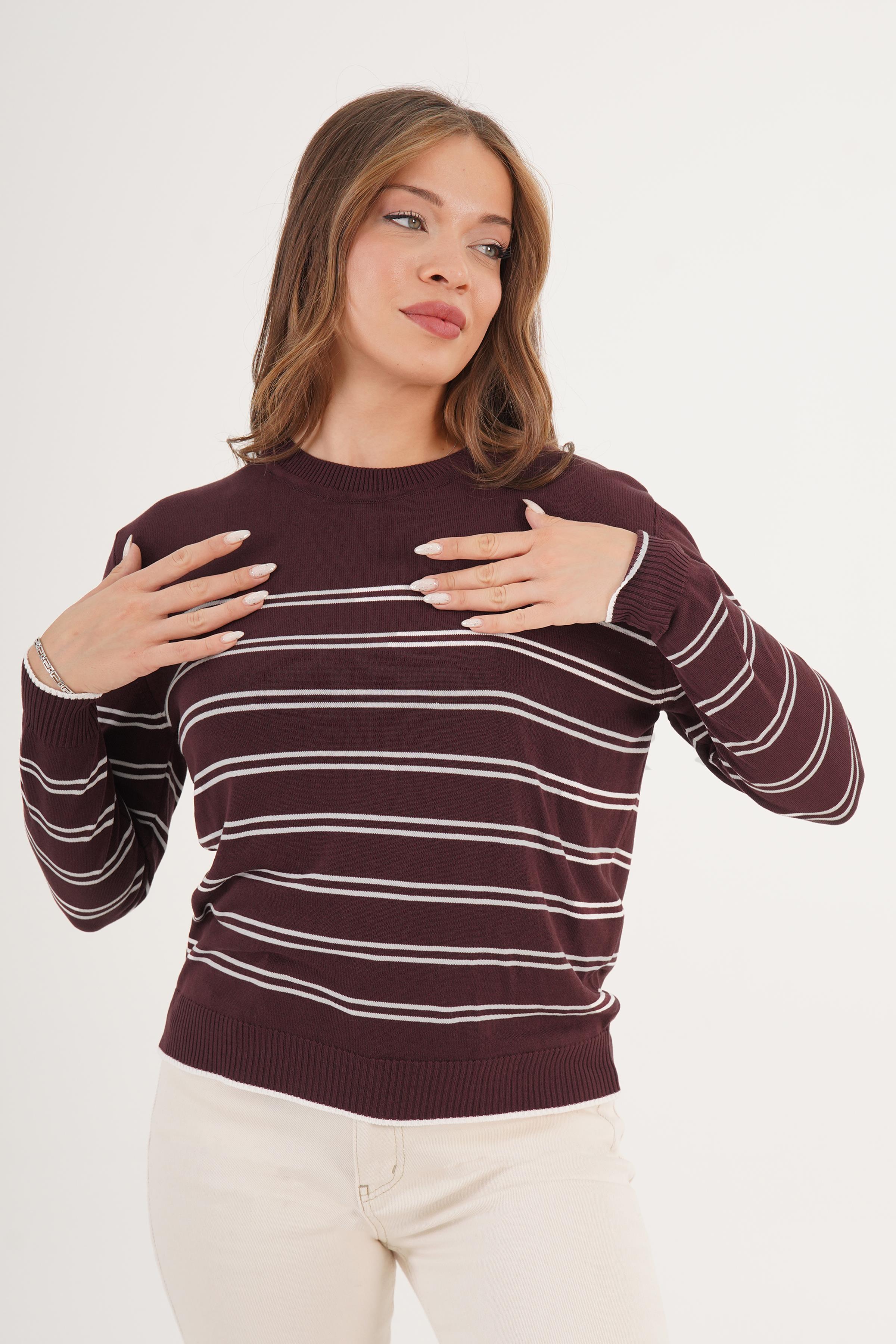 Çizgili Bisiklet Yaka Toptan Kahve Triko Kazak