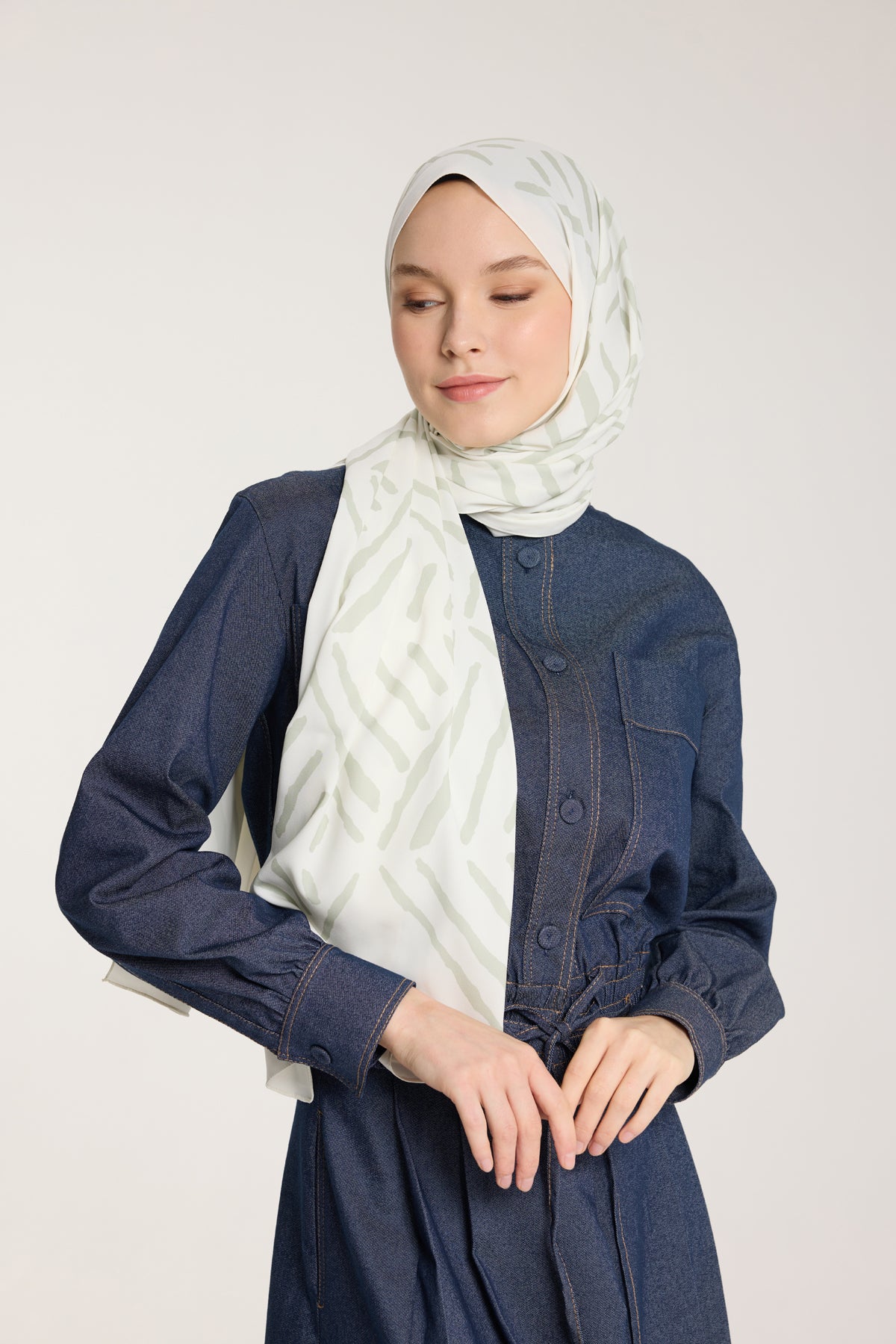 Pure Tone Şal - V Desen - Fildişi - Çağla