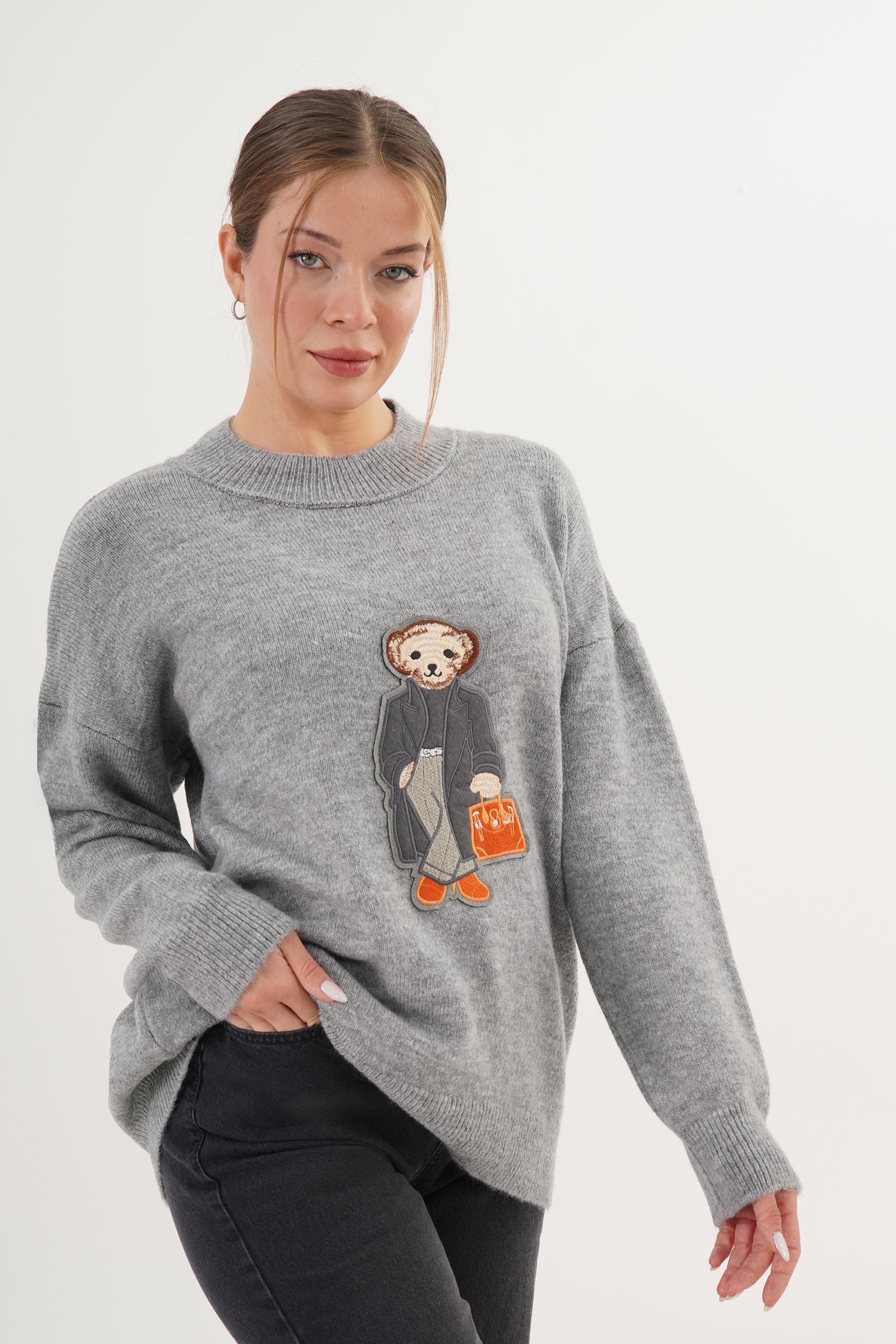 Ürün ÖlçüleriBoy70 cmGöğüs120 cmBel110 cmKumaş%70 Akrilik %20 Poli %10 Elestan Sezonun en sevimli trendi! Ayıcık nakışlı bisiklet yaka triko kazak, genç ve dinamik tasarımıyla kadın giyim koleksiyonlarına eğlenceli bir dokunuş katıyor. Rahat kalıbı ve yumuşak dokusuyla hem günlük kullanıma uygun hem de stil sahibi kombinler için ideal. Kadın giyimde farklı ve dikkat çekici parçalar arayan butik sahipleri için mükemmel bir seçim. Müşterilerinize hem sıcak tutan hem de şirin detaylarla öne çıkan kazaklar sunarak satışlarınızı artırın. Manken Ölçüleri Boy : 1.75 cm