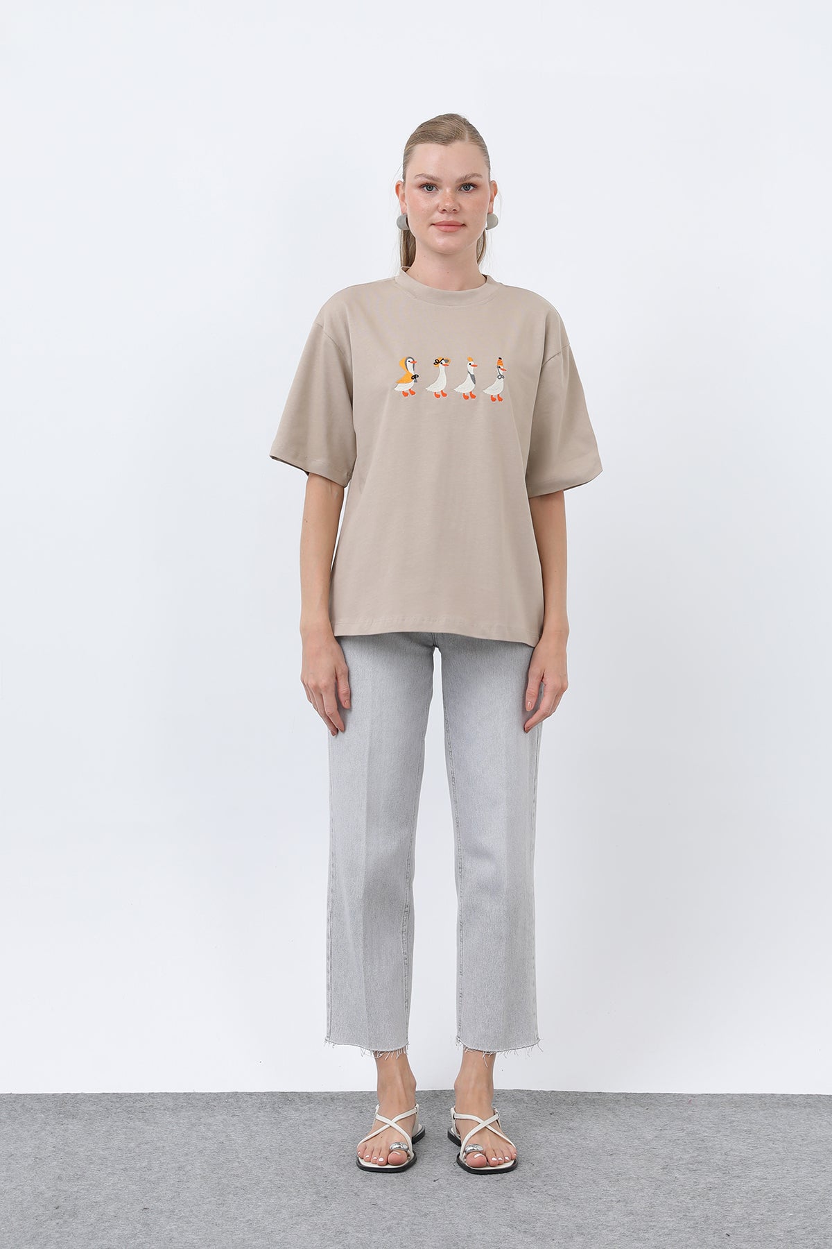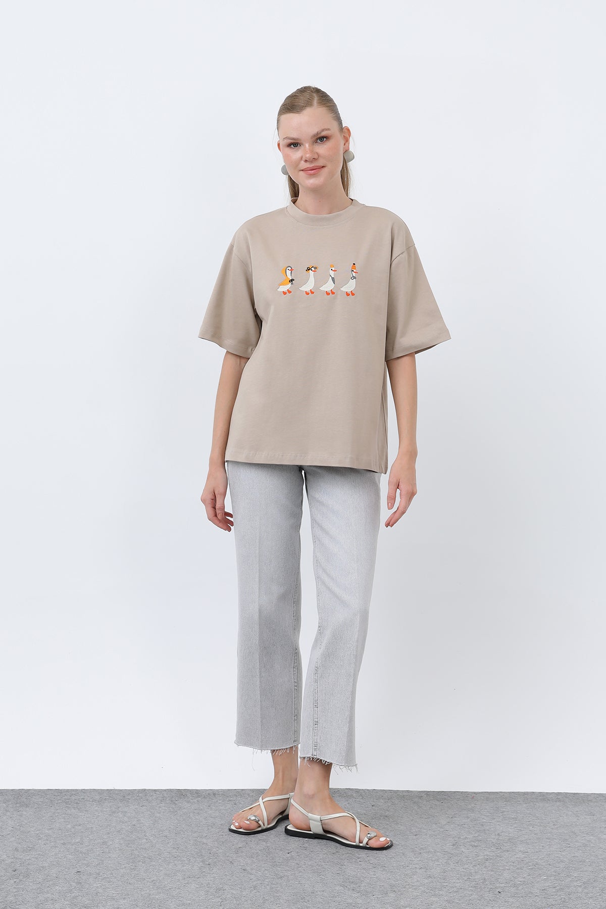 Minimal ördek deseniyle sade ve eğlenceli bir görünüm sunan bu tişört, rahat kalıbı sayesinde günlük kullanım için uygundur. Hafif ve yumuşak dokusuyla konfor sağlar. Spor ve casual kombinlerde tercih edilebilir.
