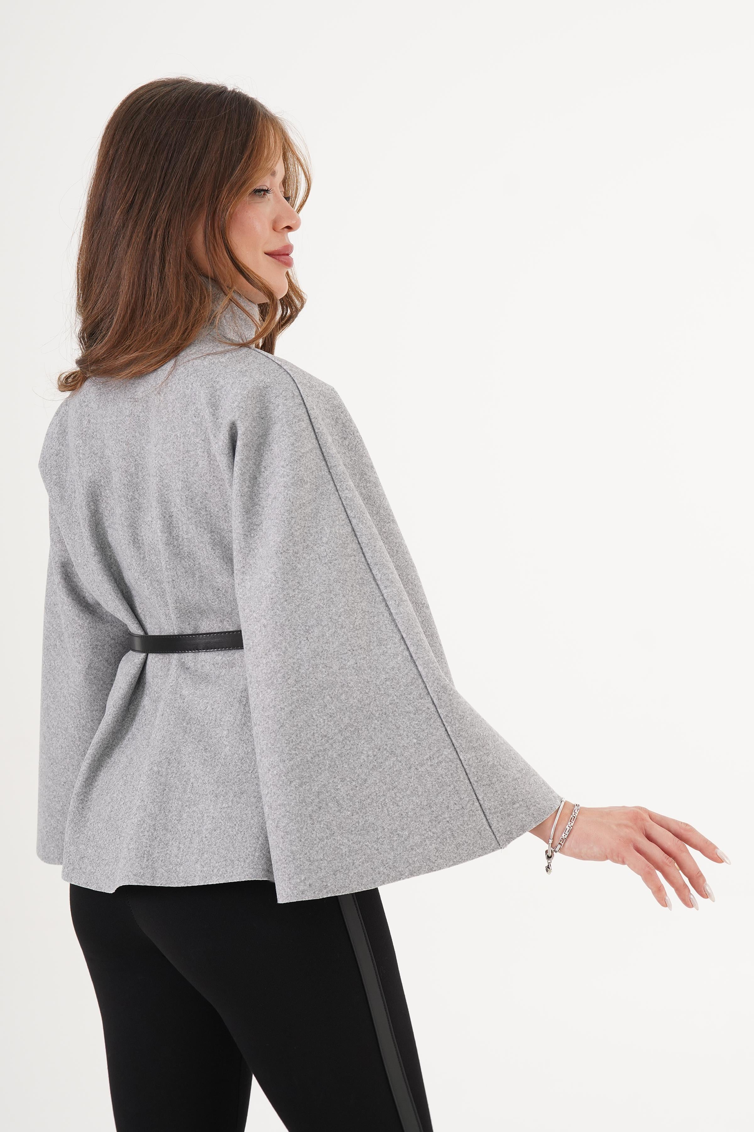 Kemer Detaylı Tek Düğmeli Toptan Gri Panço