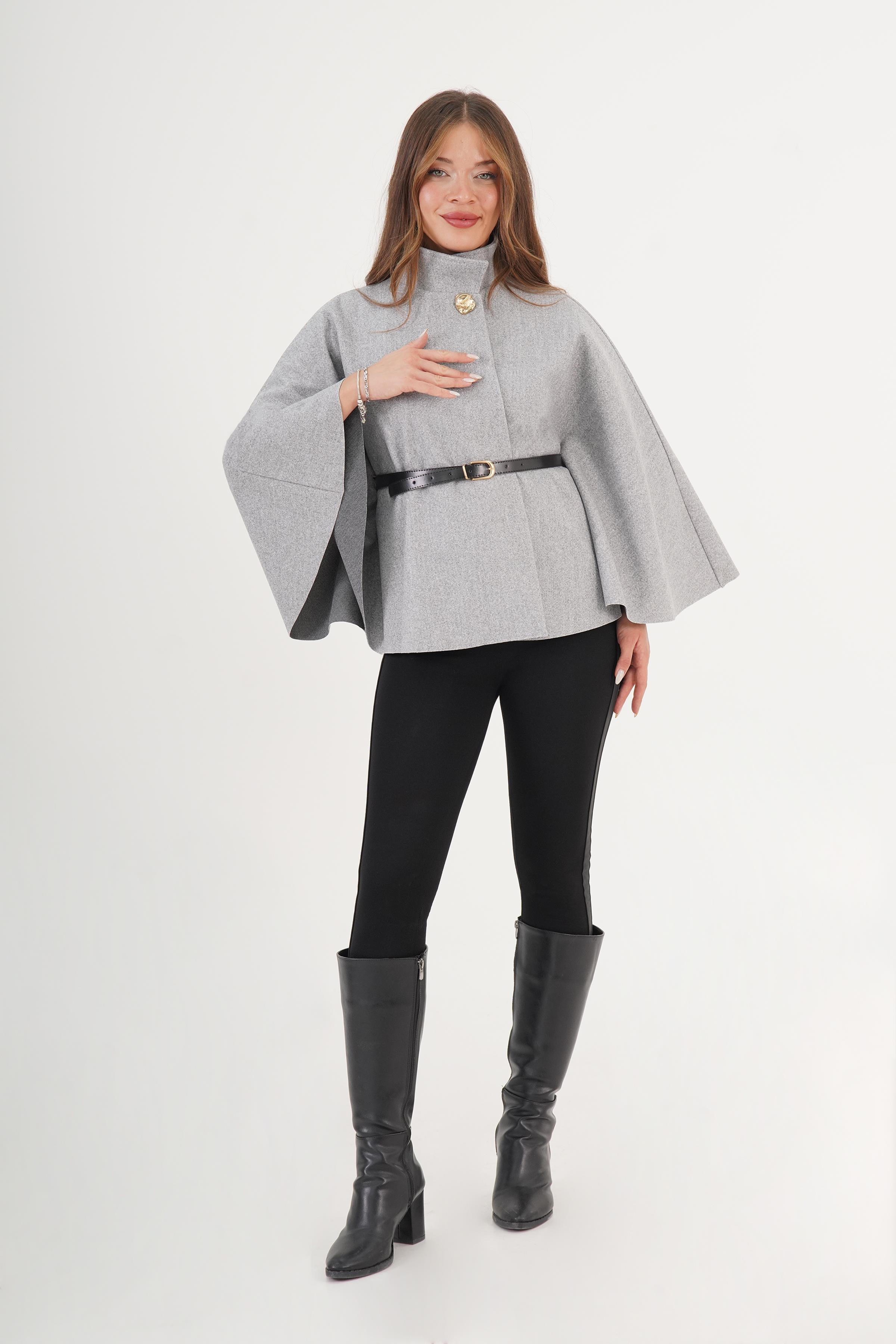 Ürün ÖlçüleriBoy62 cmGöğüs145 cmBel- cmKumaş%100 Polyester Yaka altı kısmındaki tek düğme ile sadeliği bozmadan kombin yapabilirsiniz. Kendiliğinden kemeri olan panço soğuk kış aylarında kurtarıcınız olacak. Manken Ölçüleri Boy : 1.70 cm