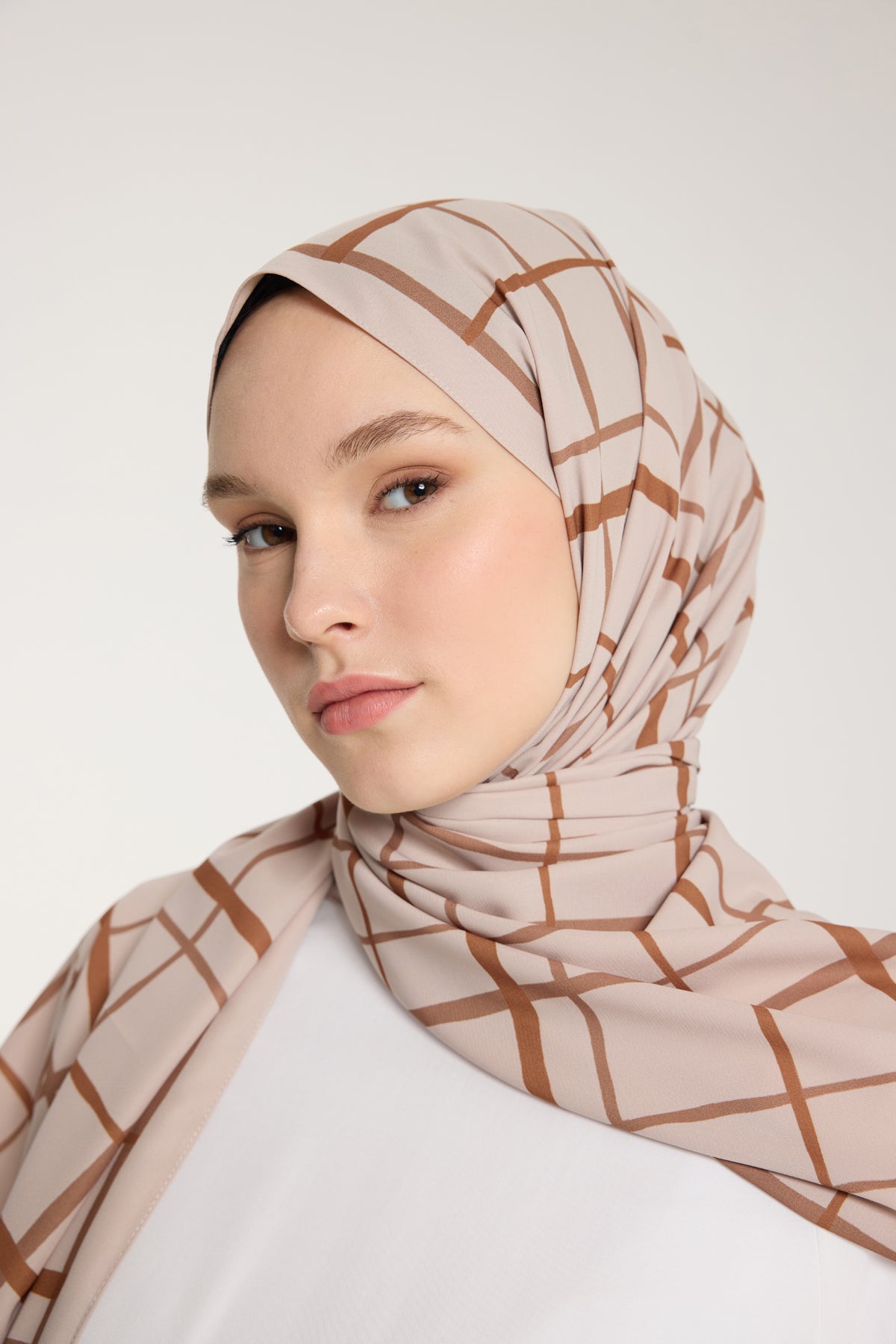 Pure Tone Şal - Kare Desen - Taş - Fındık