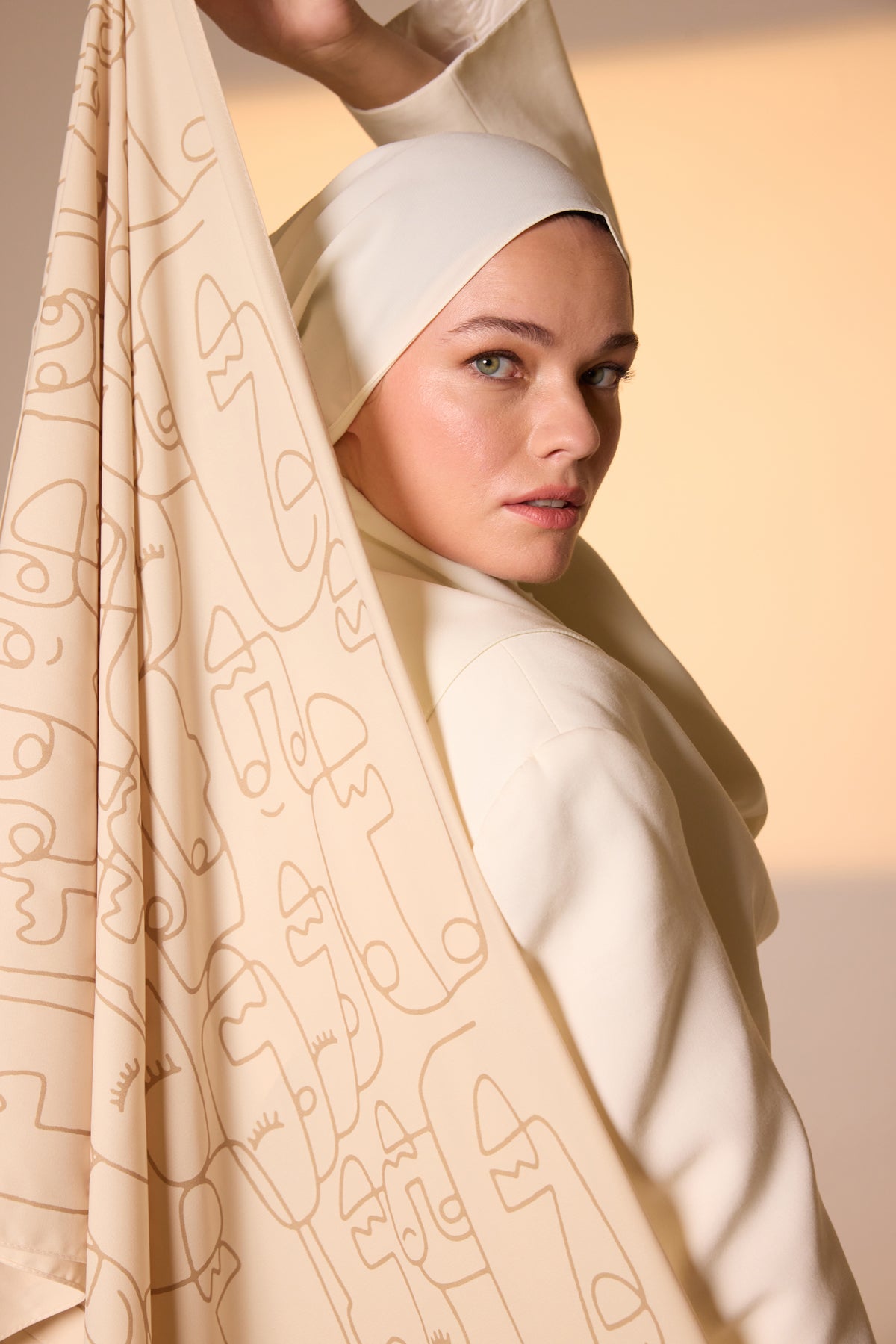 Pure Tone Şal - Marjinal Desen - Bej - Vizon