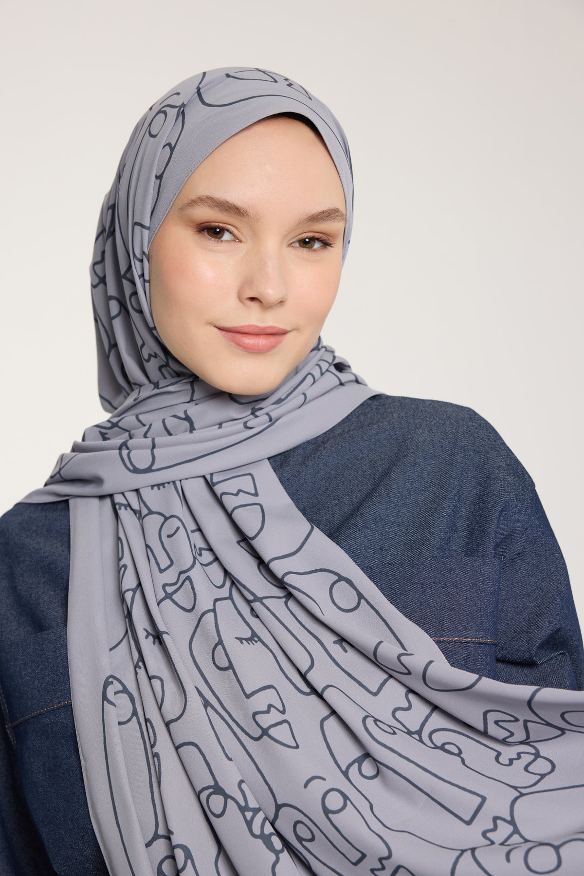 Pure Tone Şal - Marjinal Desen - Gümüş - Füme
