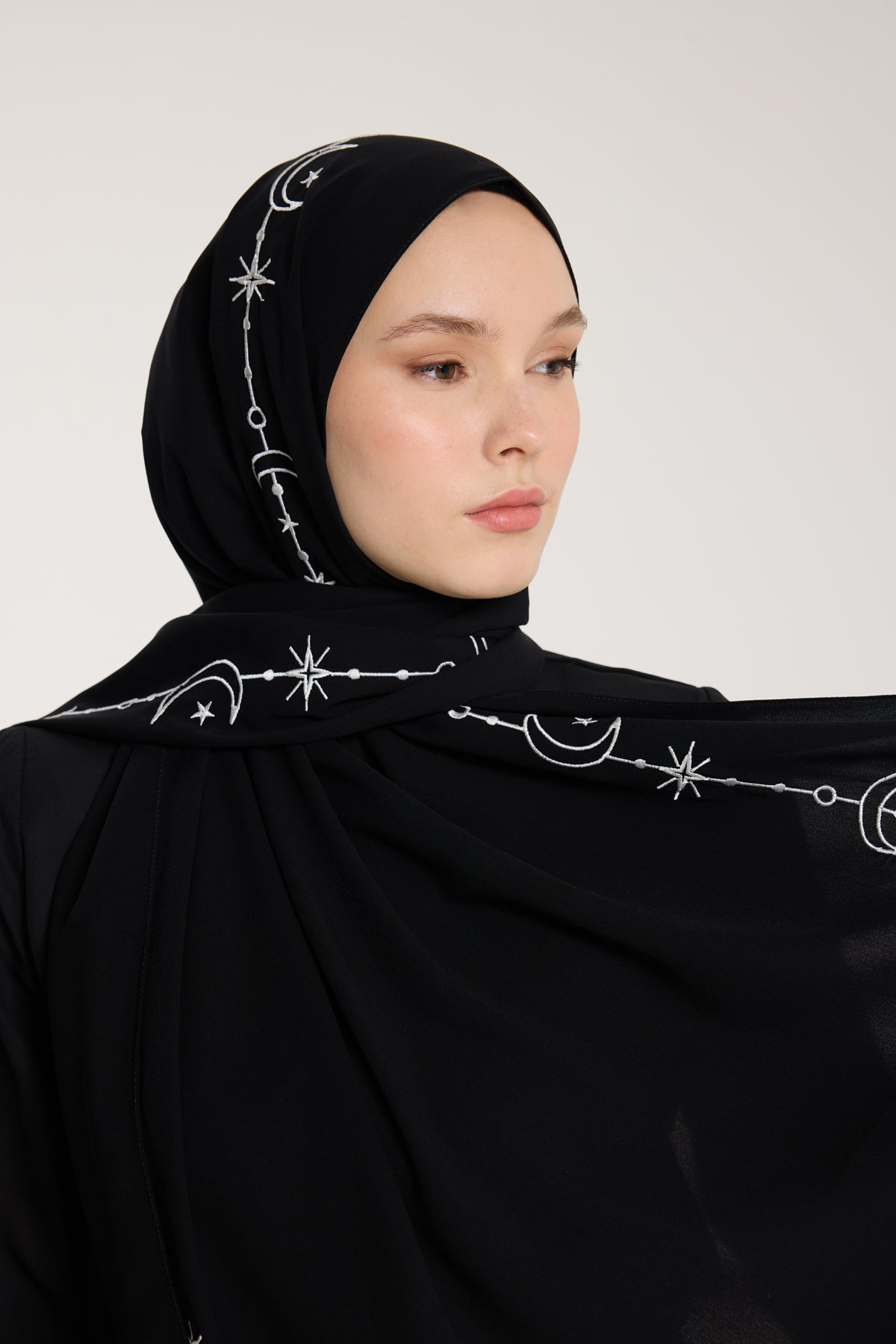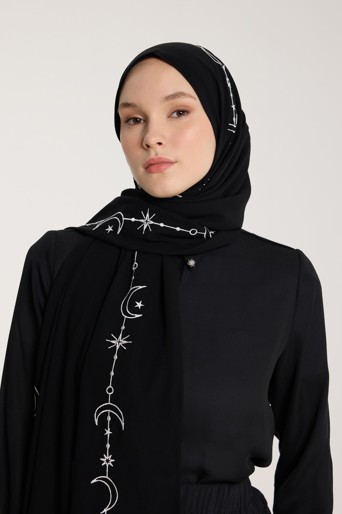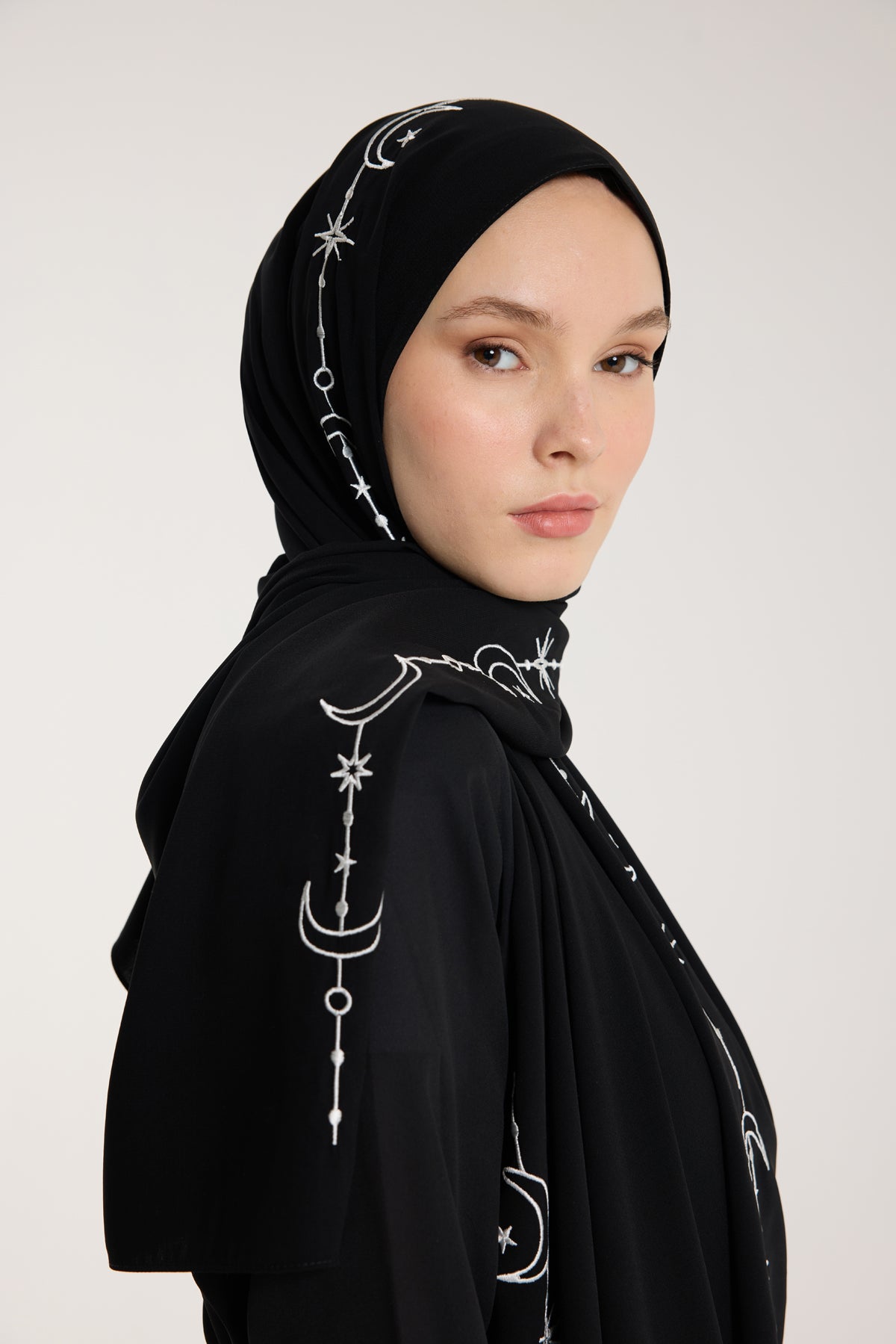 Nakış Şal - Hilal Dokuma - Siyah - Beyaz