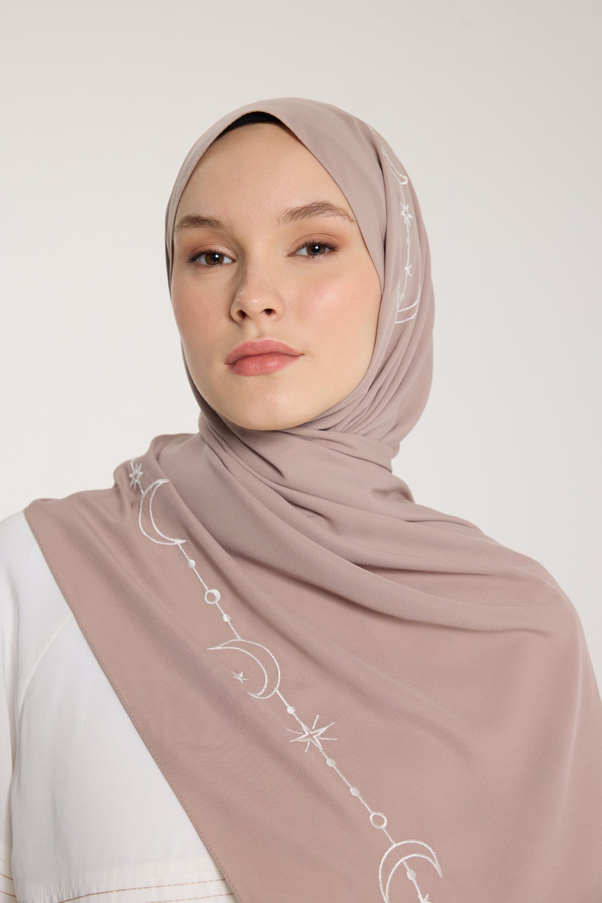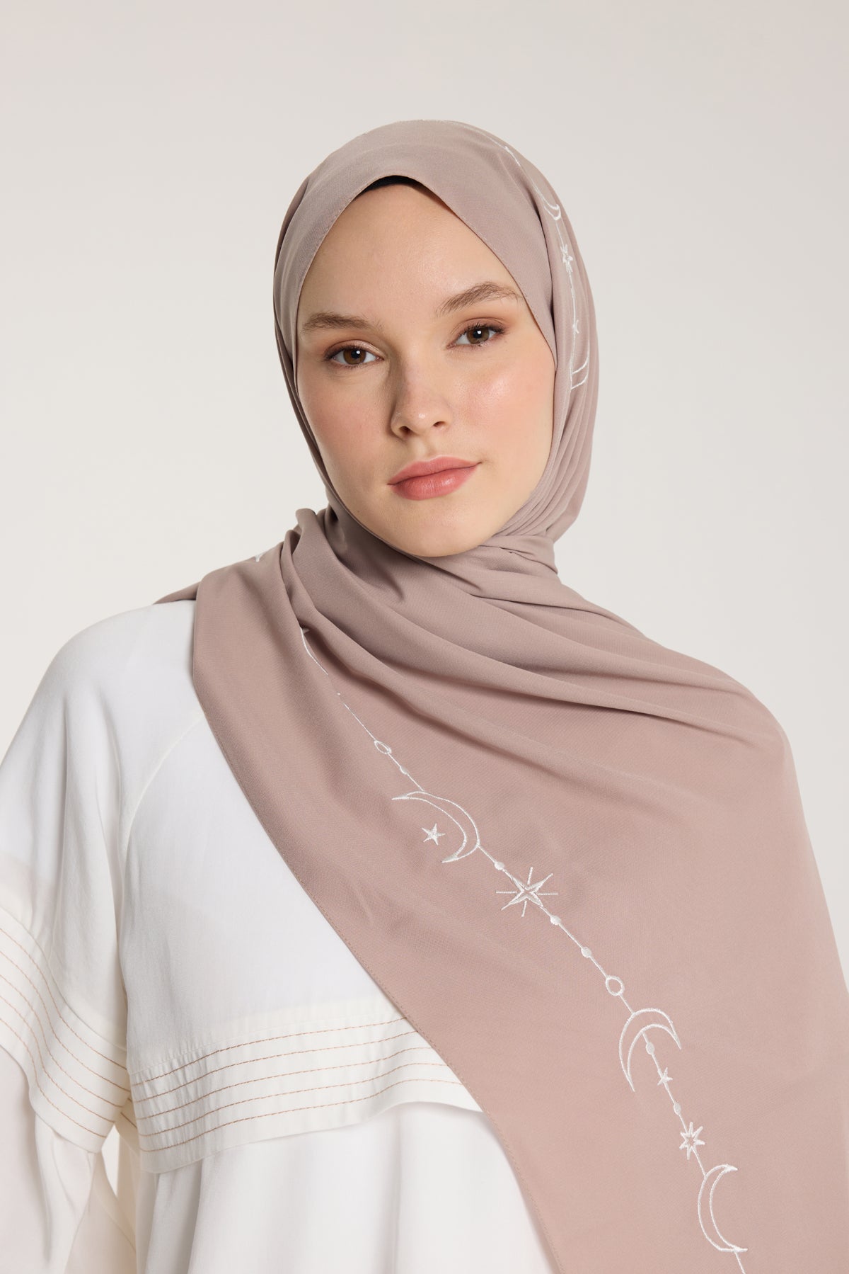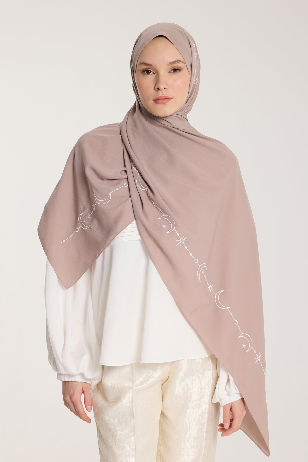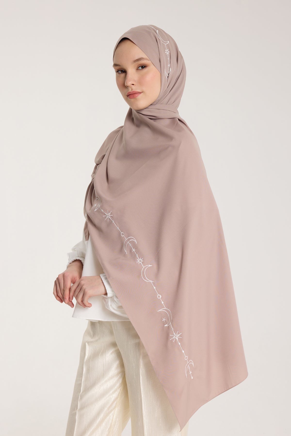 Nakış Şal - Hilal Dokuma - Vizon - Beyaz