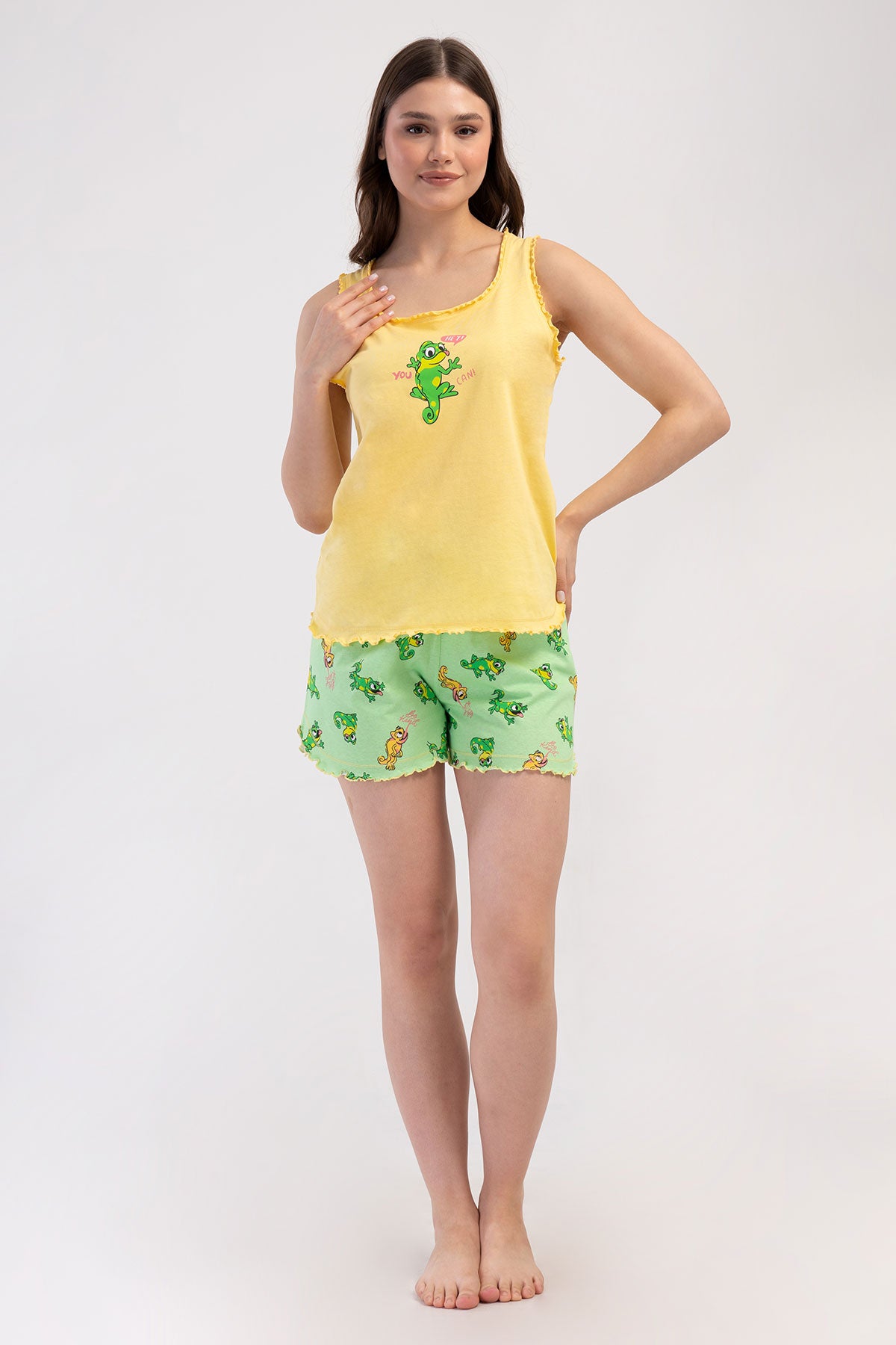 Woman Supreme Sleeveless Frogy Short Set. Vienetta short pajama sets offer airy fabric and loose fit to keep you cool and comfy on summer evenings at home. Order Now!