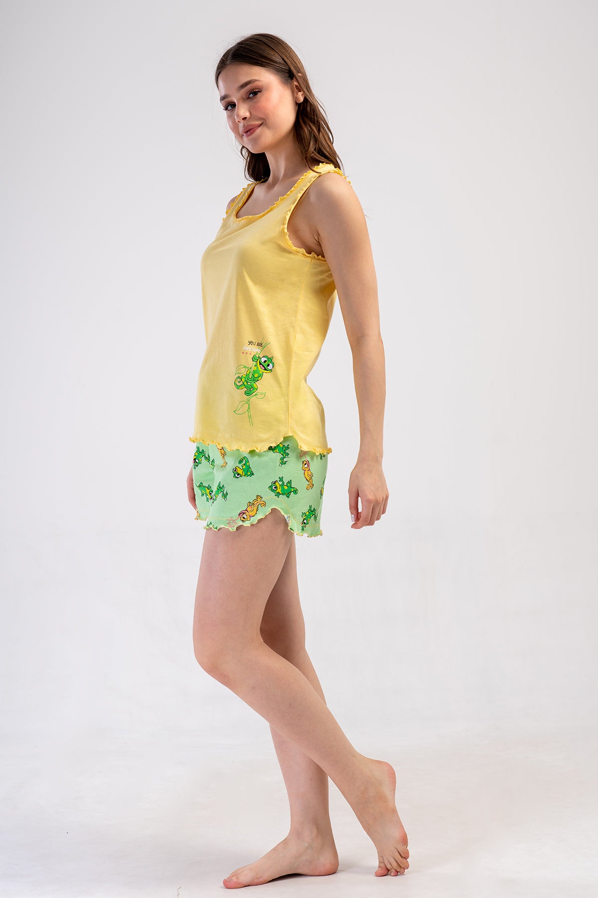 Woman Supreme Frogy Thick Strap Short Set. Vienetta short pajama sets offer airy fabric and loose fit to keep you cool and comfy on summer evenings at home. Order Now!