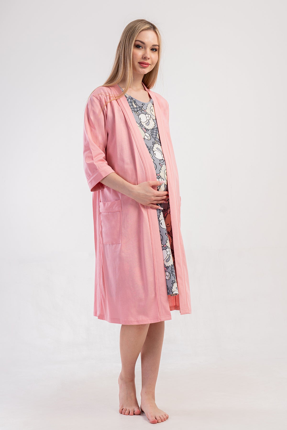 Woman Supreme Sheepy Pocket Detail Pregnant Dressing Gown Set. Vienetta pregnant home tunics offer ultimate comfort with relaxed cuts and soft fabrics—perfect for a stylish yet cozy look while staying in. Its grweat for wonderful moms.