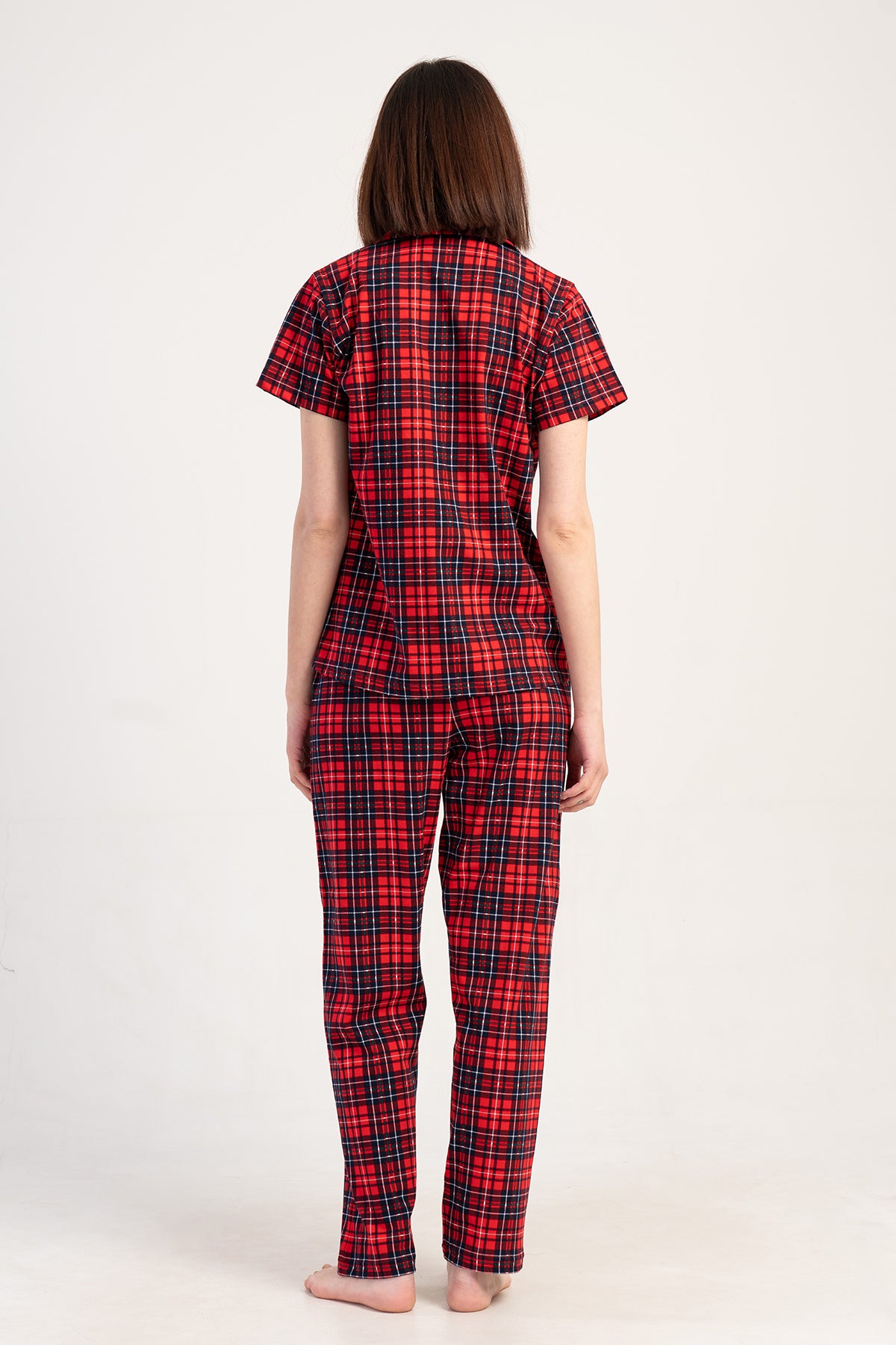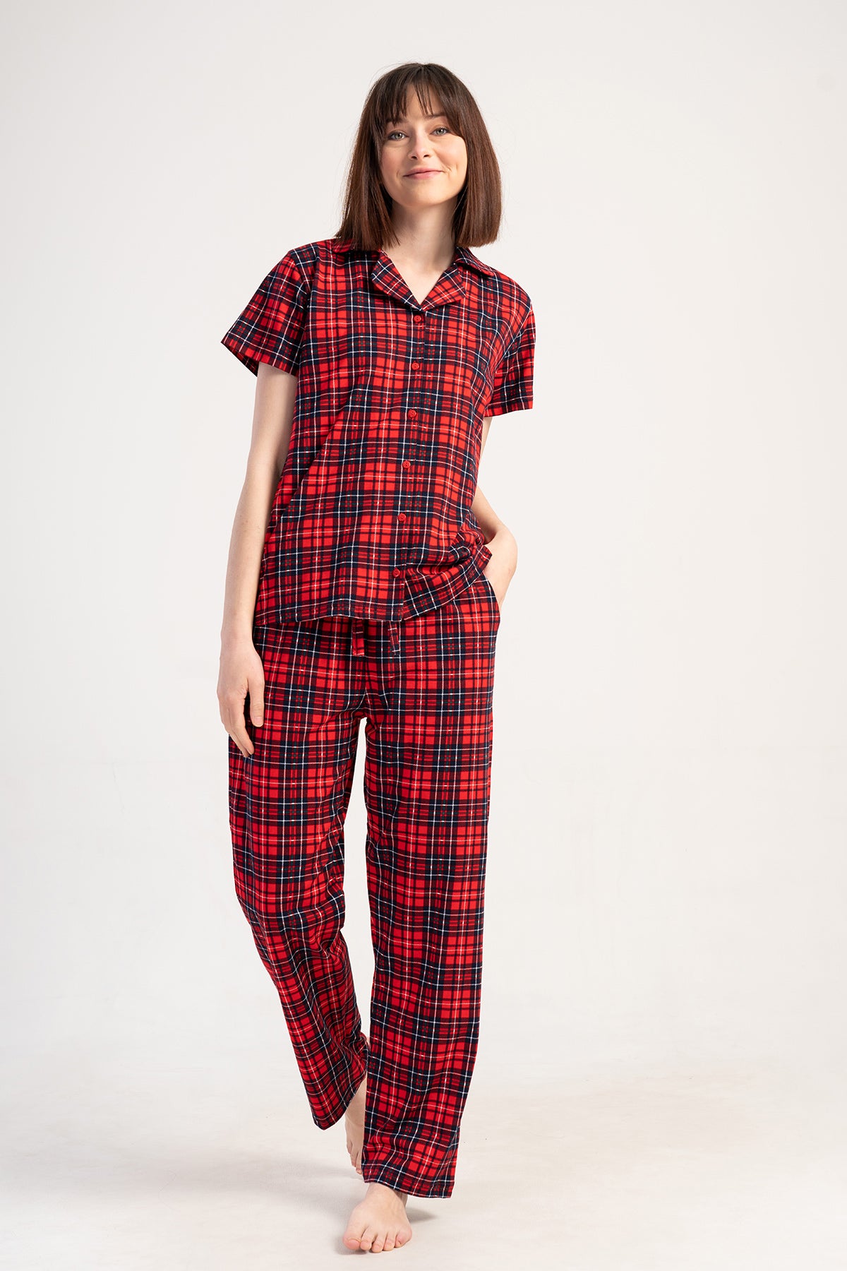 Woman Supreme Short Sleeve Shirt Collar Red Plaid Pyjama Set. Vienetta pajama sets offer soft fabric and ergonomic fit to ensure comfortable, restful nights. Order Now!