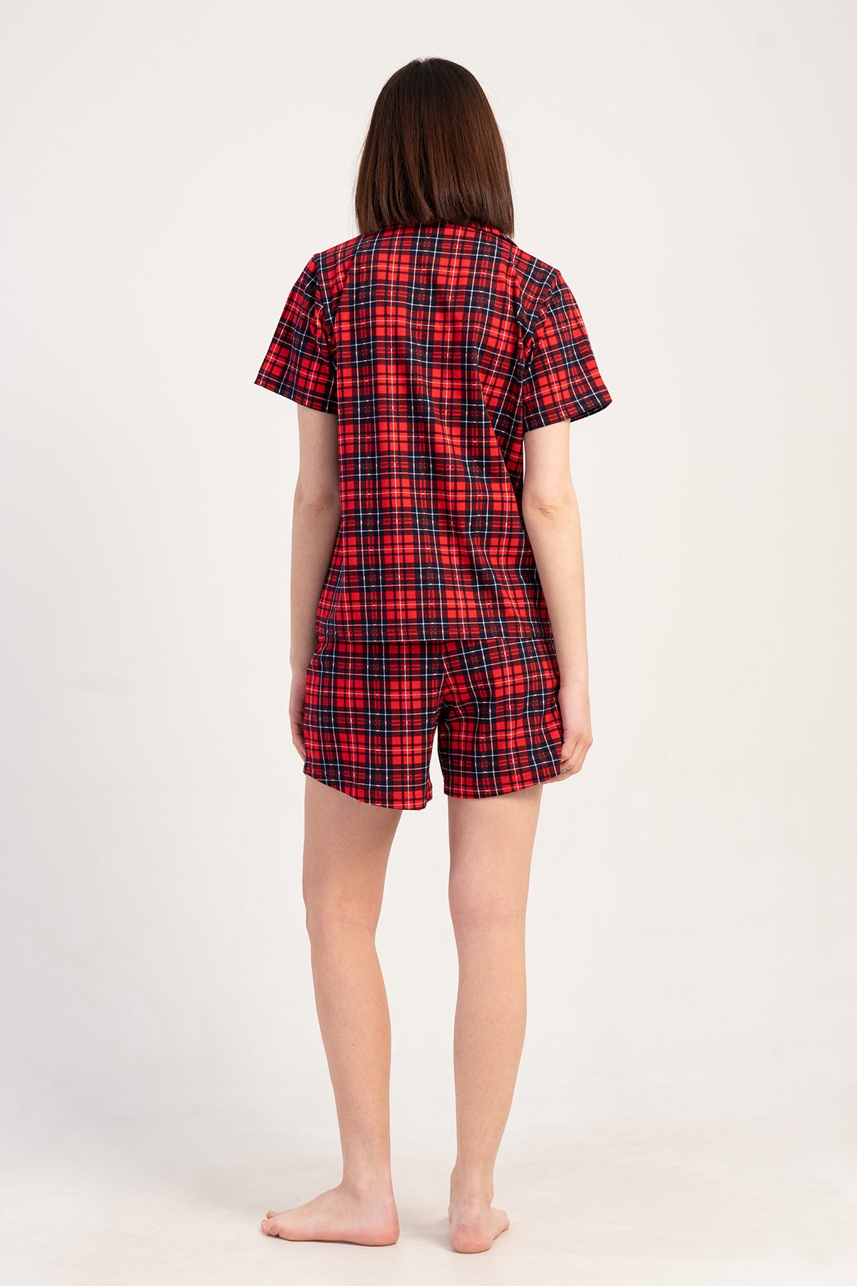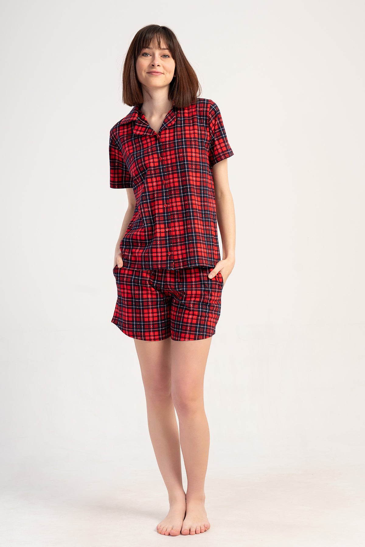 Woman Supreme Short Sleeve Shirt Collar Red Plaid Short Set. Vienetta short pajama sets offer airy fabric and loose fit to keep you cool and comfy on summer evenings at home. Order Now!