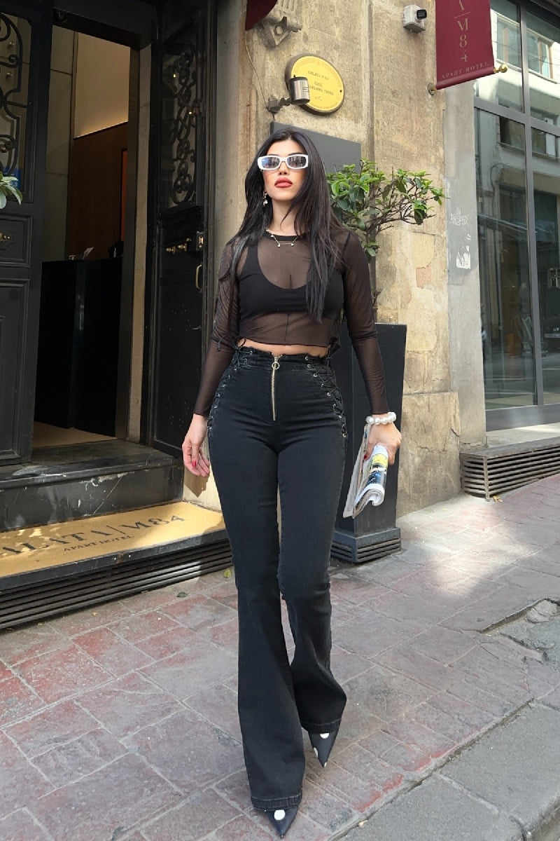 Kuşgözü Detaylı Bağcıklı Pantolon