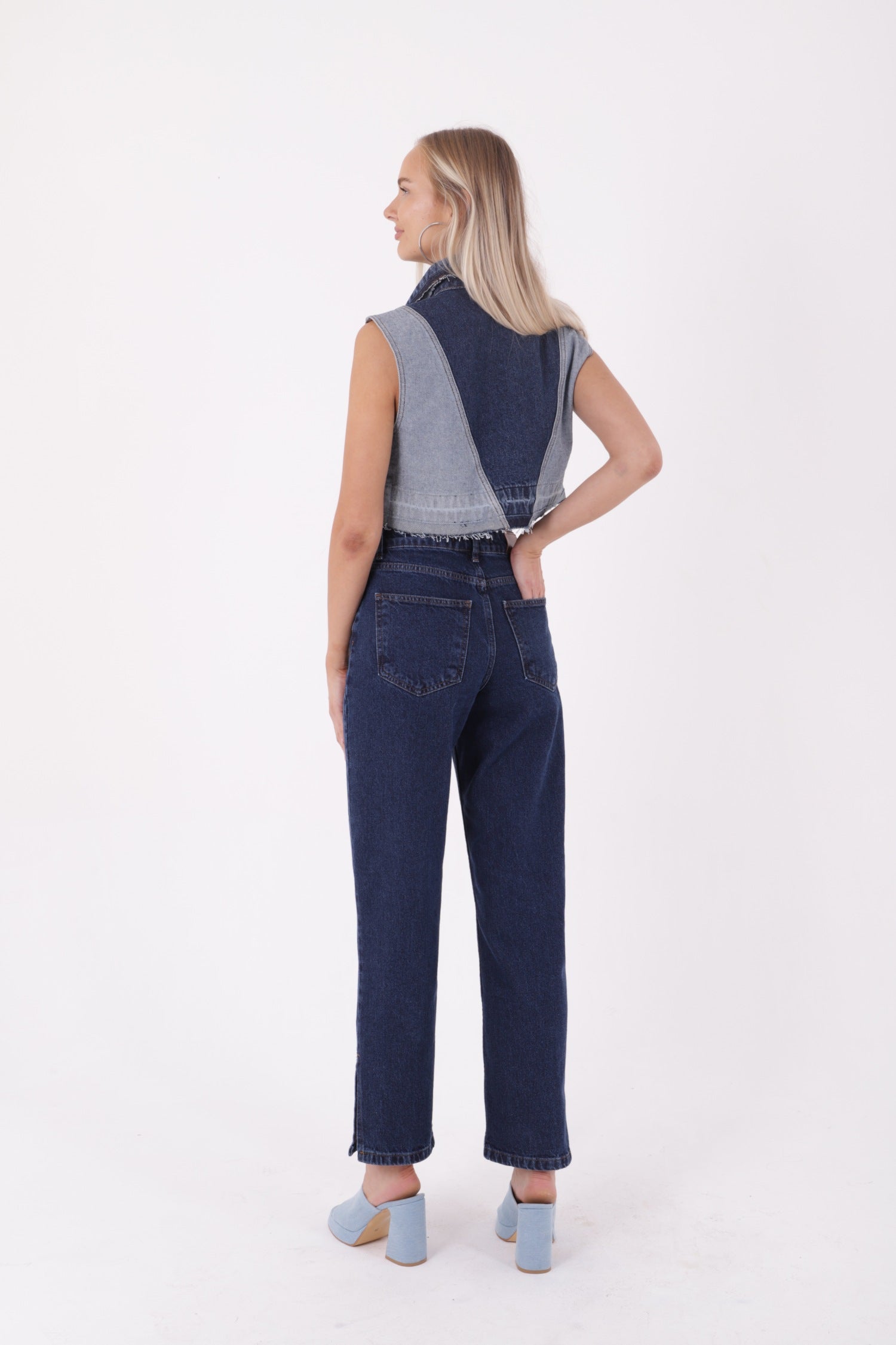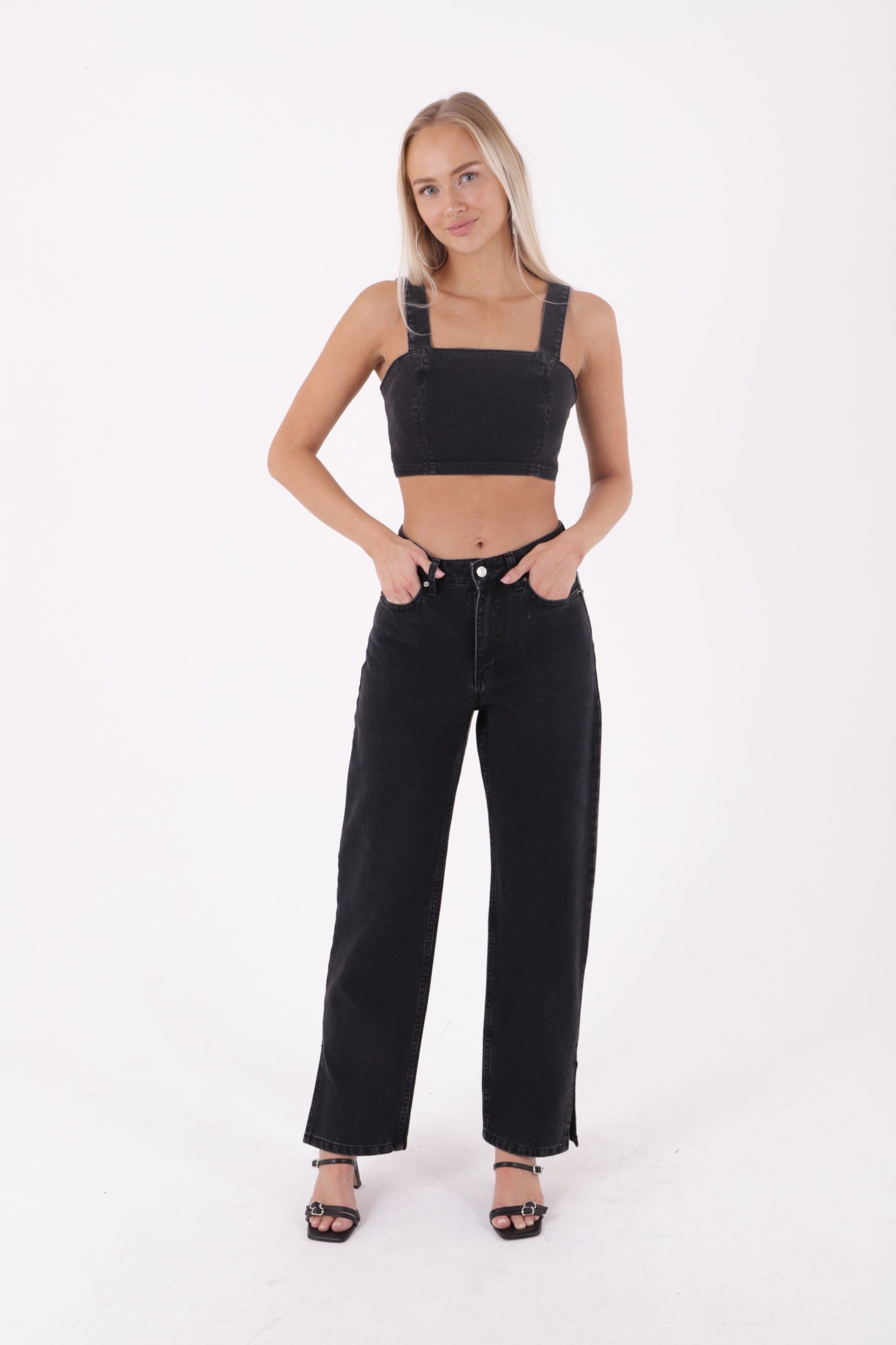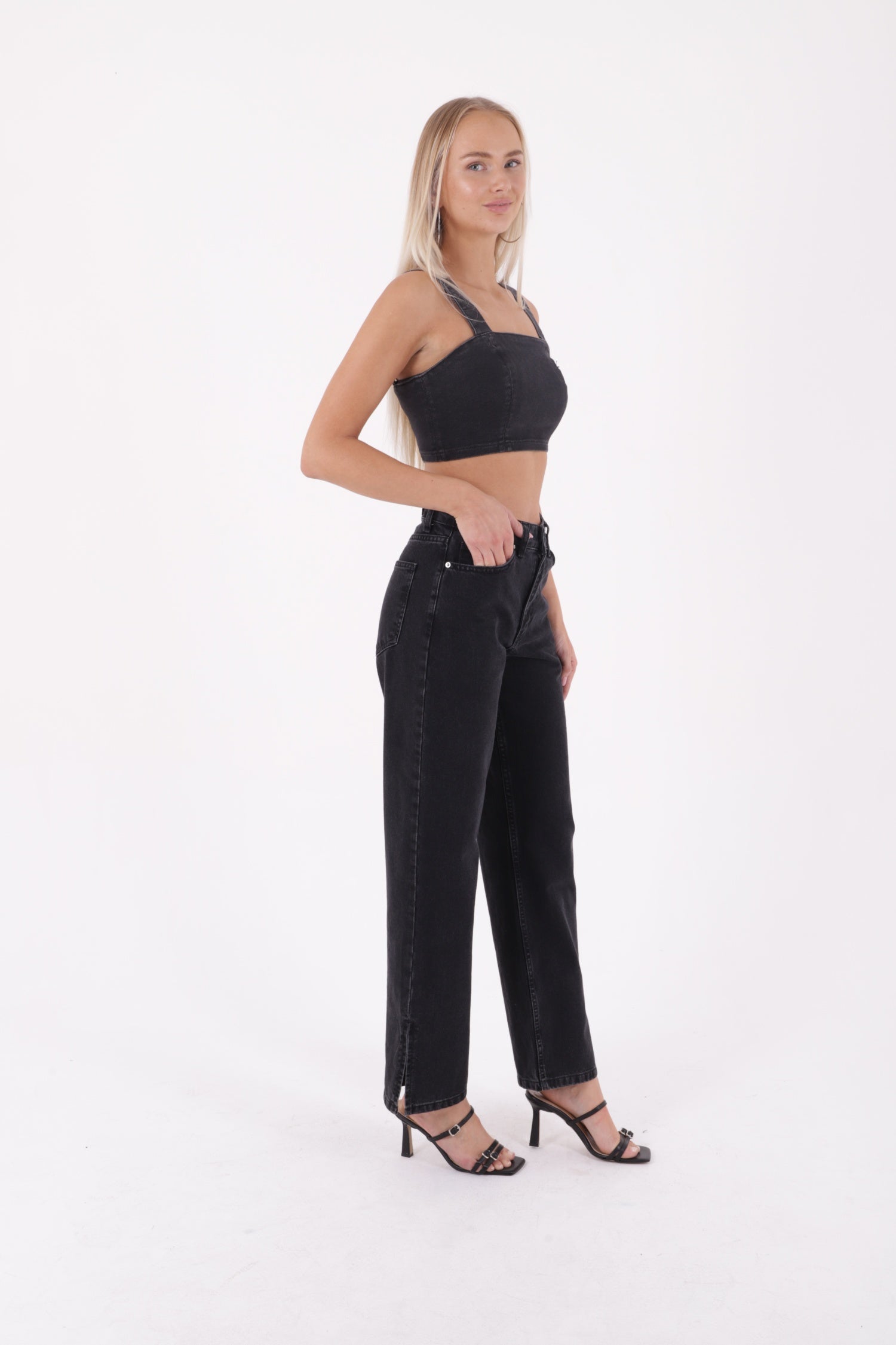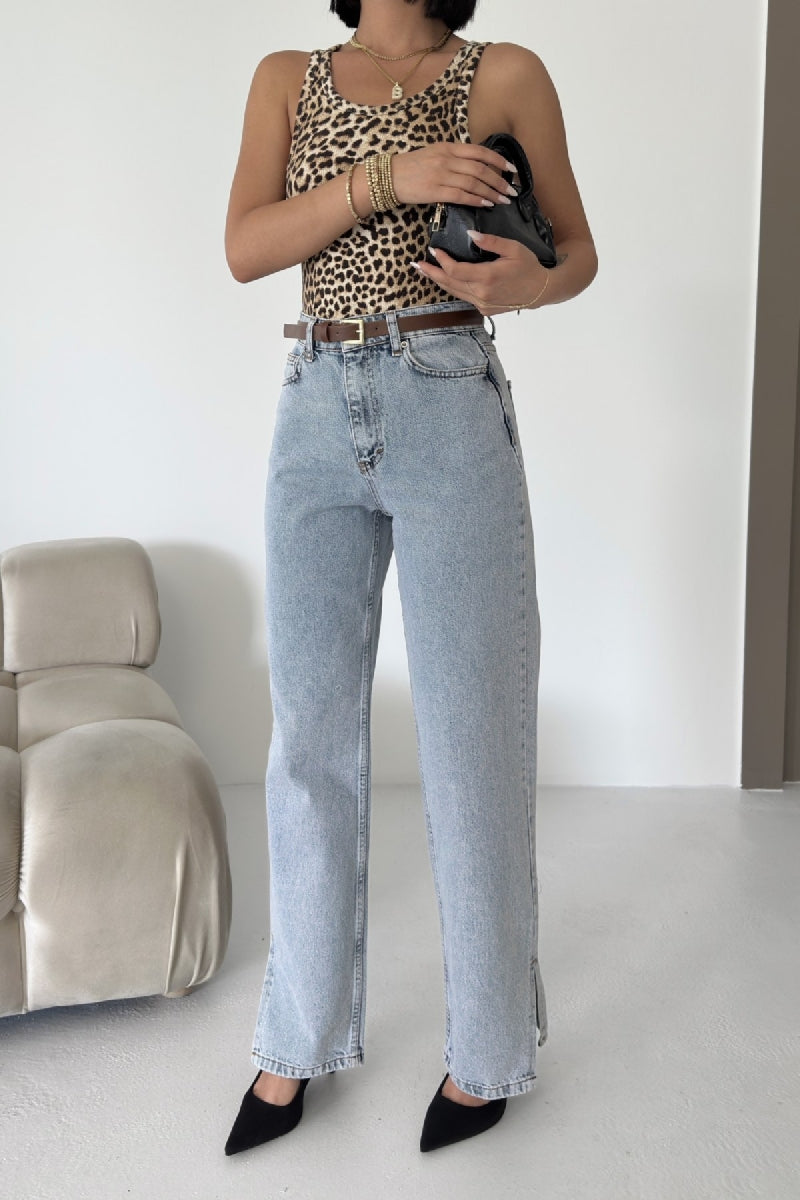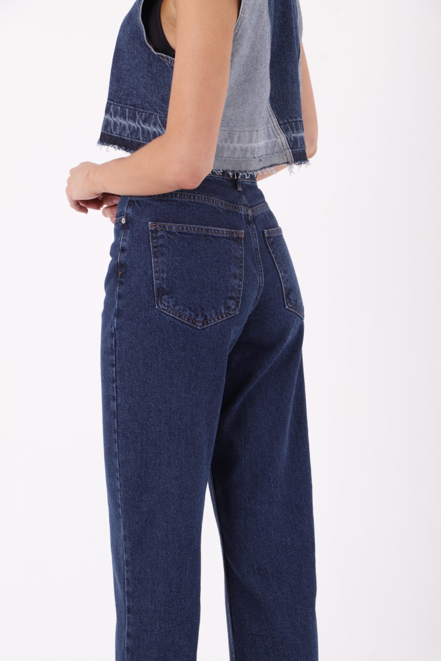 Paçası Yırtmaçlı Boru Paça Relax Kot Pantolon