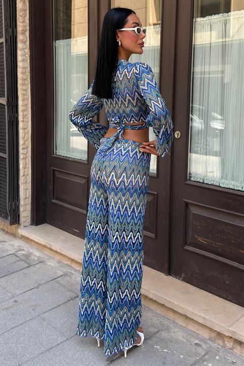 Zikzak Desenli ve Pantolonu Astarlı Kroşe Takım 9876