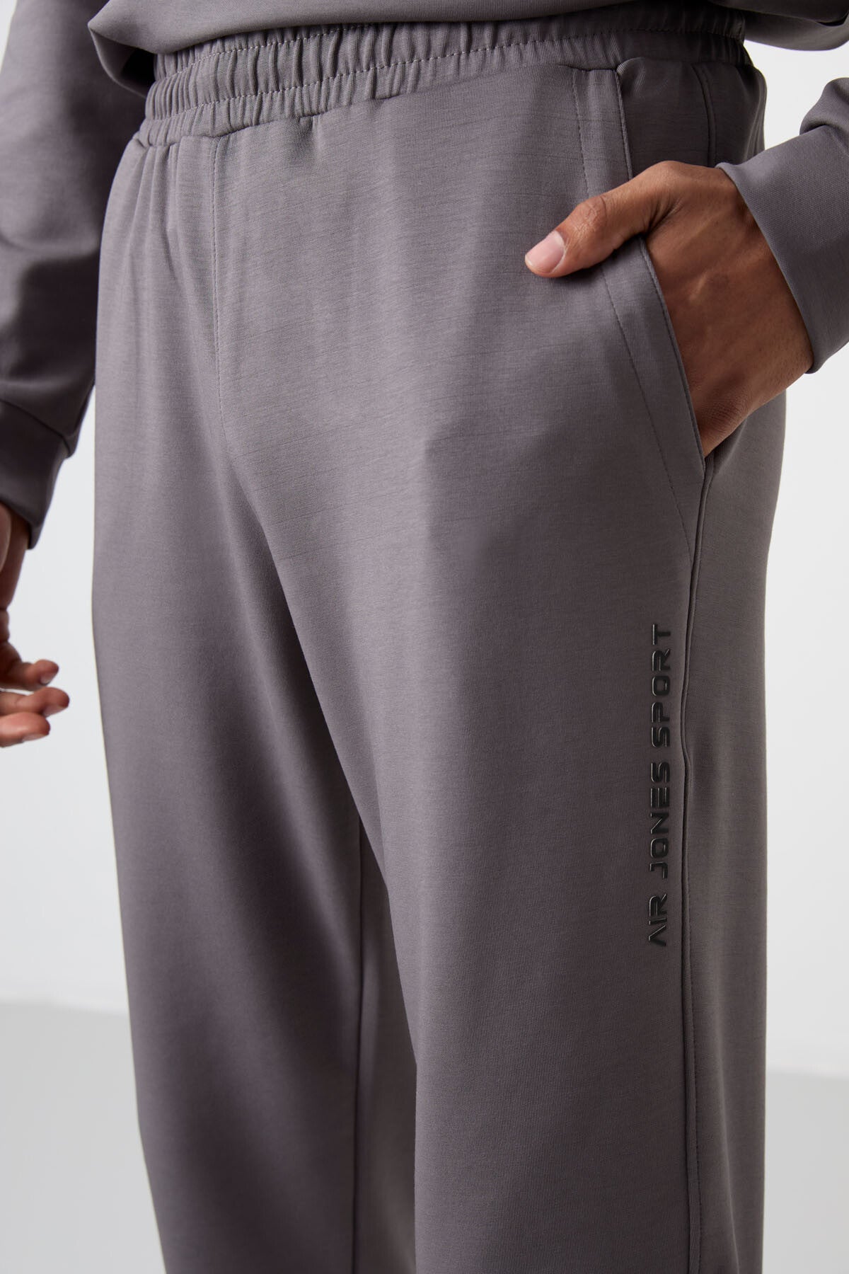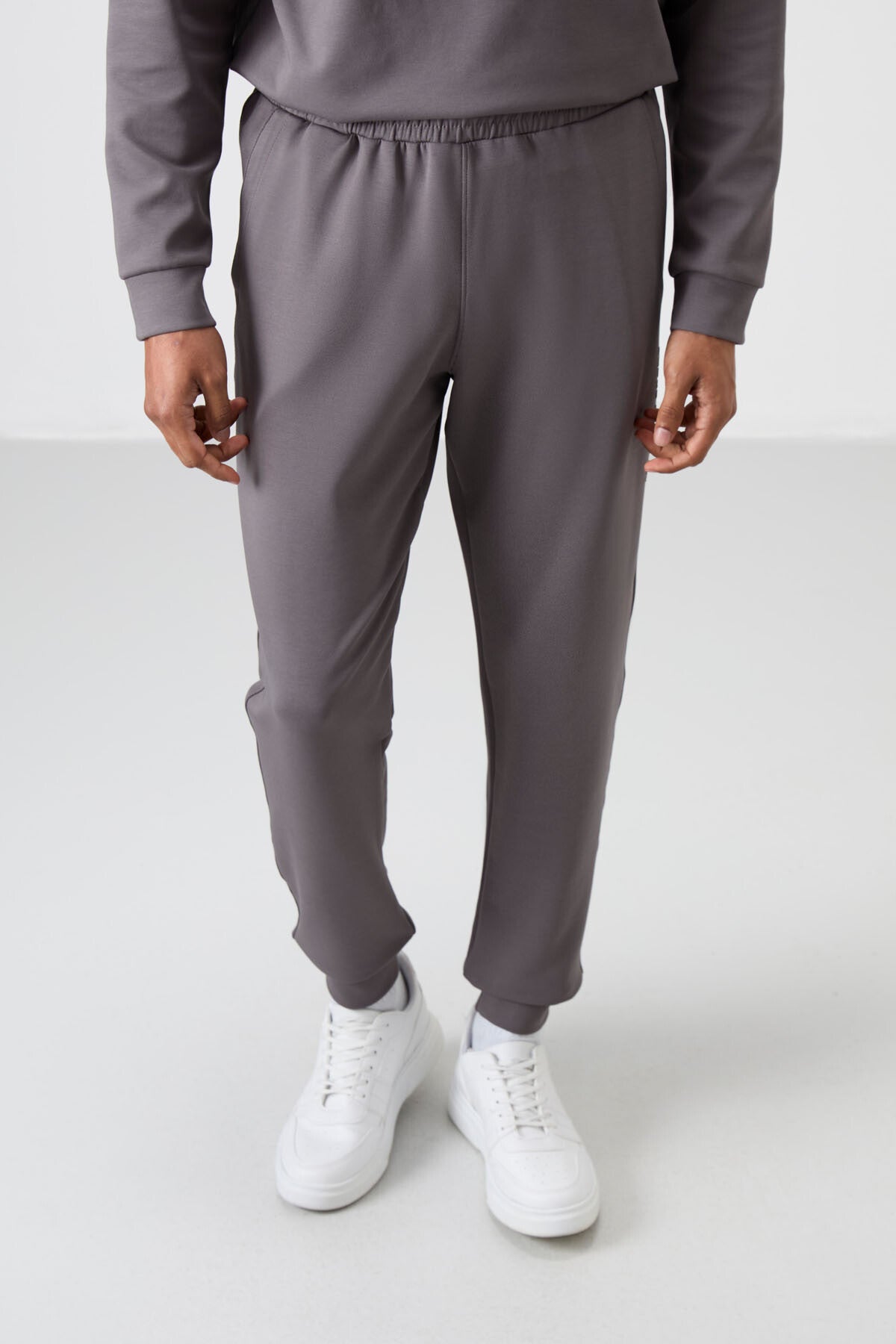 Koyu Gri Pamuklu Kalın Yumuşak Dokulu Comfort Fit Baskılı Erkek Eşofman Takım - 85253