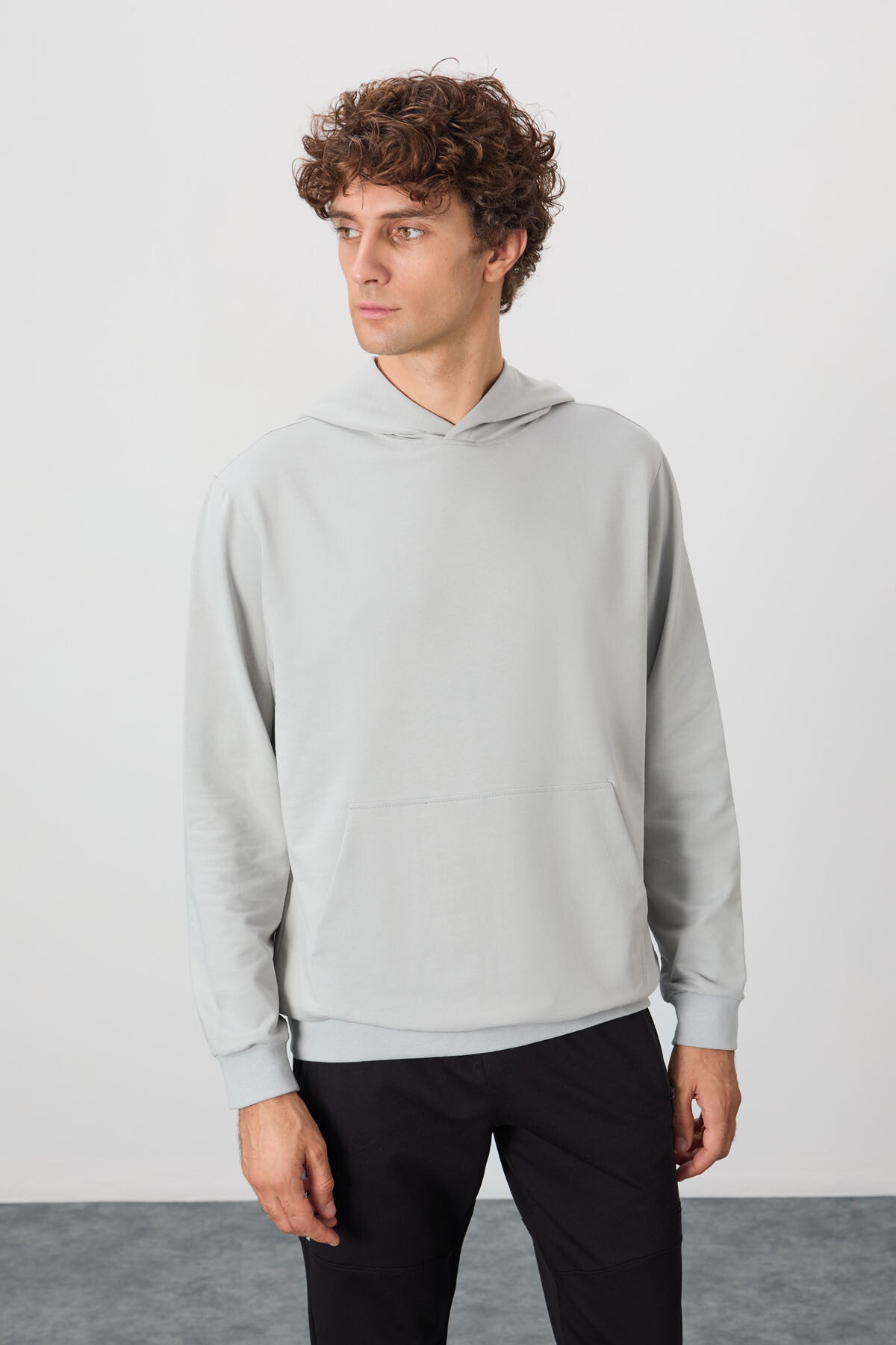 Taş Pamuk Yumuşak Dokulu Kapüşonlu Standart Fit Basic Erkek Sweatshirt - 88362
