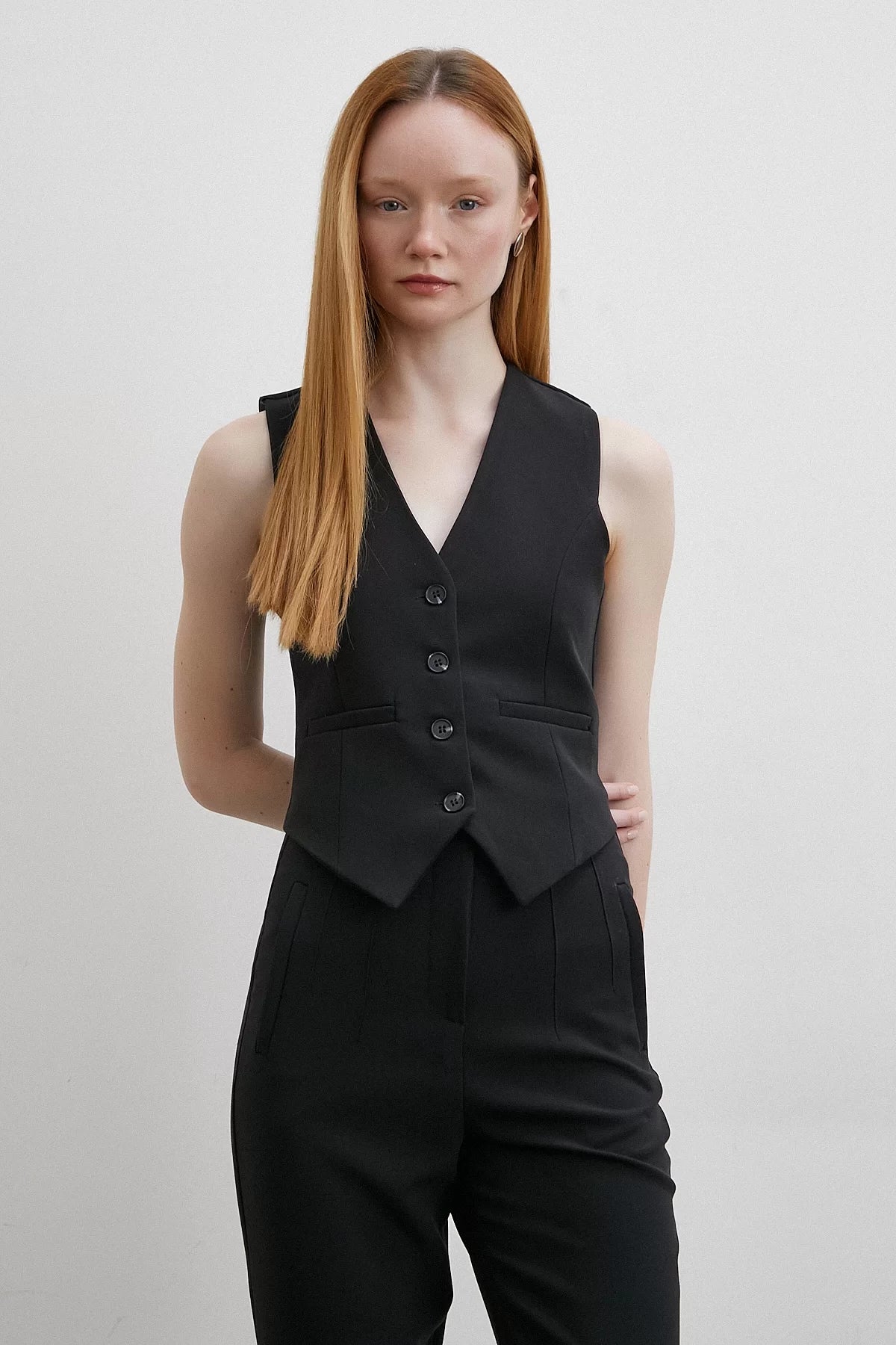 Astarlı Kuplu Yelek - Siyah