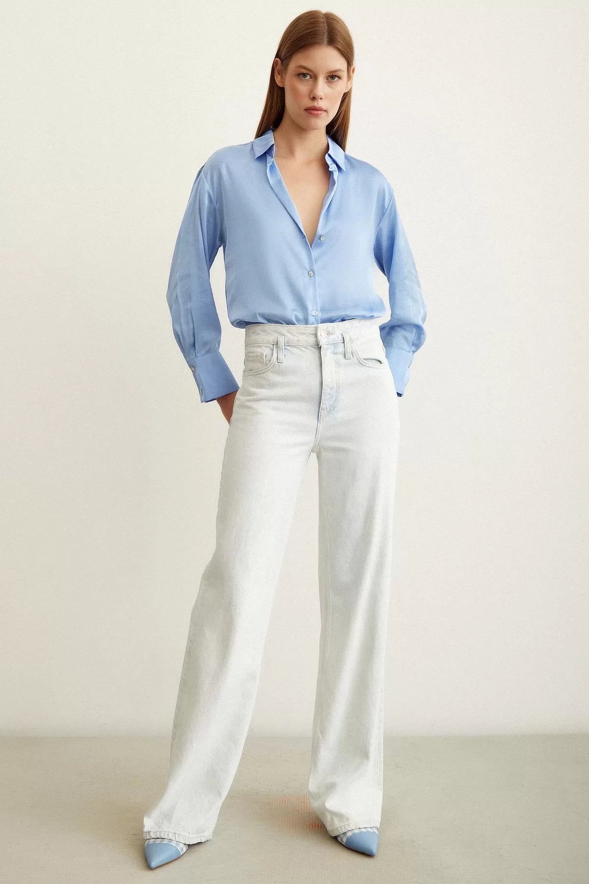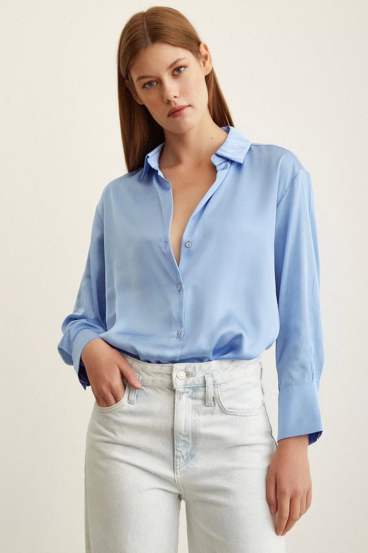 Basic Saten Gömlek - Mavi