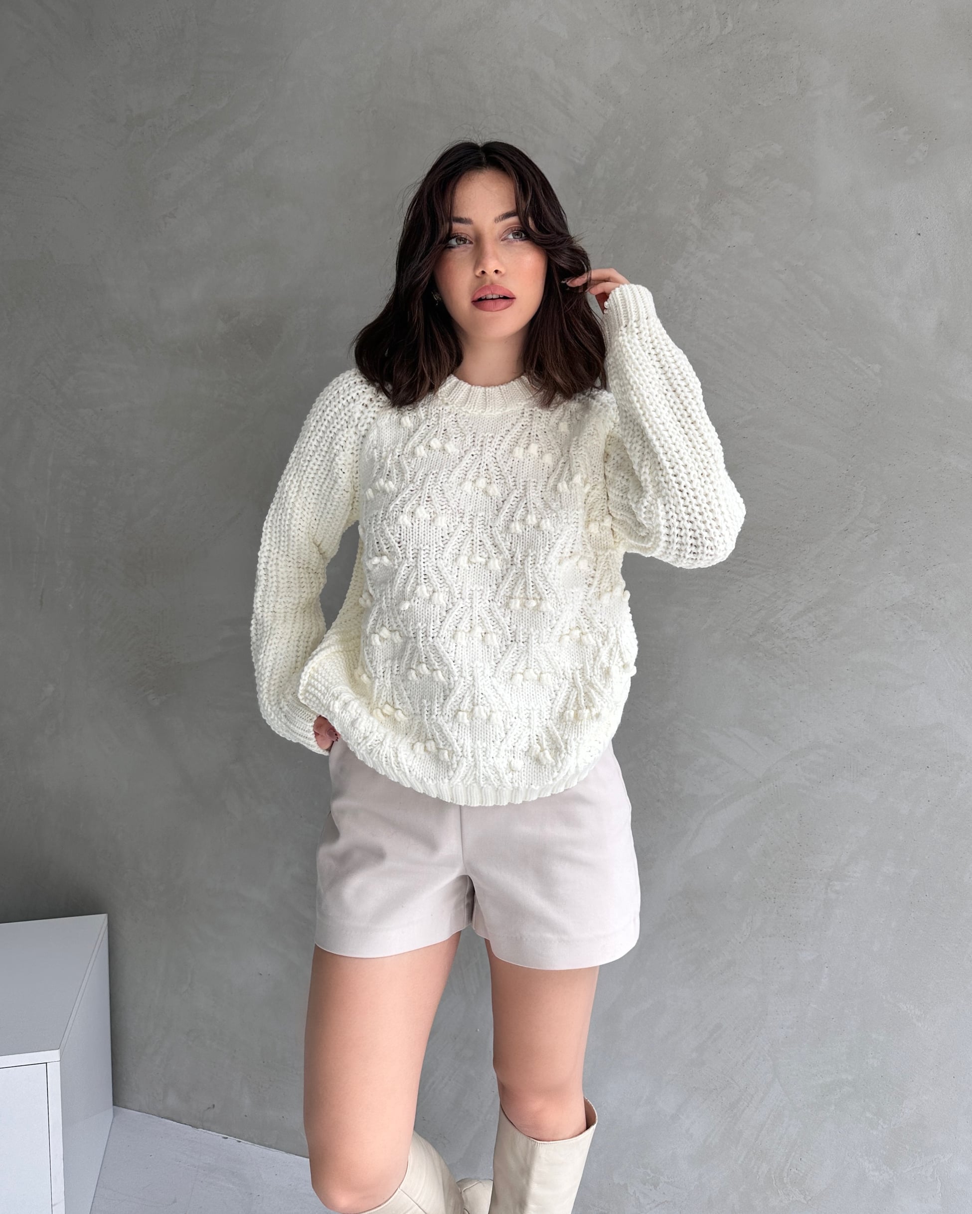 Ürün Adı :Bisiklet Yaka Bürümcük Detaylı Triko Kazak