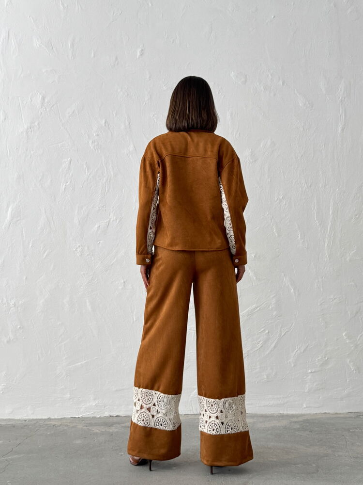 Dantel Detaylı Geniş Paça Kadın Pantolon