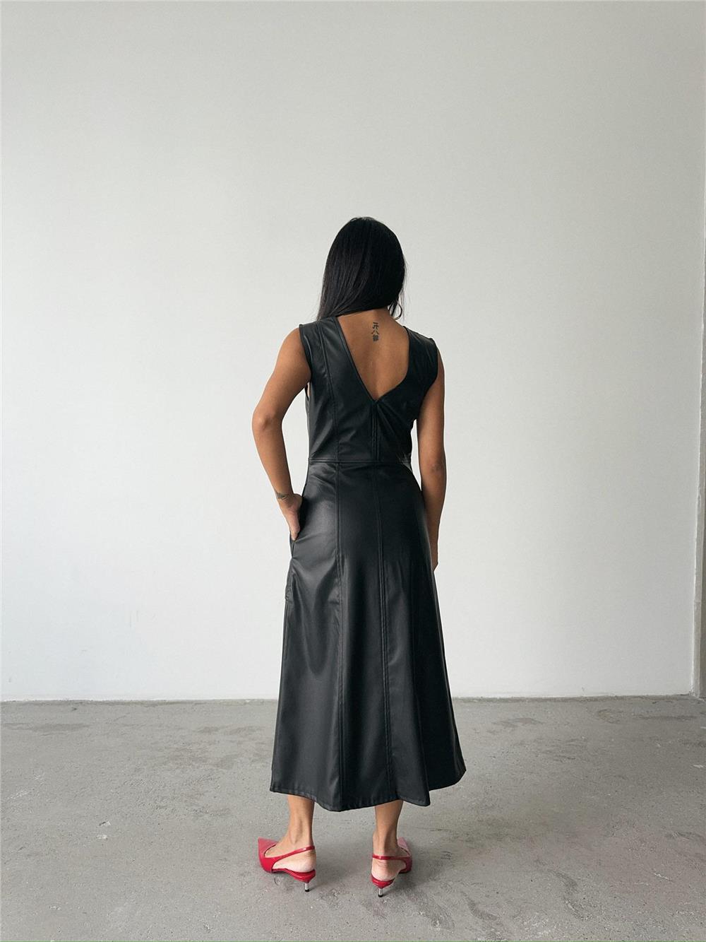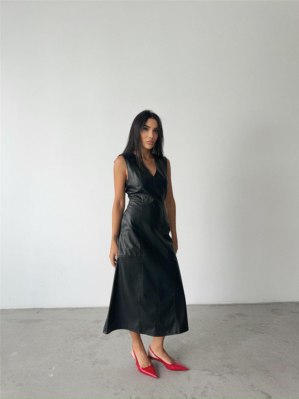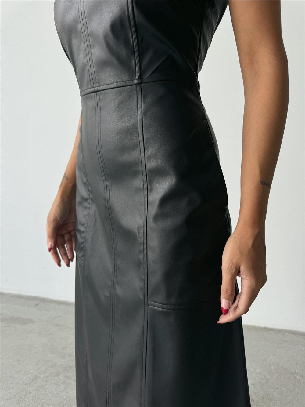 ASKILI DERİ ELBİSE ŞANEL BOY - Siyah