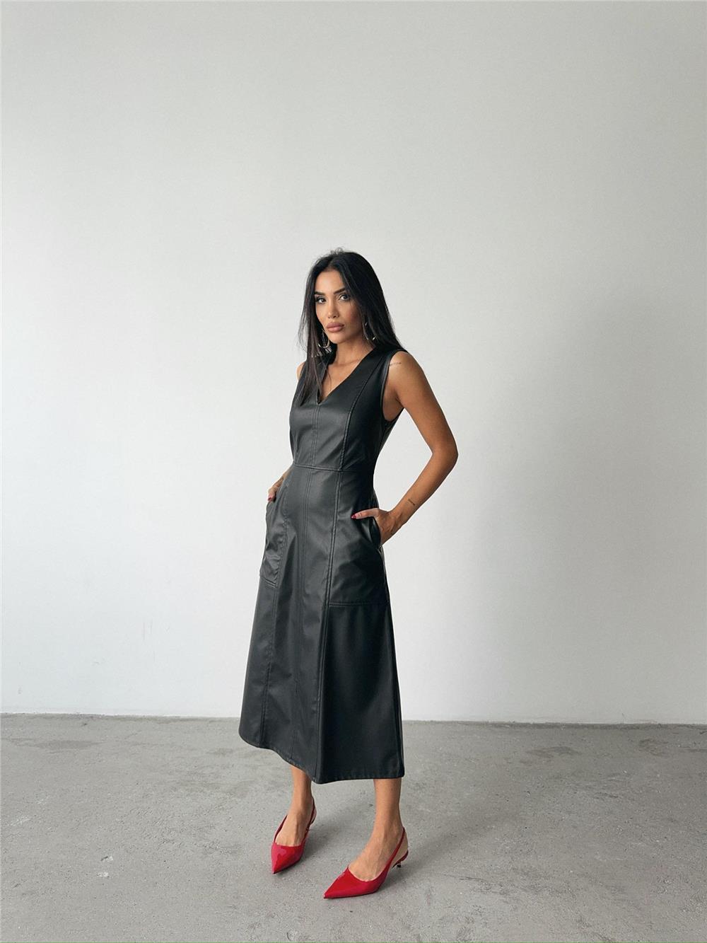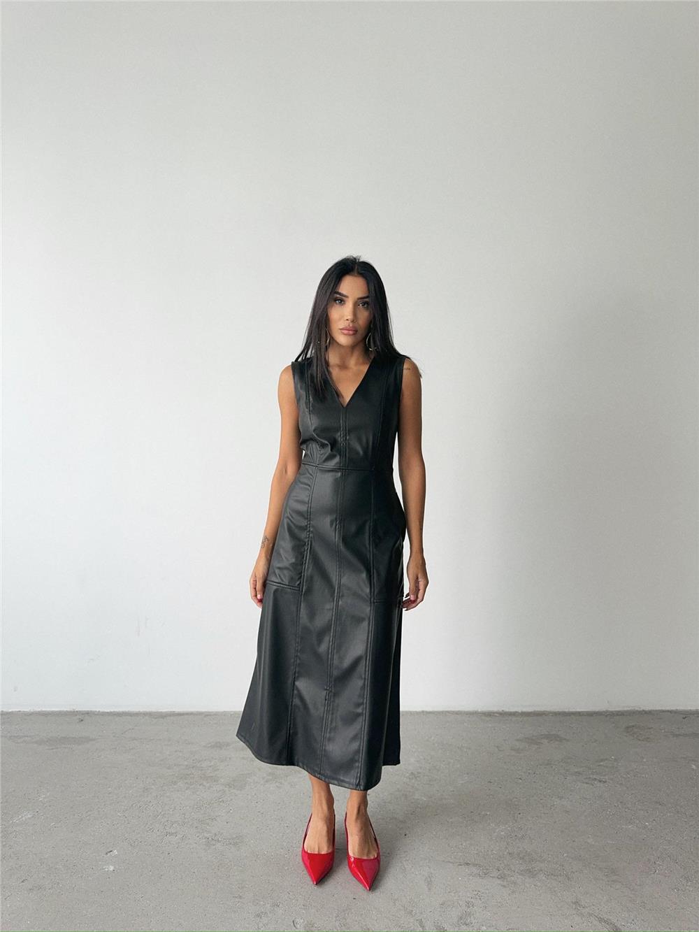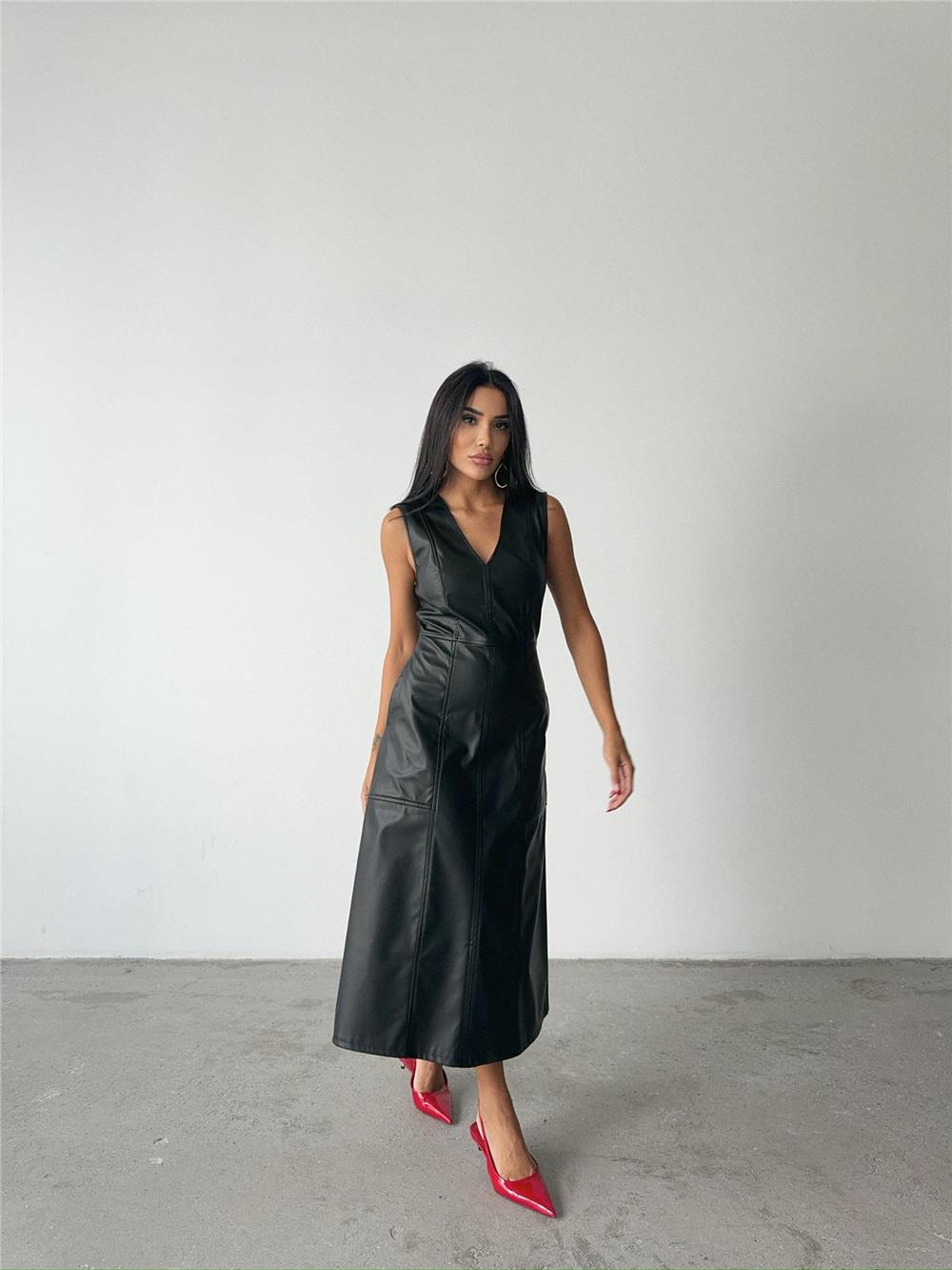 ASKILI DERİ ELBİSE ŞANEL BOY - Siyah