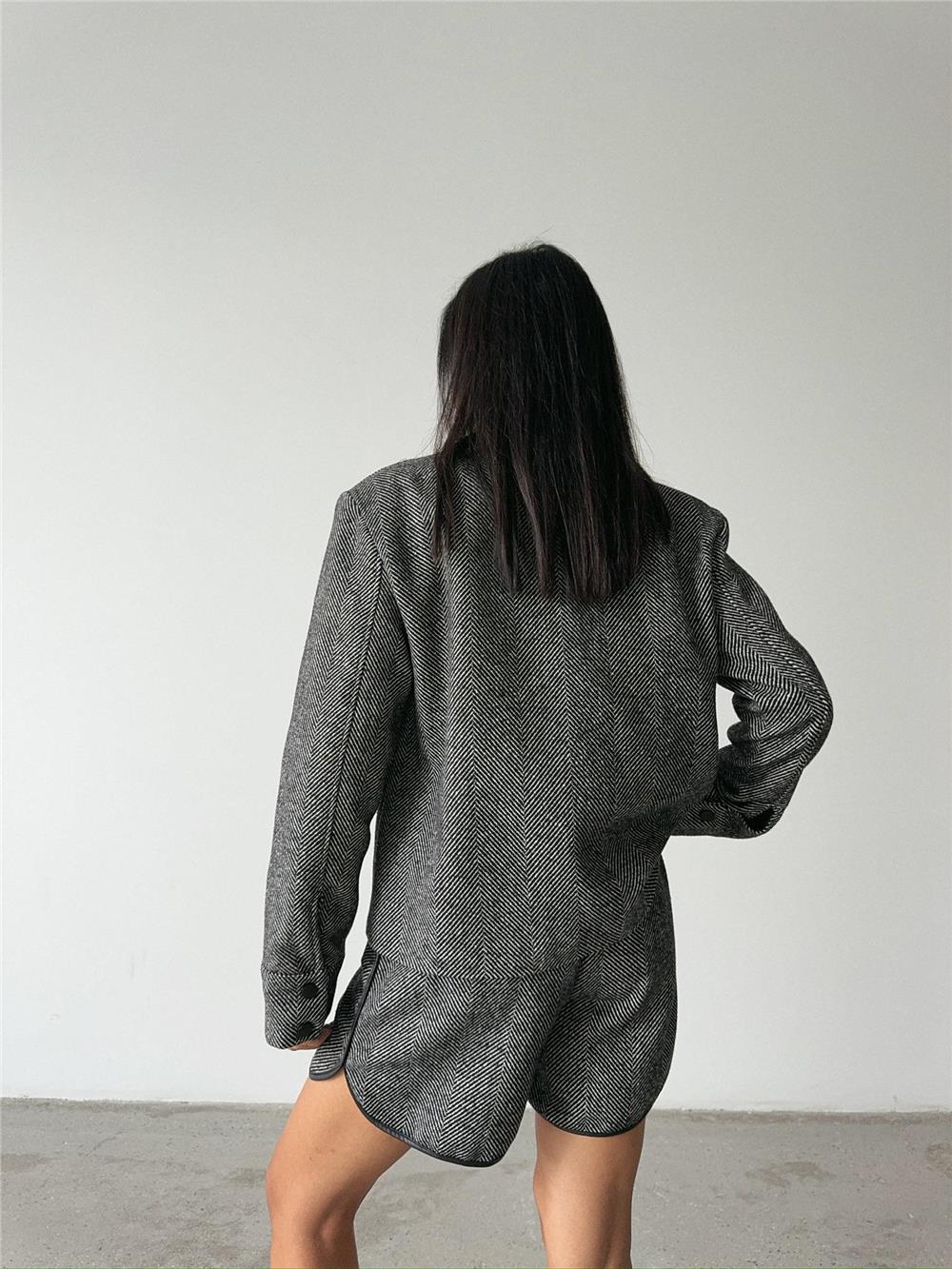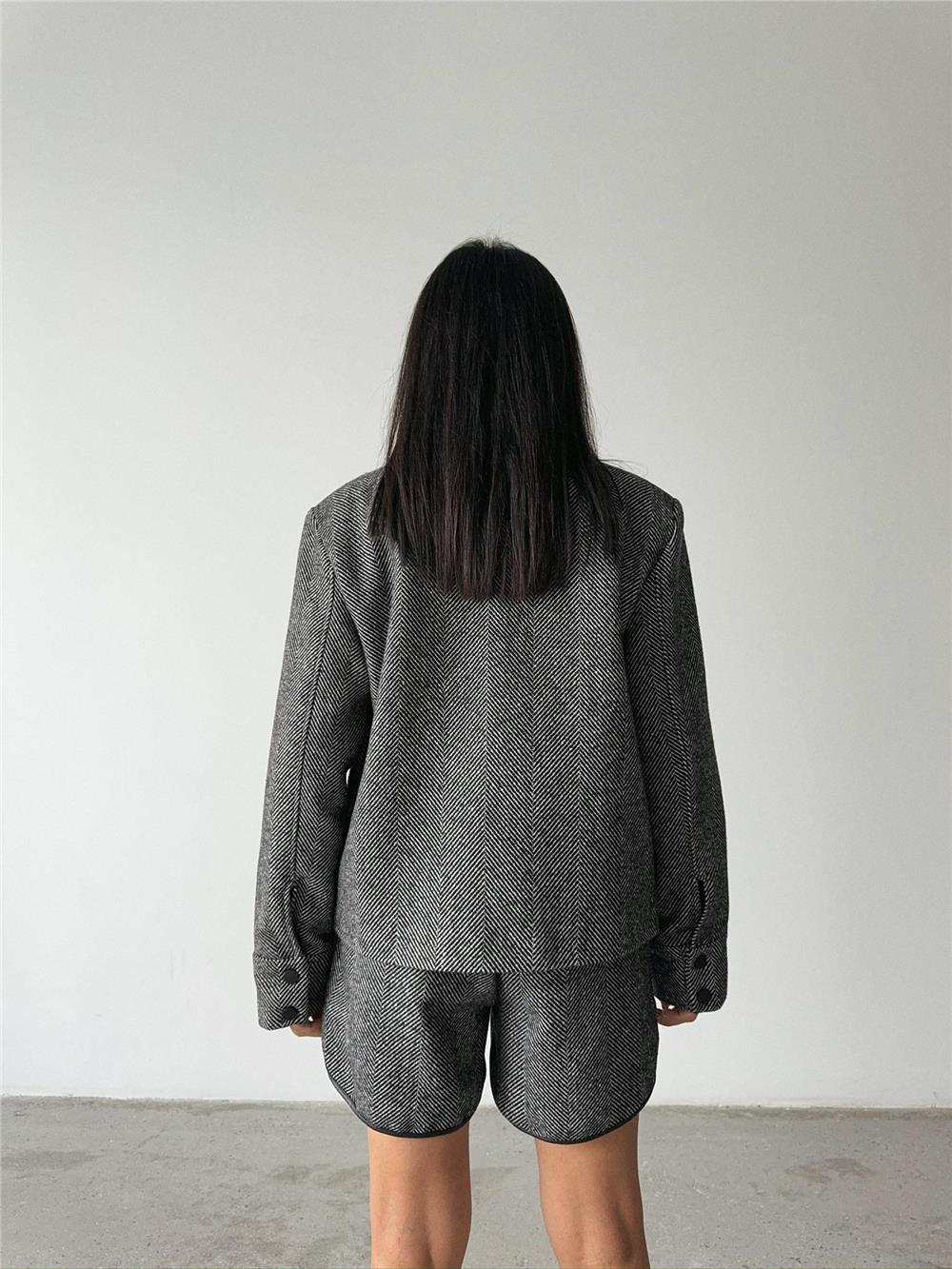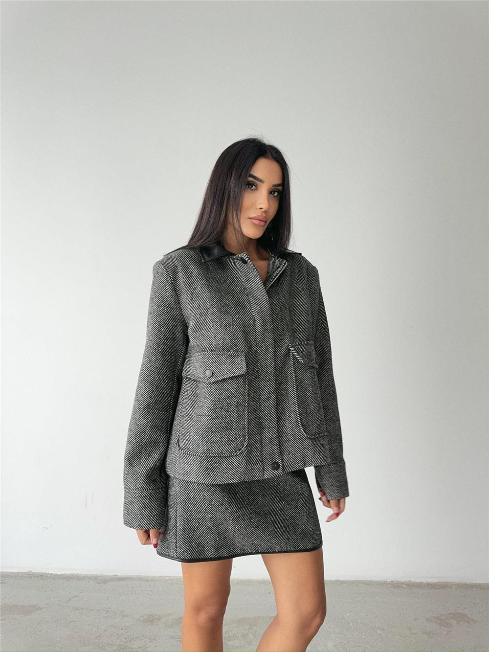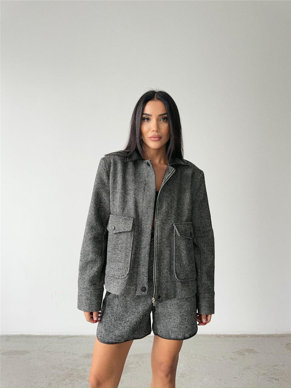 BALIKSIRTI KAŞE FERMUARLI CEKET KISA - Siyah