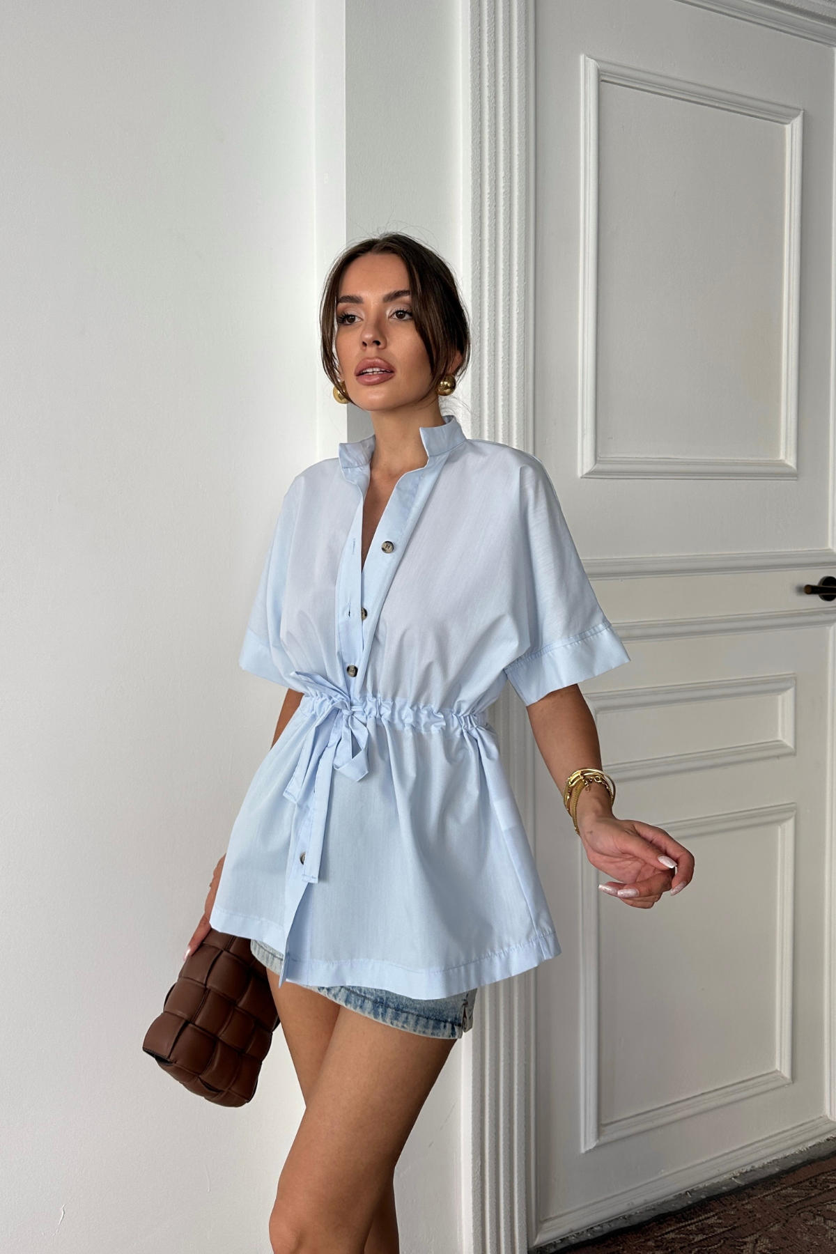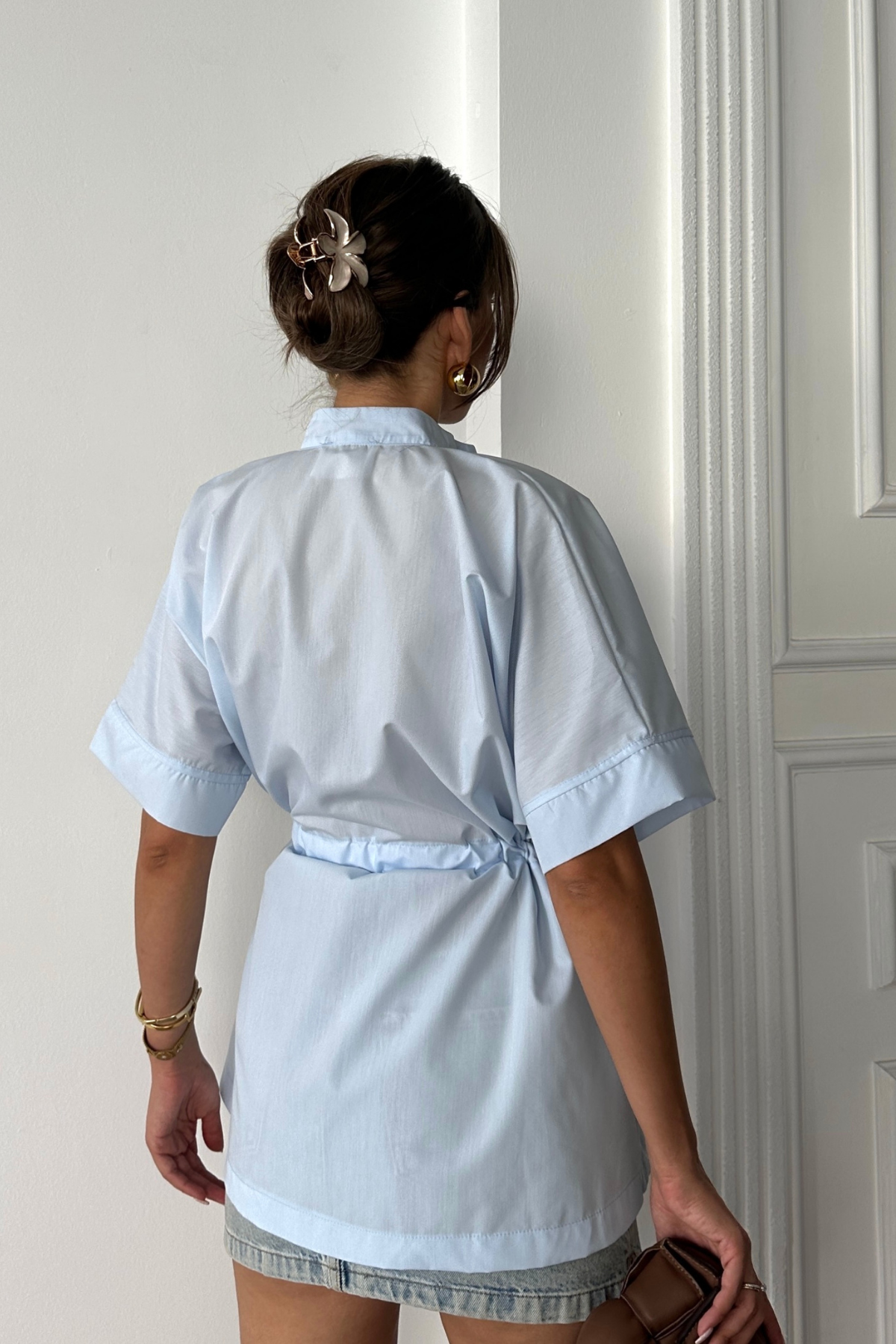 BEL BÜZGÜ DETAYLI POPLİN GÖMLEK - Açık Mavi