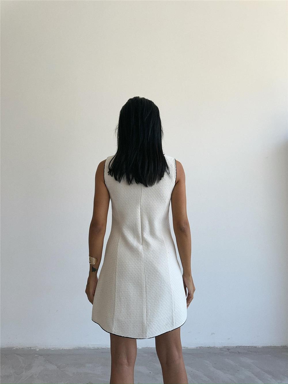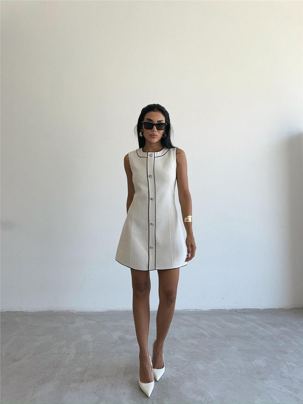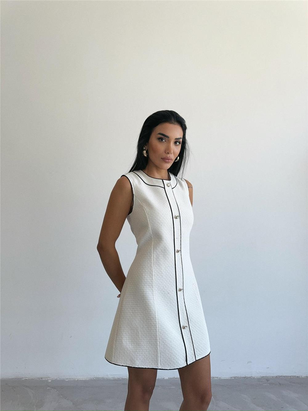 CHANEL KUMAŞ KISA ÖNDEN DÜĞMELİ ELBİSE - Beyaz