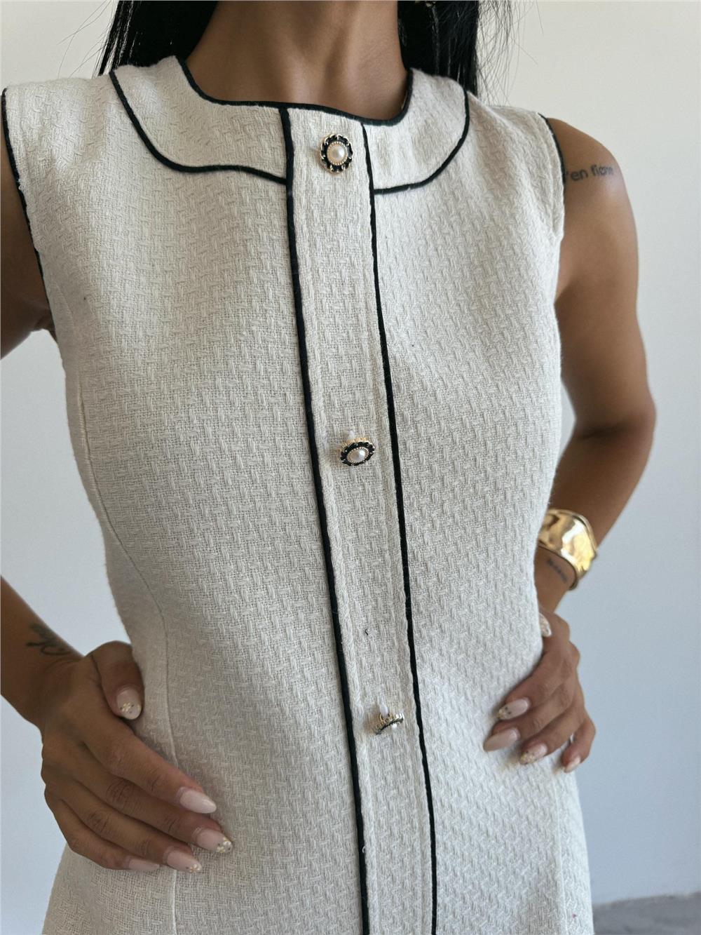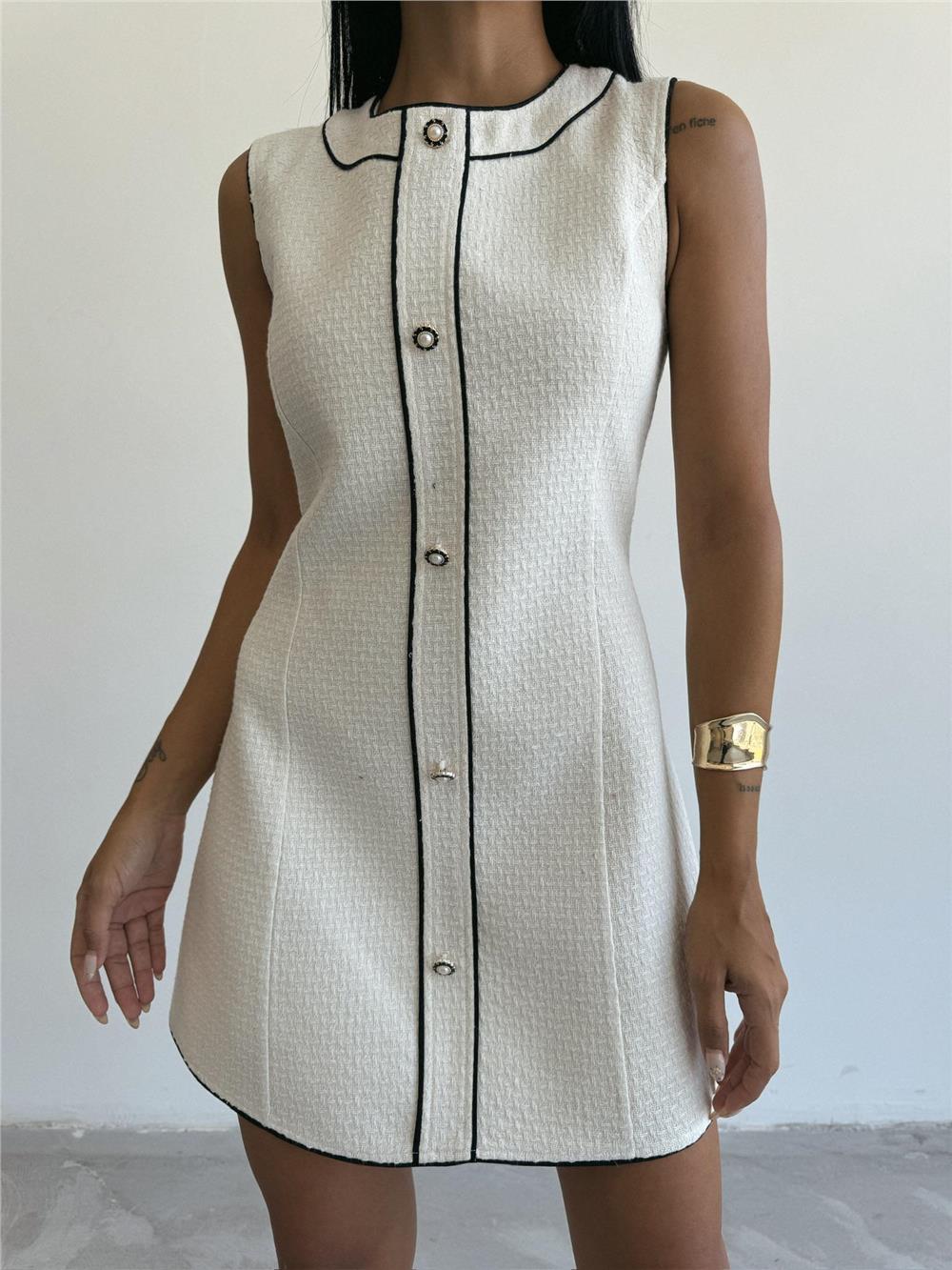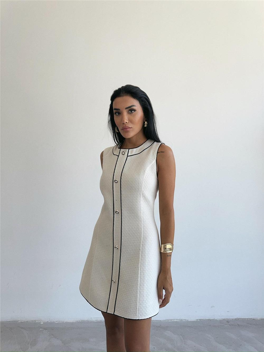 CHANEL KUMAŞ KISA ÖNDEN DÜĞMELİ ELBİSE - Beyaz